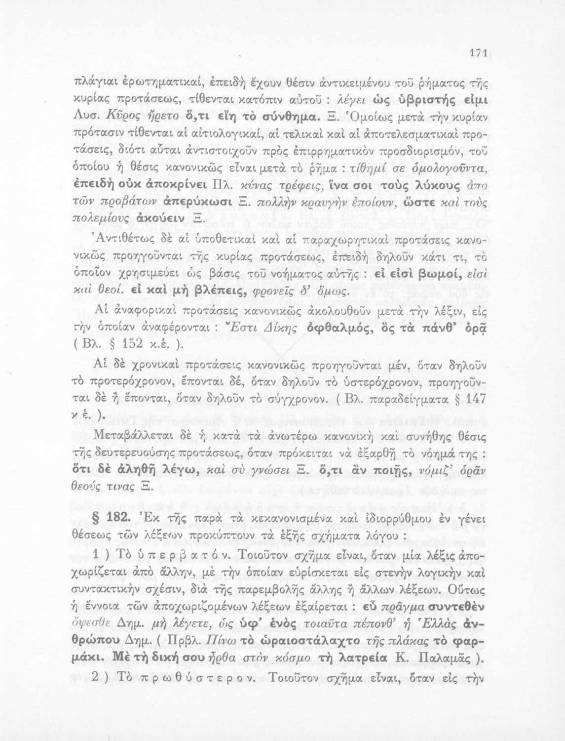 Βαθμίδα εκπαίδευσης: Δευτεροβάθμια Τάξη: Γ' Γυμνασίου / Α' Λυκείου Μάθημα: Αρχαία Ελληνικά Γλώσσα: Καθαρεύουσα Παρουσίαση περιεχομένου: Σχολικό εγχειρίδιο Αρχαίων Ελληνικών Γ΄ Γυμνασίου και Α΄ Λυκείου που εξετάζει τα μέρη του λόγου και την σύνταξή τους. |