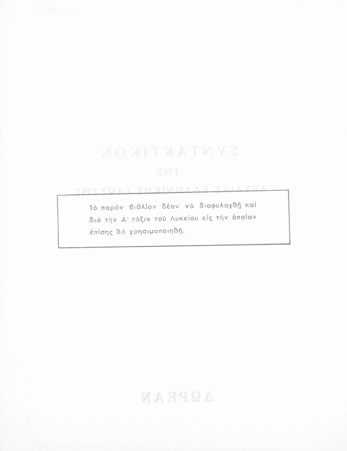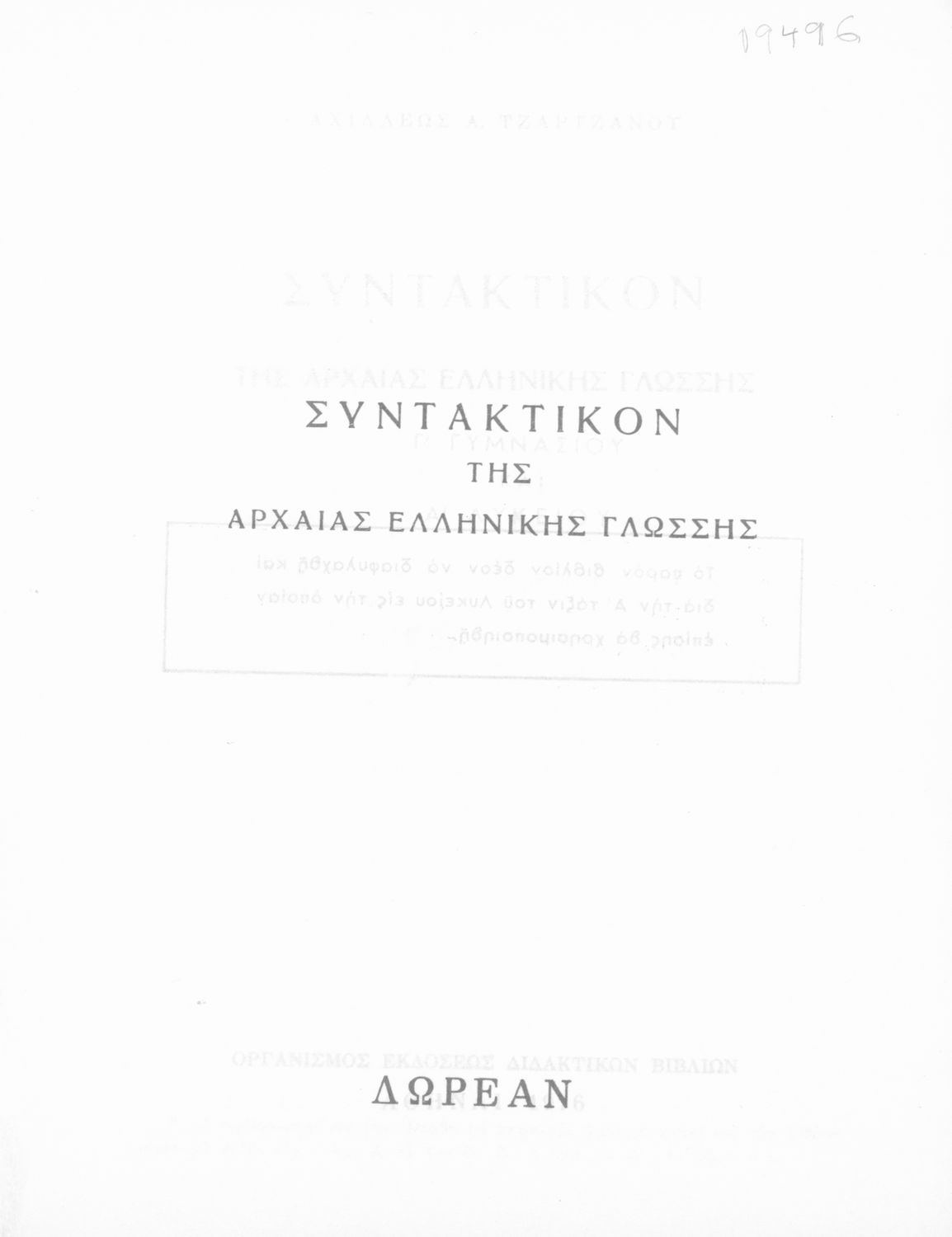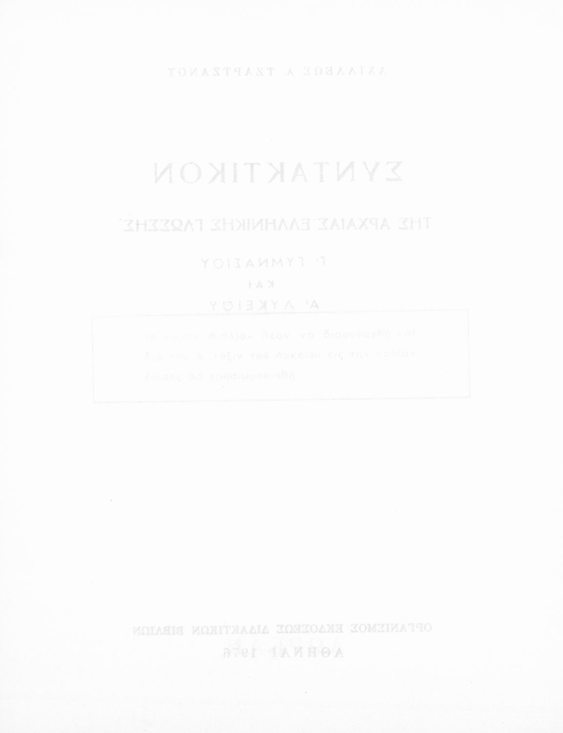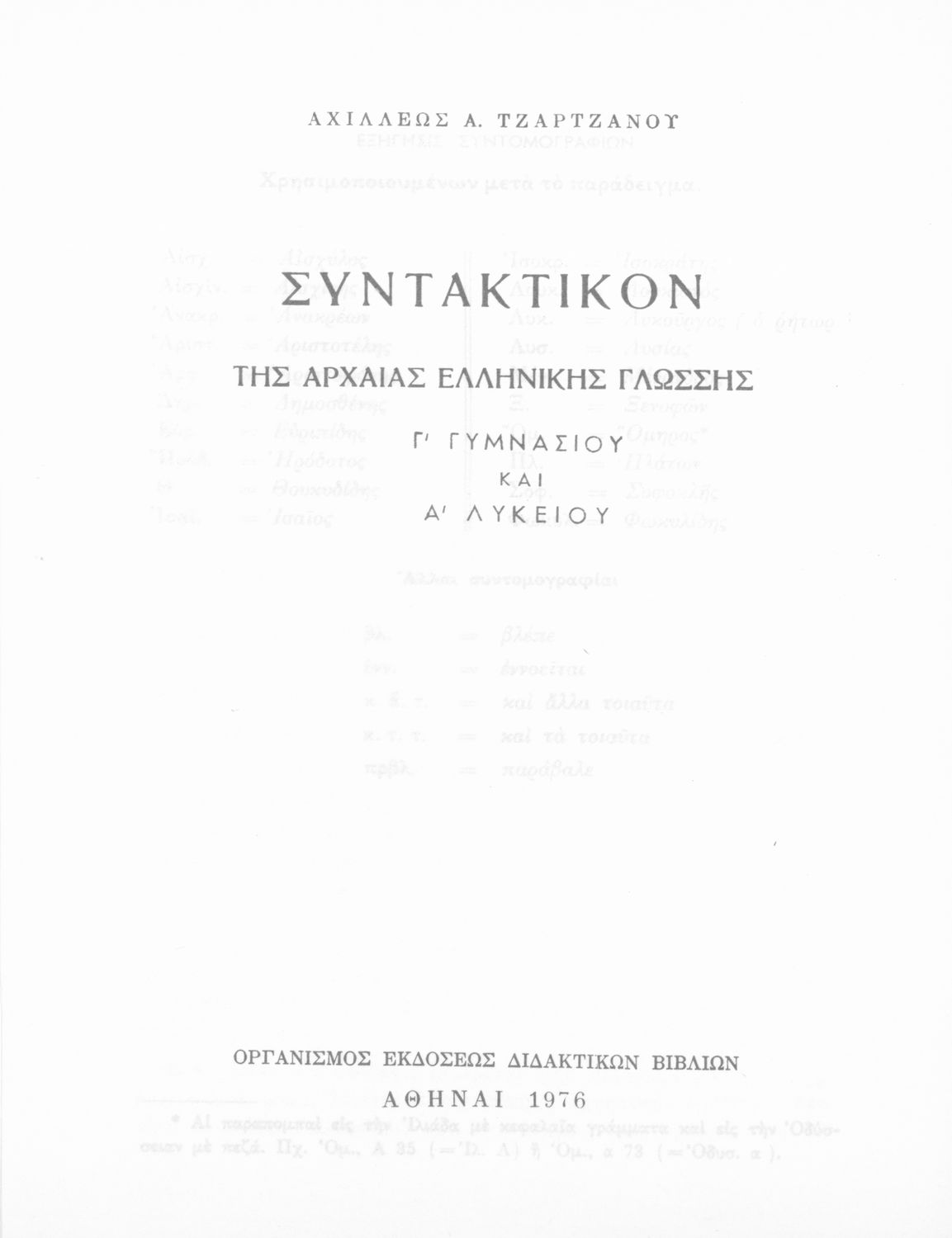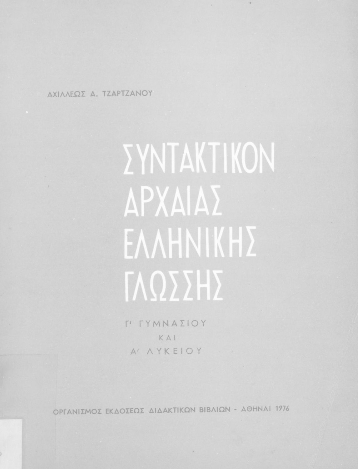 Τίτλος: Συντακτικόν της αρχαίας ελληνικής γλώσσας Γ' Γυμνασίου και Α' Λυκείου