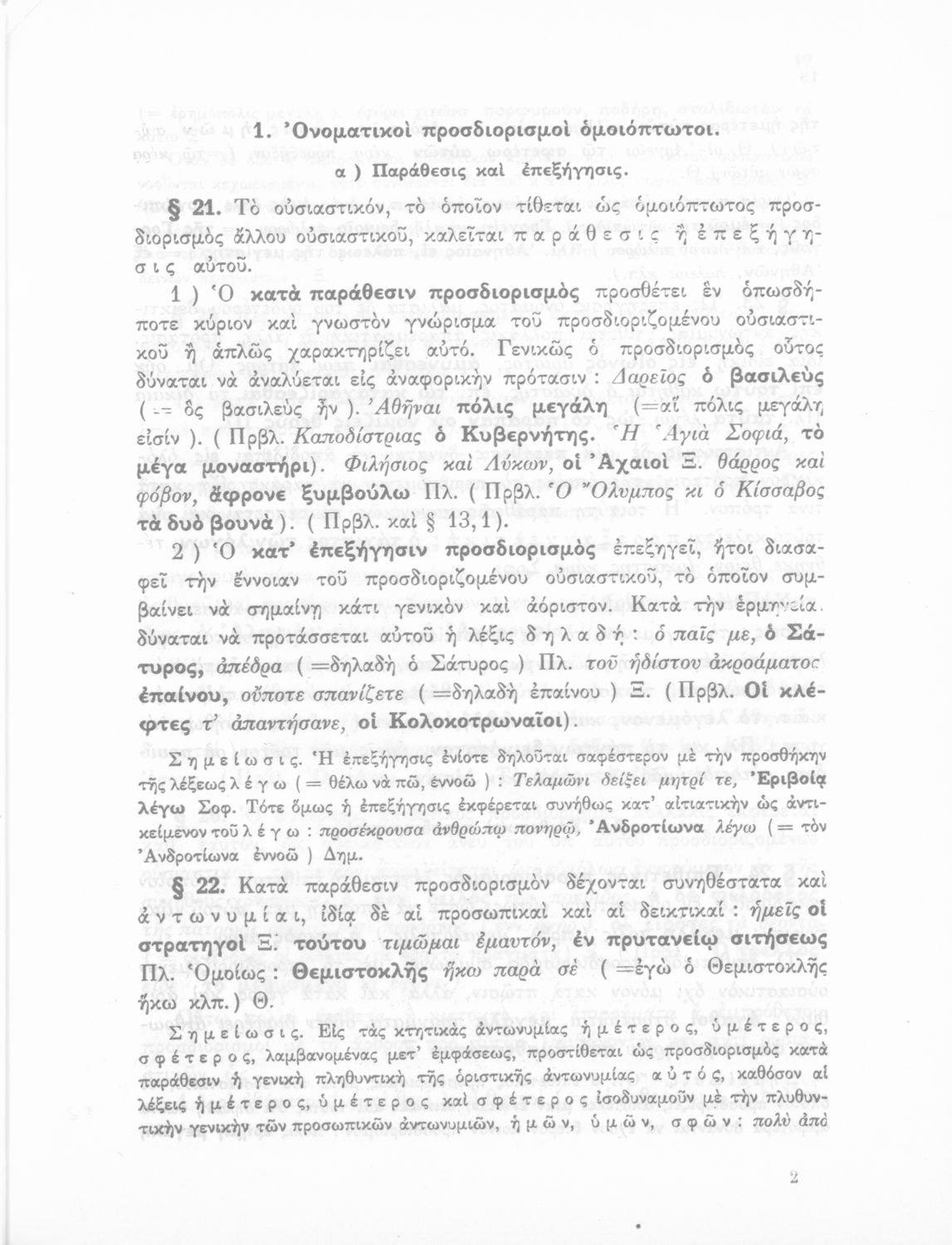 Μαθητικό βοήθημα Νέων Ελληνικών Γυμνασίου που περιλαμβάνει τους κανόνες της γραμματικής και του συντακτικού της καθαρεύουσας.