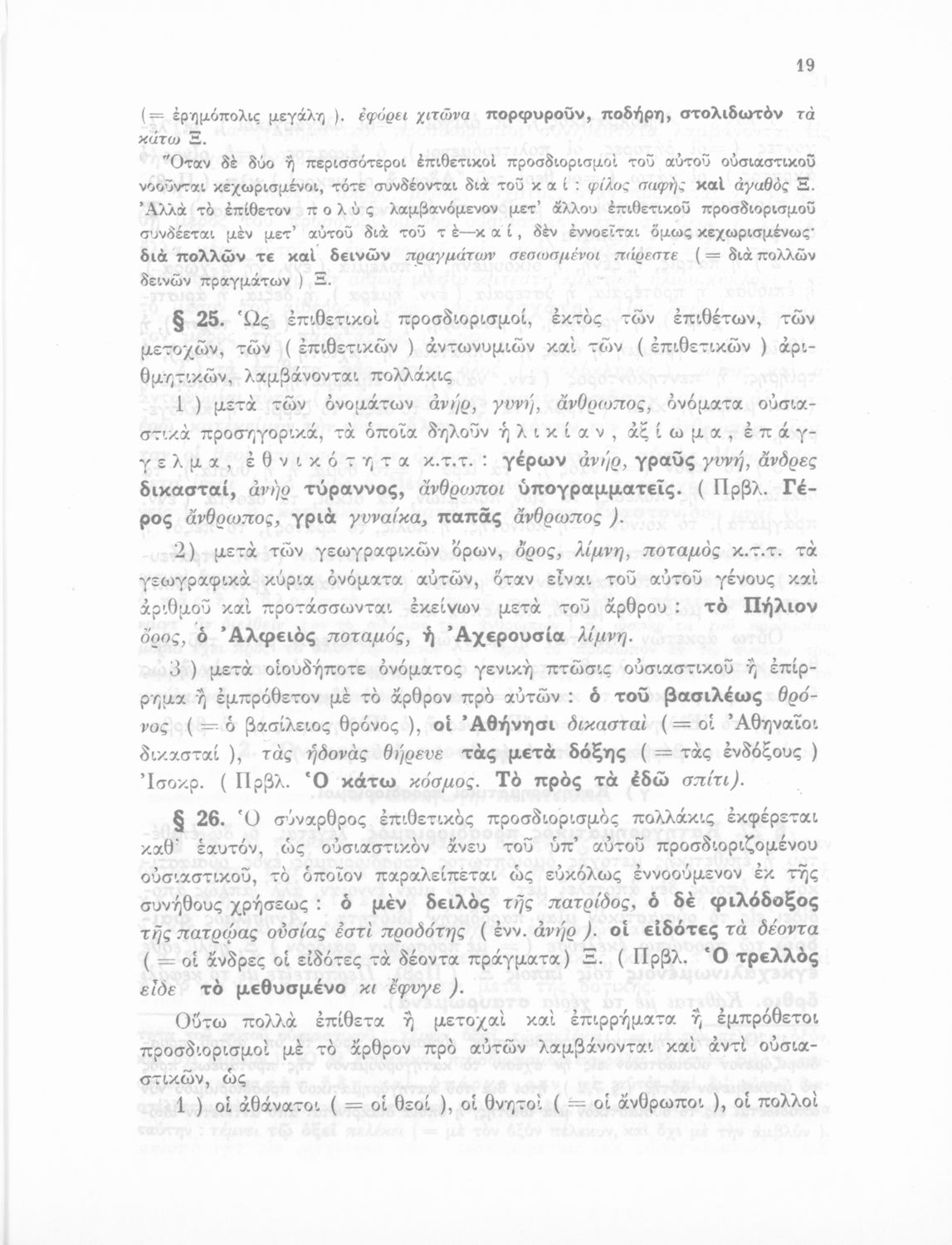 Σχολικό εγχειρίδιο Αρχαίων Ελληνικών Γ΄ Γυμνασίου και Α΄ Λυκείου που εξετάζει τα μέρη του λόγου και την σύνταξή τους.
