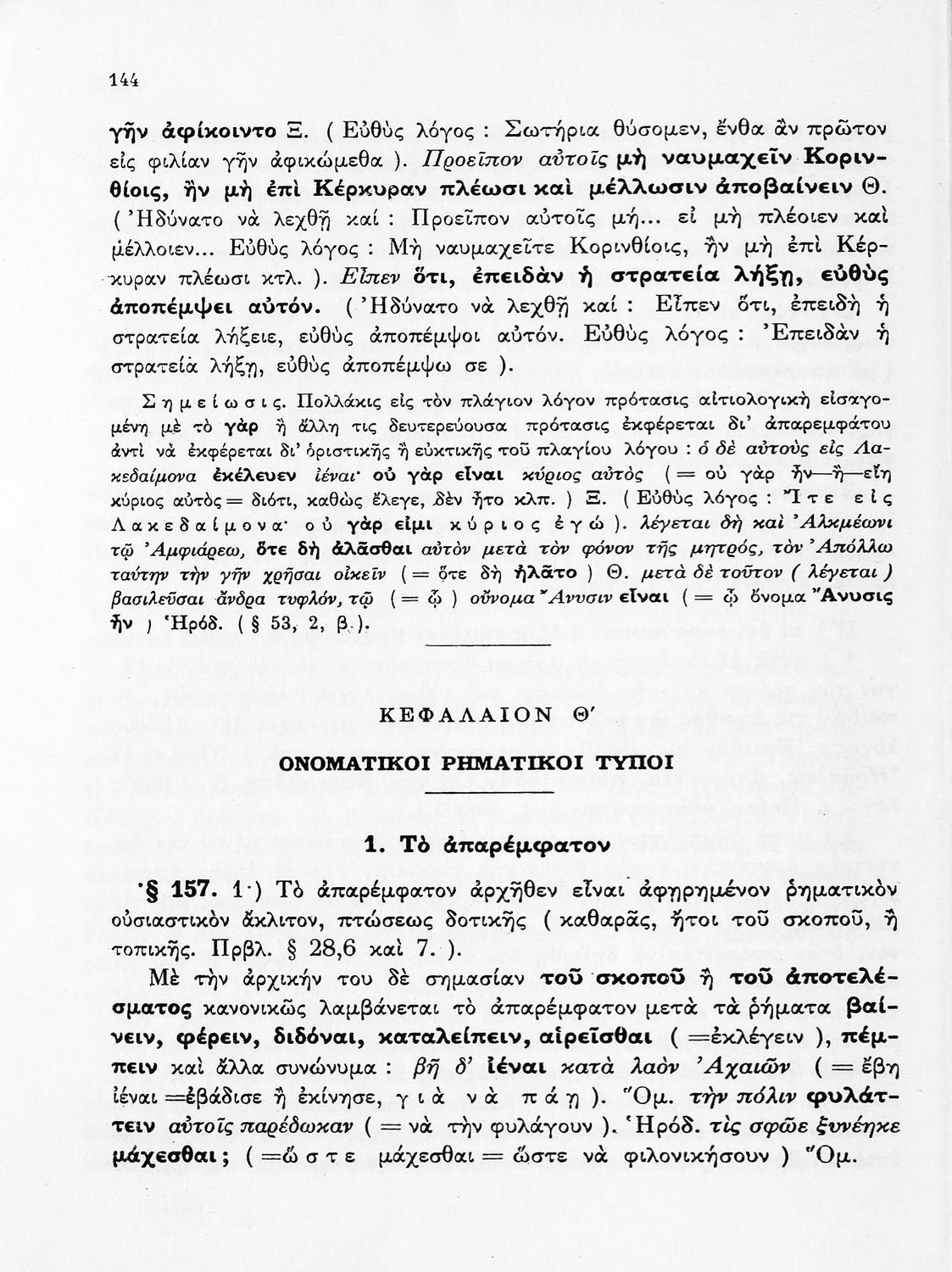 Σχολικό εγχειρίδιο Αρχαίων Ελληνικών Γυμνασίου που περιέχει τους κανόνες γραμματικής και είναι χωρισμένο σε φθογγολογικό, τυπολογικό και ετυμολογικό μέρος. Περιέχει και κατάλογο ανωμάλων ρημάτων.