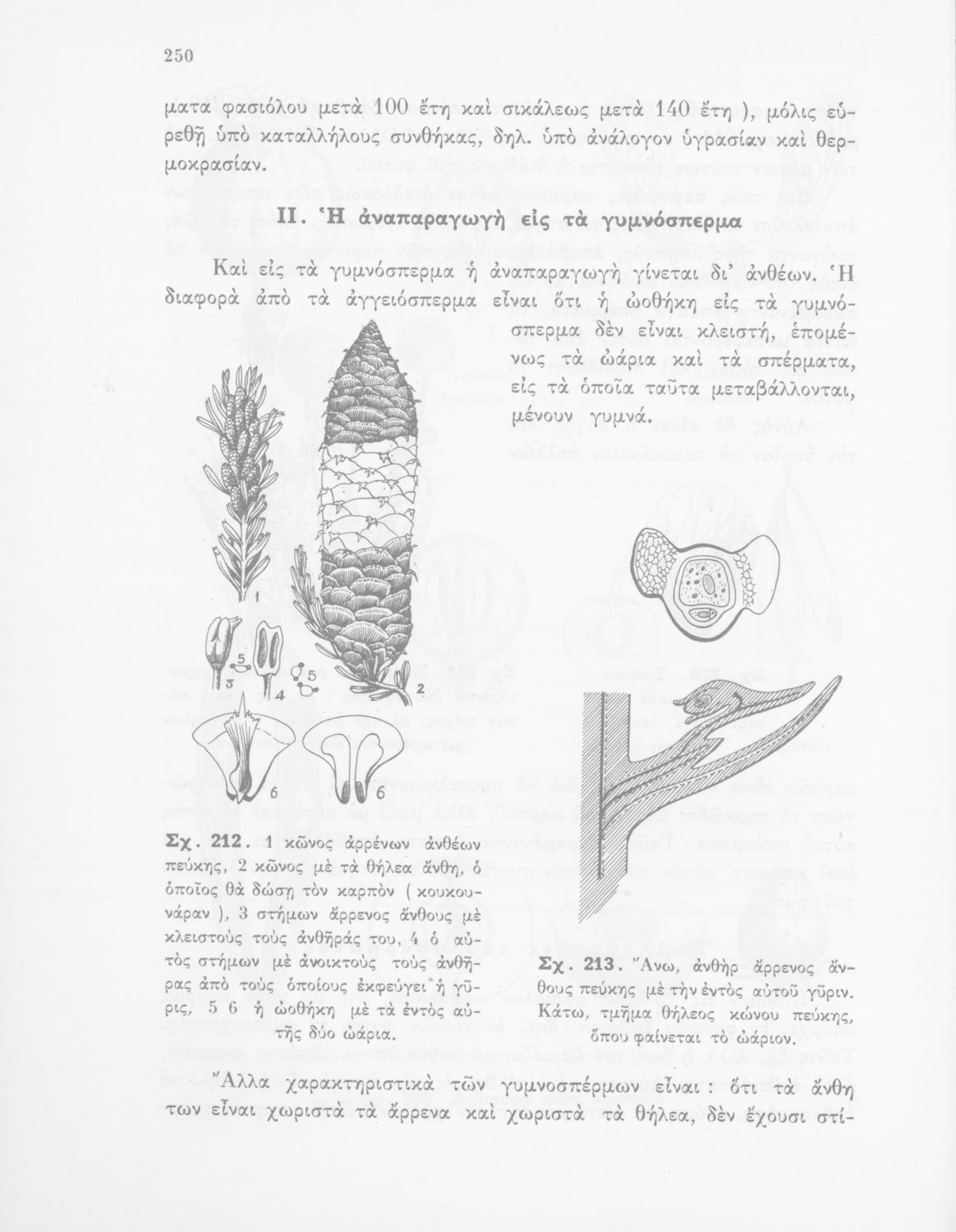 Σχολικό εγχειρίδιο Φυτολογίας Β΄ Γυμνασίου που εξετάζει φυτά και δέντρα της Ελλάδας ανάλογα με τη συνομοταξία στην οποία ανήκουν και παρέχει πληροφορίες για την αναπαραγωγή τους και τη χρησιμότητά τους για τον άνθρωπο.