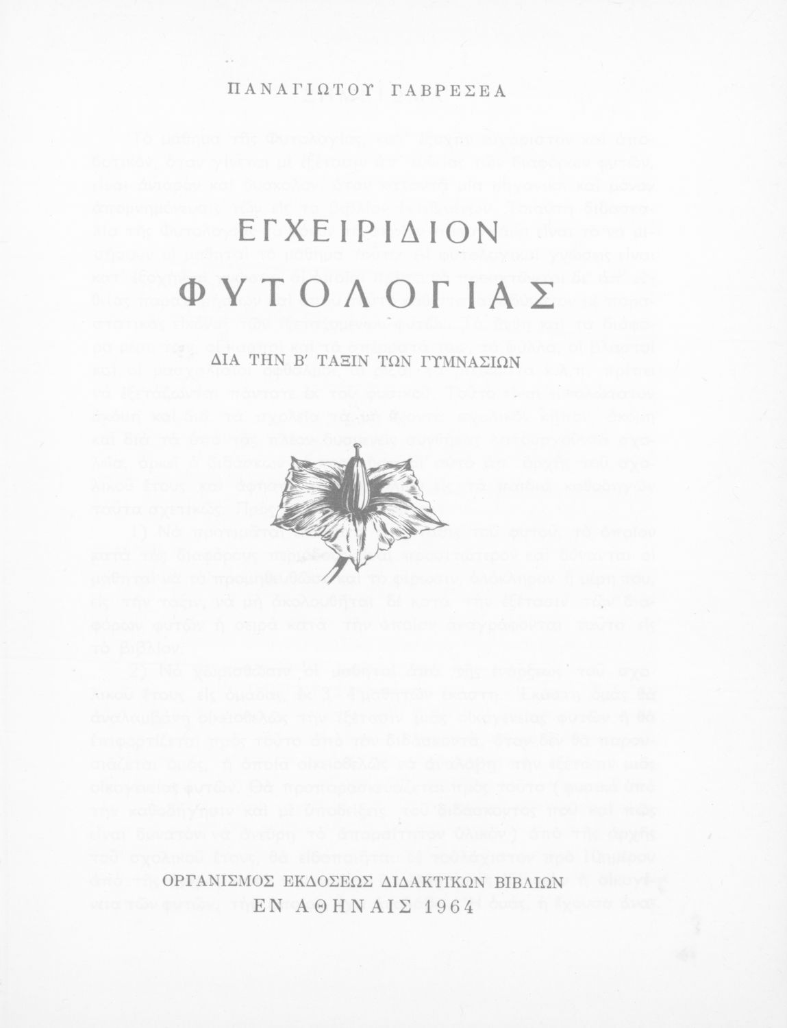 Τίτλος: Εγχειρίδιον Φυτολογίας, δια την Β΄ τάξιν των Γυμνασίων
