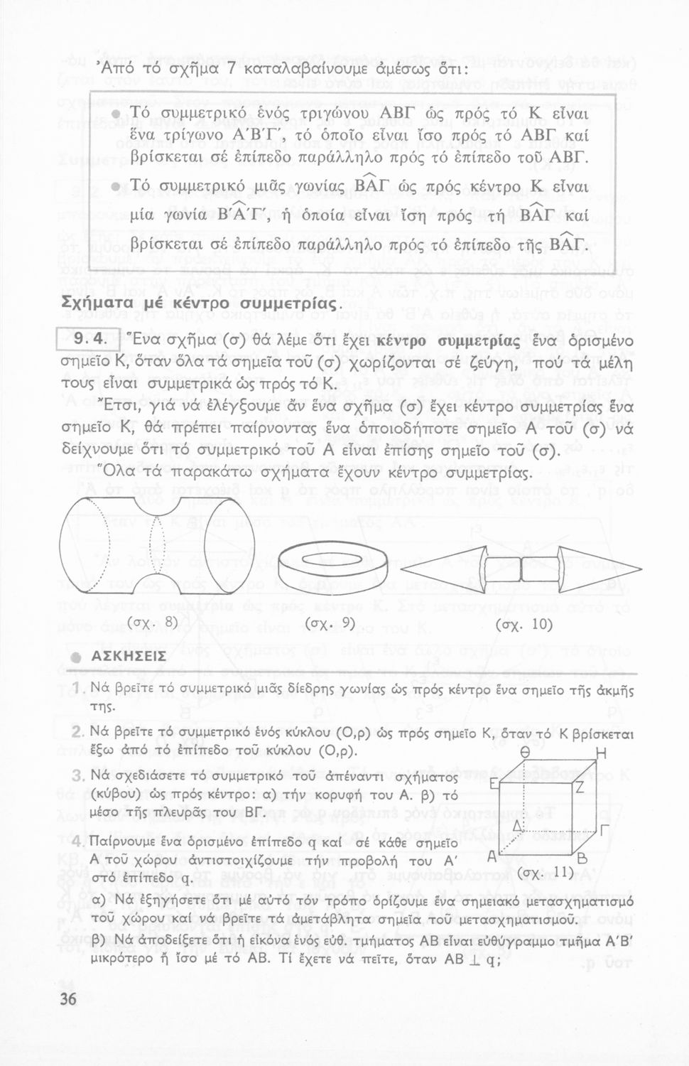 Σχολικό εγχειρίδιο Γεωμετρίας Γ΄ Γυμνασίου χωρισμένο σε θεωρήματα, λυμένες ασκήσεις, ασκήσεις και επαναλήψεις κεφαλαίου. Περιέχει ένα παράρτημα με επαναληπτικά μαθήματα και ένα με ευρετήριο όρων.