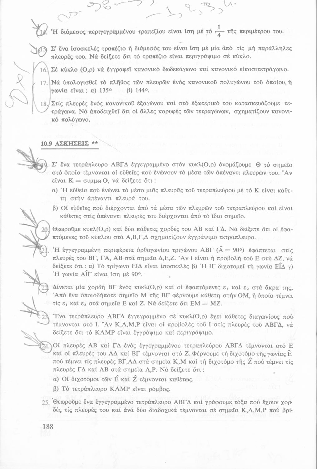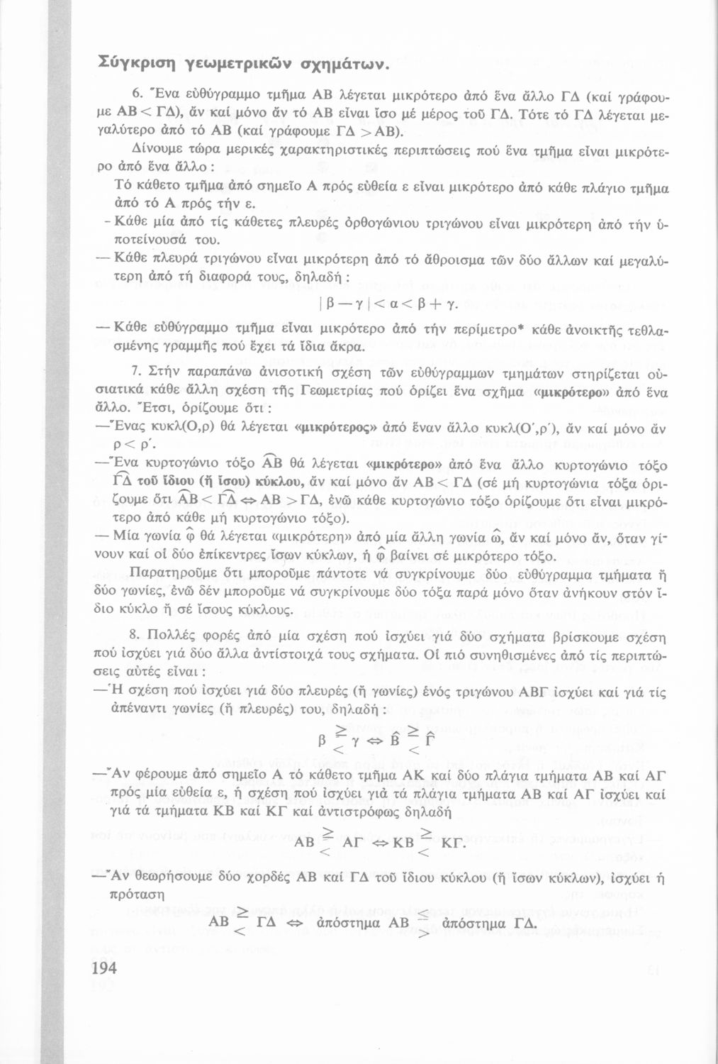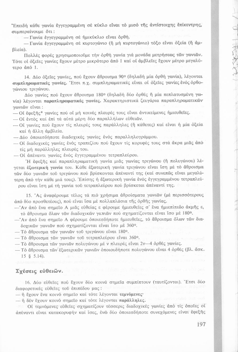 Σχολικό εγχειρίδιο Γεωμετρίας για τις Α΄, Β΄, Γ΄ Γυμνασίου που είναι χωρισμένο σε Επιπεδομετρία και Στερεομετρία και περιλαμβάνει θεωρία και ασκήσεις.