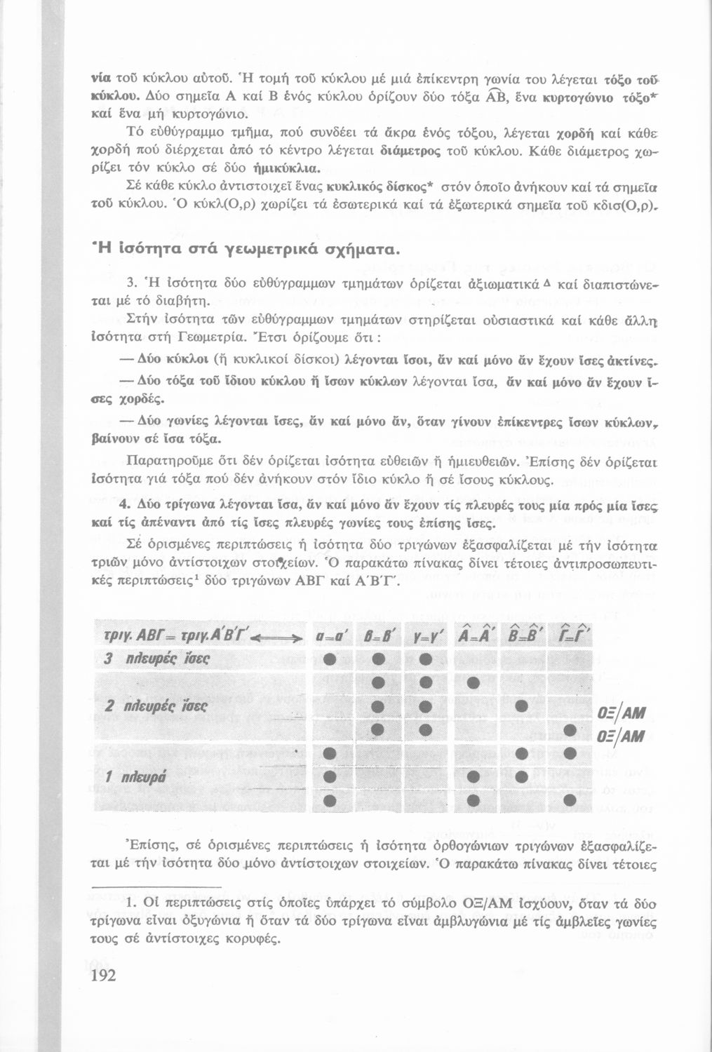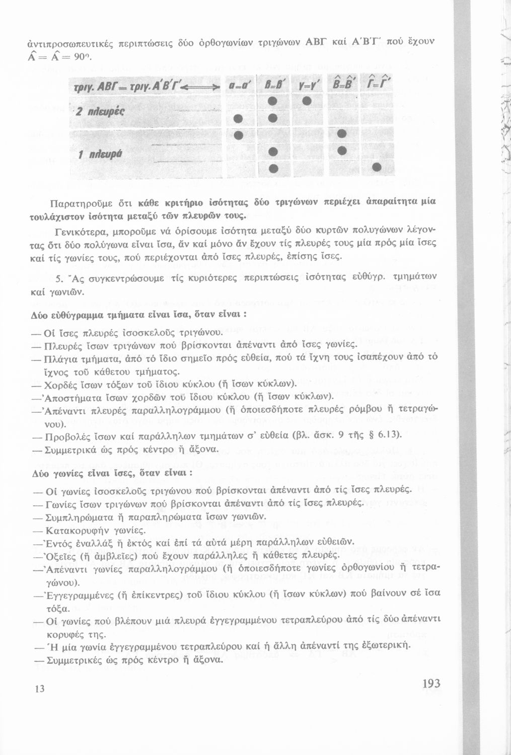 Σχολικό εγχειρίδιο Γεωμετρίας Γ΄ Γυμνασίου χωρισμένο σε θεωρήματα, λυμένες ασκήσεις, ασκήσεις και επαναλήψεις κεφαλαίου. Περιέχει ένα παράρτημα με επαναληπτικά μαθήματα και ένα με ευρετήριο όρων.