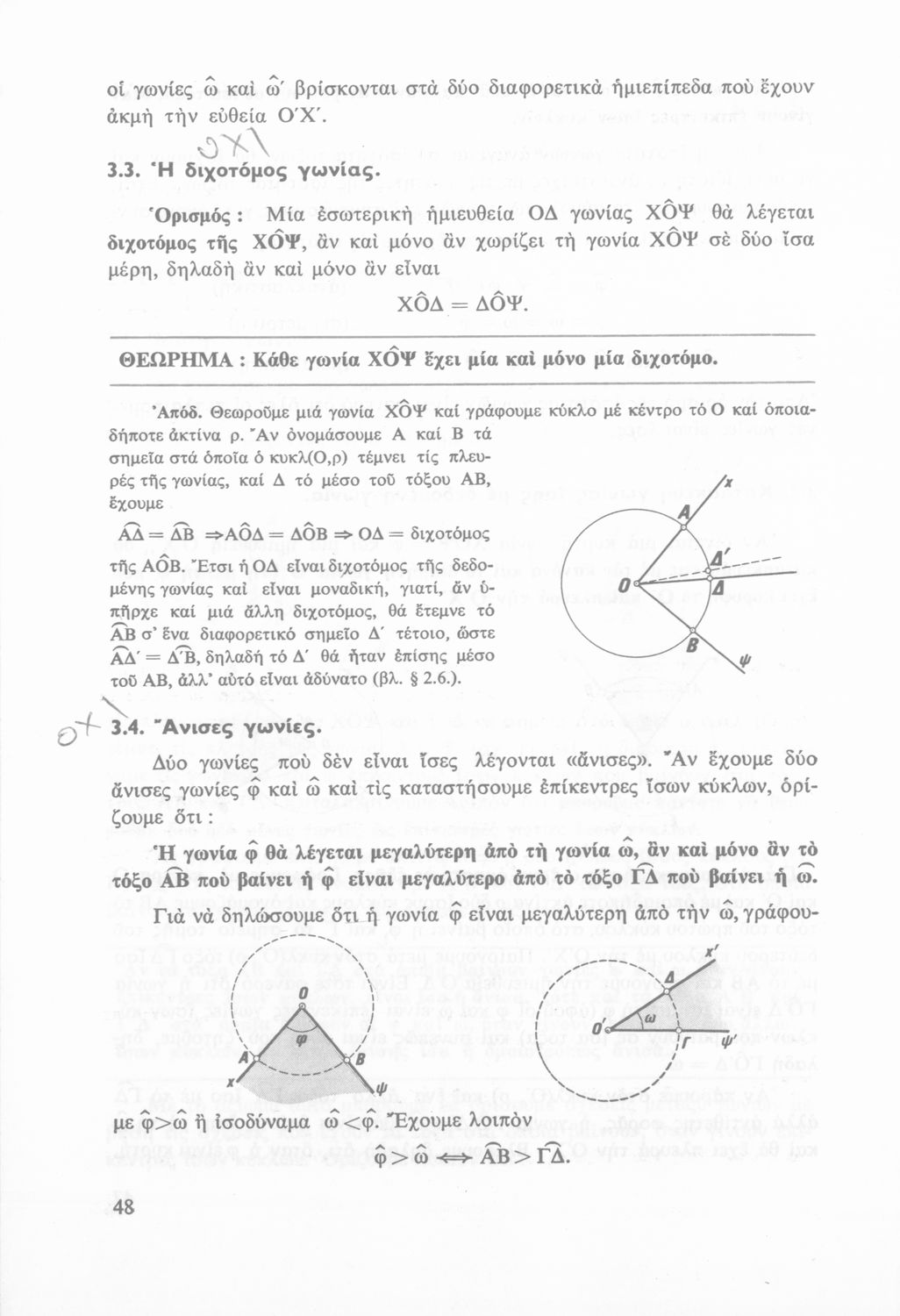 Σχολικό εγχειρίδιο Γεωμετρίας Α΄ Λυκείου χωρισμένο σε θεωρήματα, λυμένες ασκήσεις, ασκήσεις και επαναλήψεις κεφαλαίου. Περιέχει ένα παράρτημα με επαναληπτικά μαθήματα και ένα με ευρετήριο όρων.