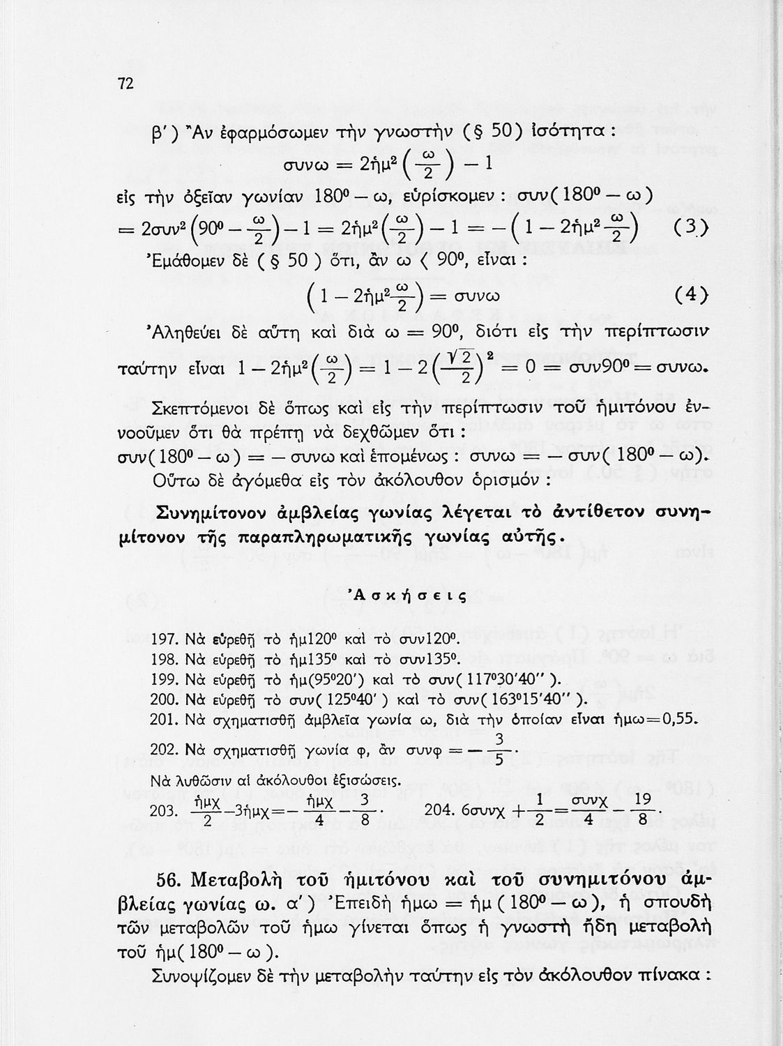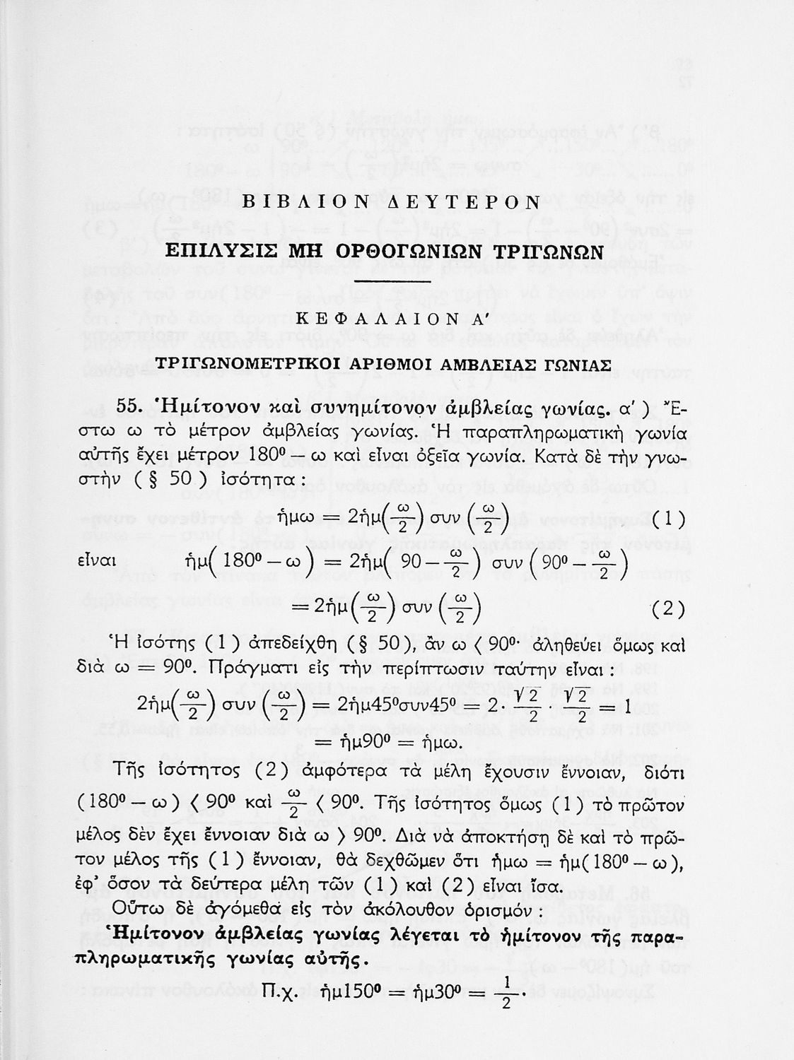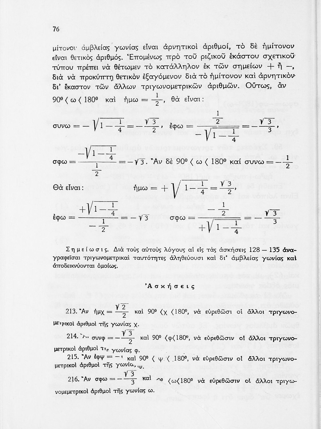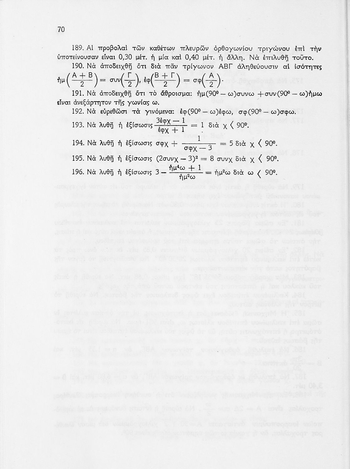 Σχολικό εγχειρίδιο Τριγωνομετρίας για τις Δ΄, Ε΄ και ΣΤ΄ Γυμνασίου που περιλαμβάνει θεωρία και ασκήσεις. Φέρει το σύμβολο της δικτατορίας.