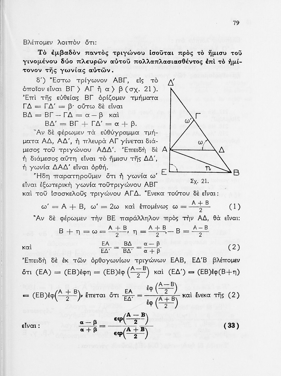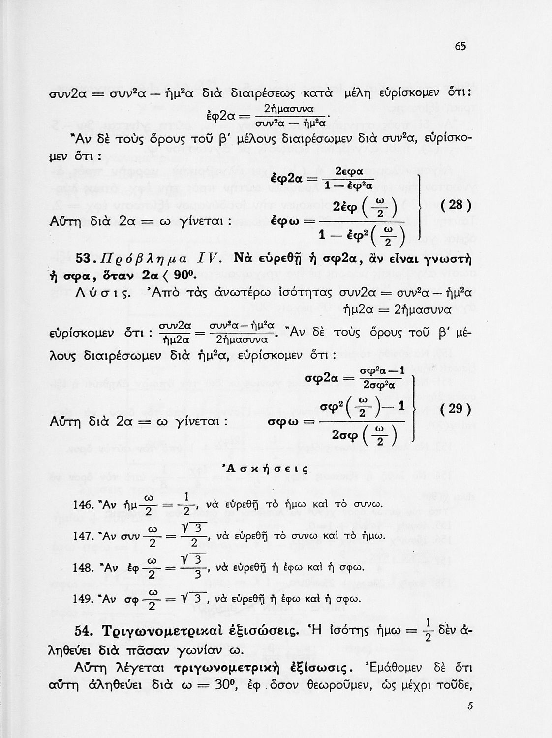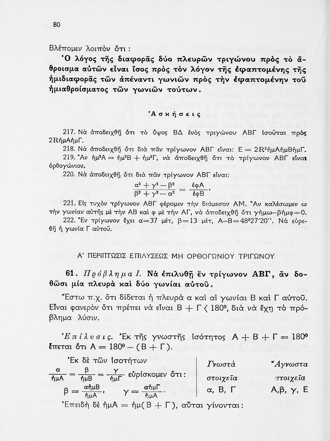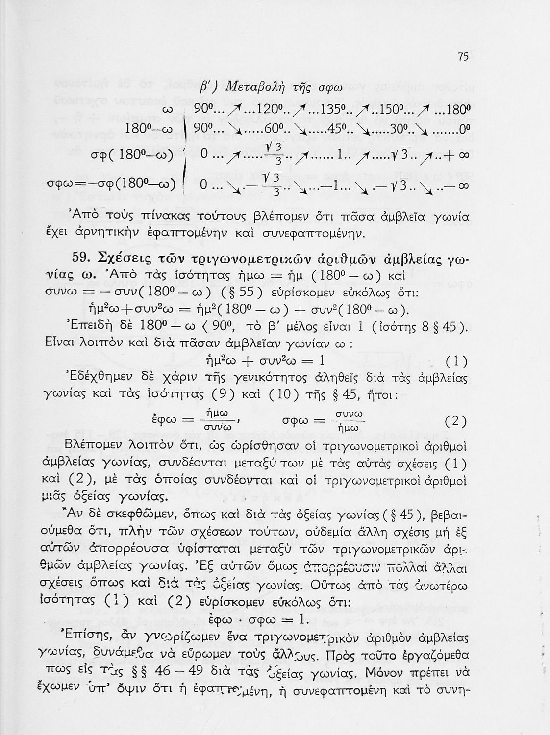 Σχολικό εγχειρίδιο Τριγωνομετρίας για τις Δ΄, Ε΄ και ΣΤ΄ Γυμνασίου που περιλαμβάνει θεωρία και ασκήσεις. Φέρει το σύμβολο της δικτατορίας.