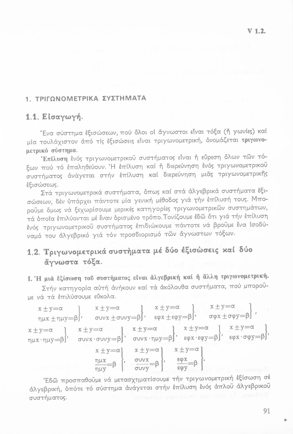 Σχολικό εγχειρίδιο Μαθηματικών Β΄ Λυκείου που περιλαμβάνει Άλγεβρα και Τριγωνομετρία και είναι χωρισμένο σε θεωρήματα, παρατηρήσεις, παραδείγματα και ασκήσεις.