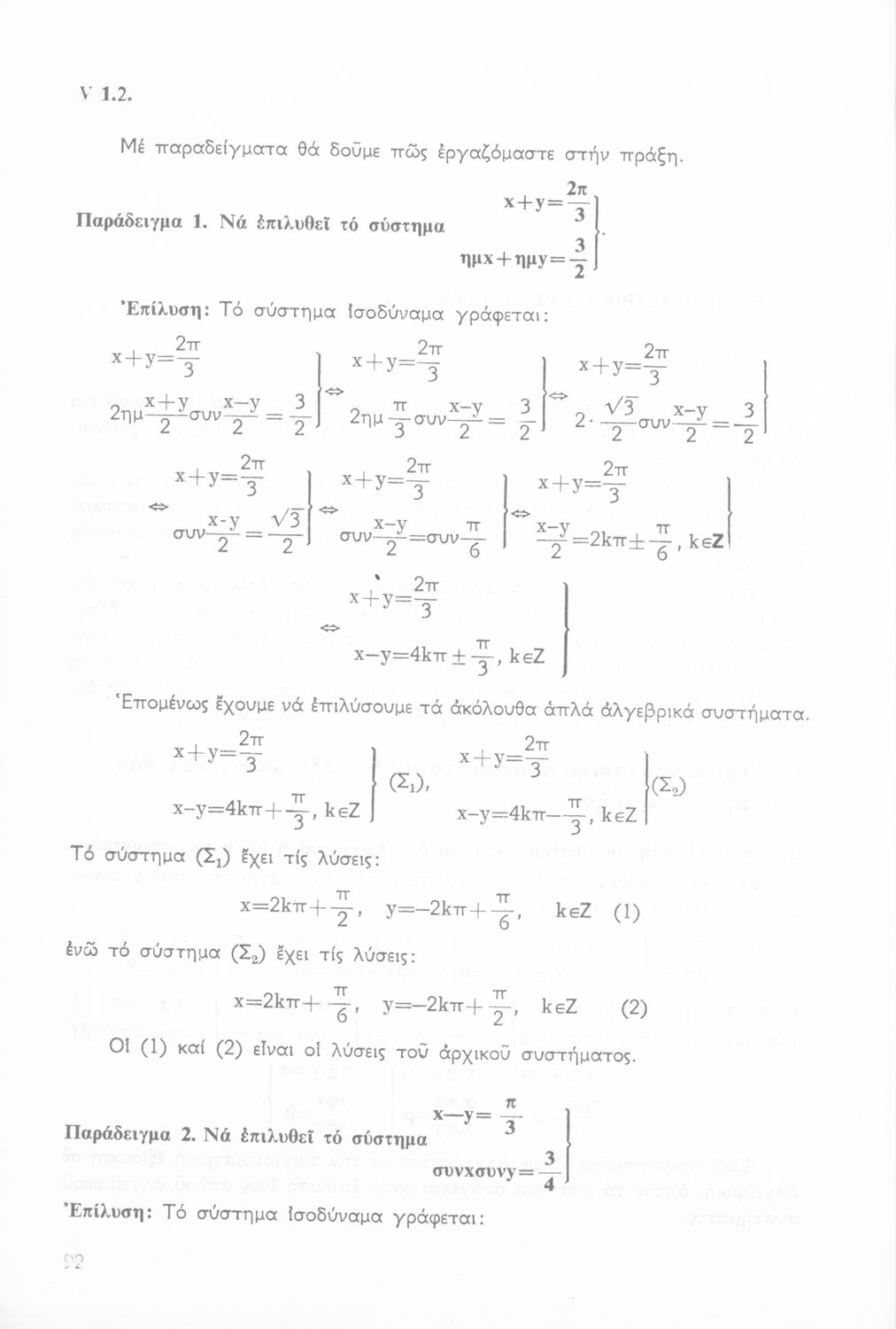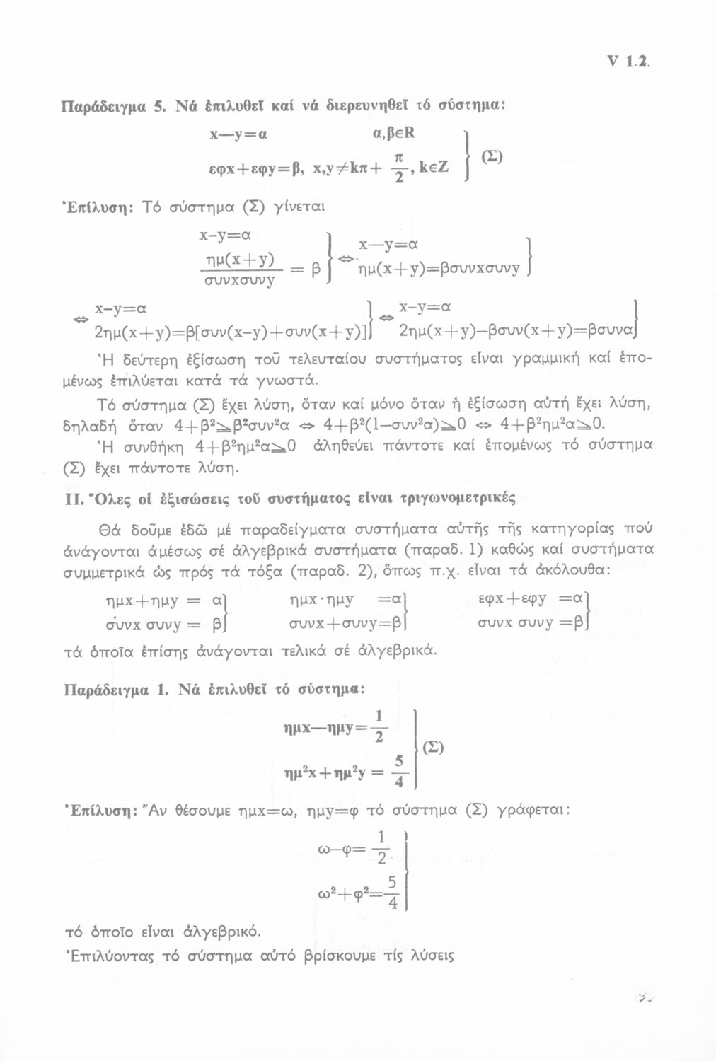 Σχολικό εγχειρίδιο Μαθηματικών Β΄ Λυκείου χωρισμένο σε θεωρία, παρατηρήσεις, παραδείγματα και ασκήσεις.