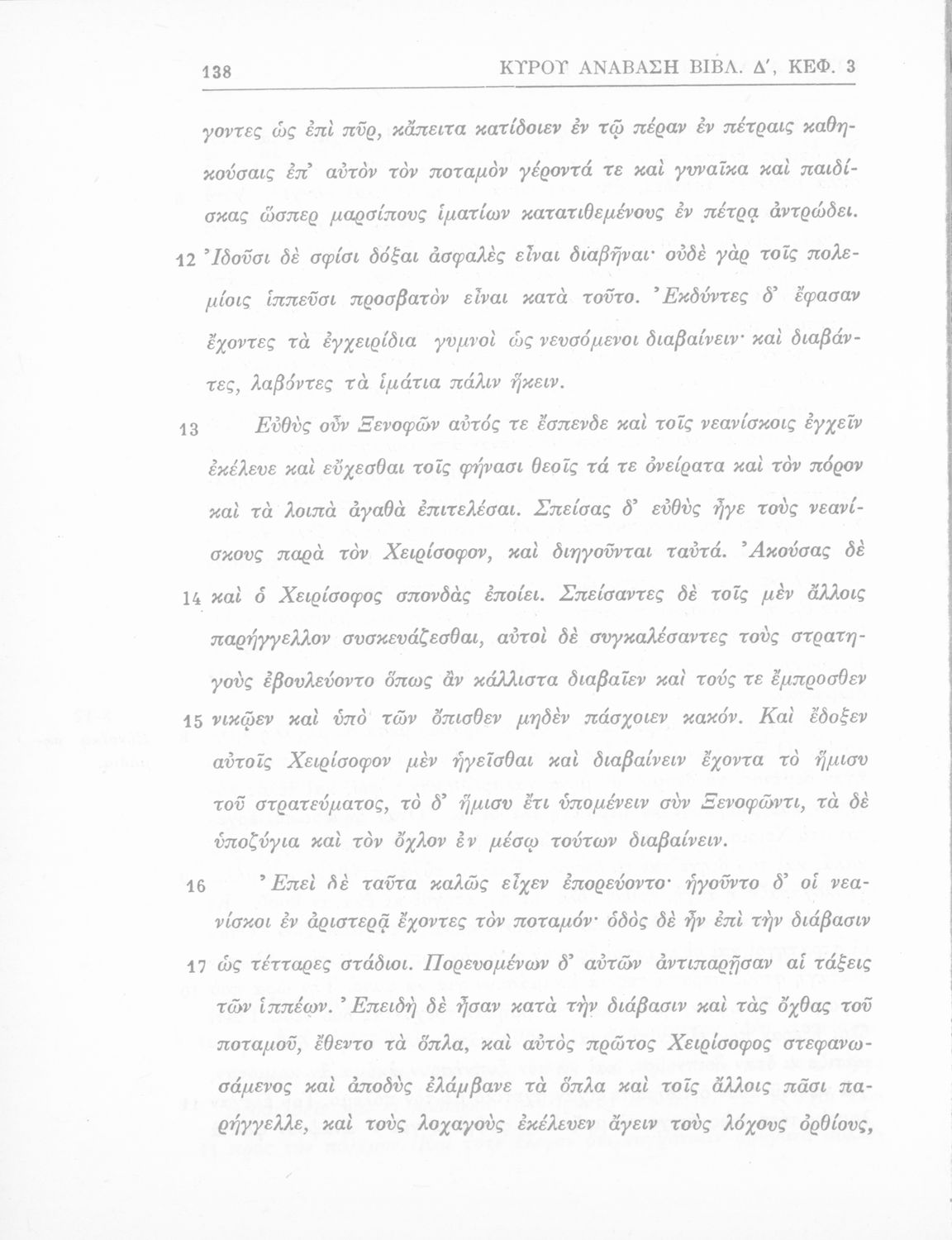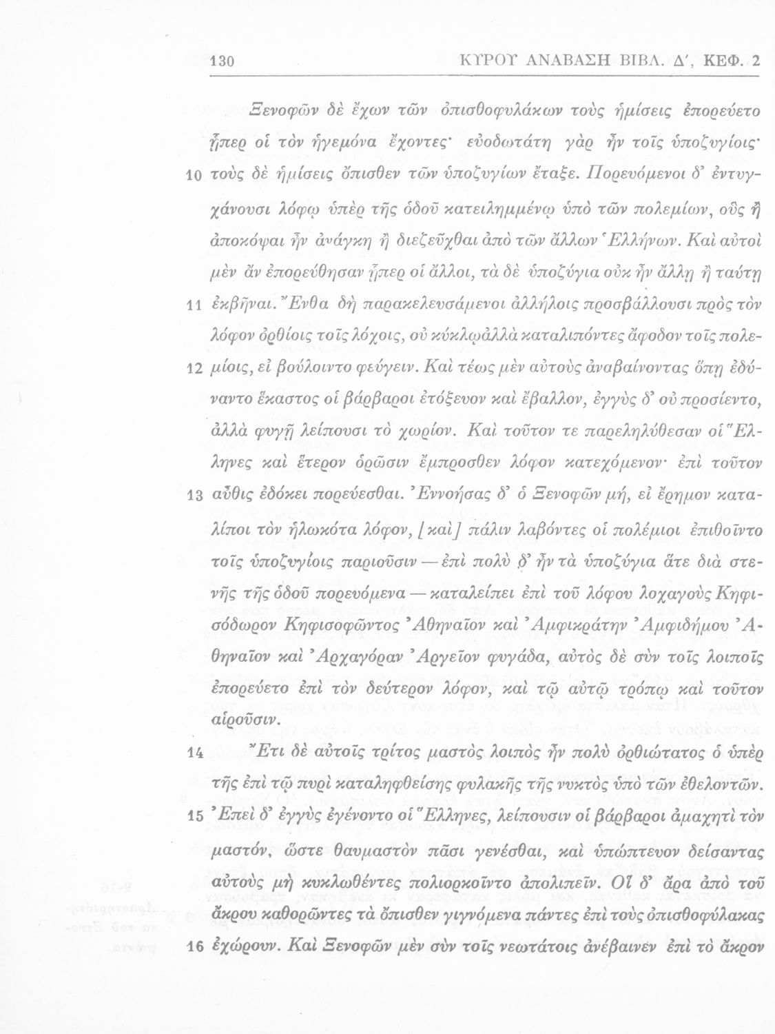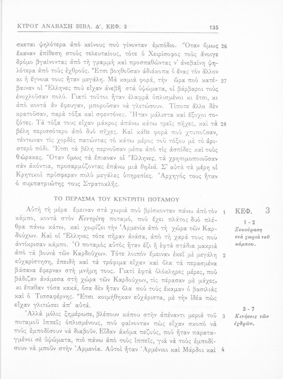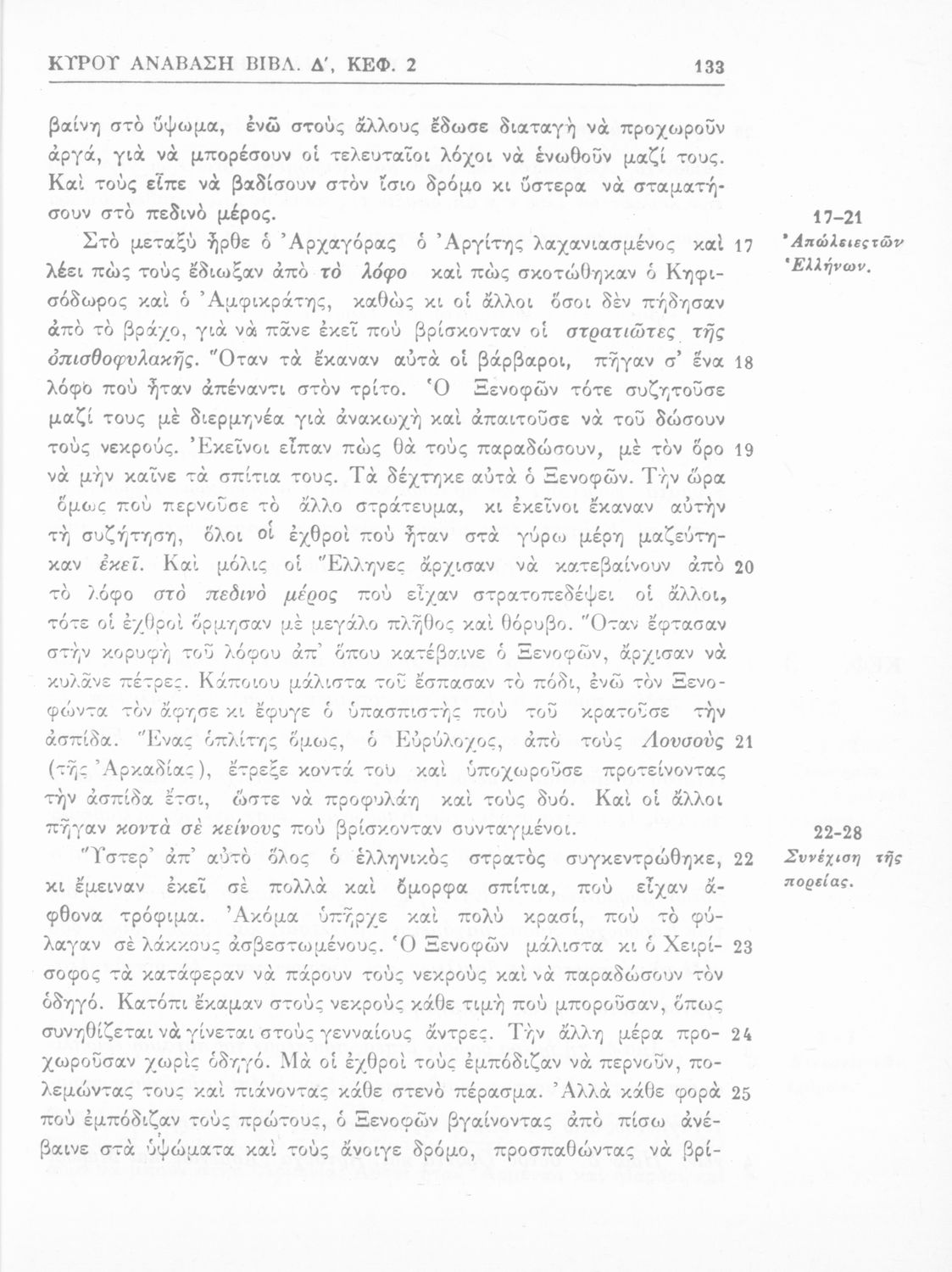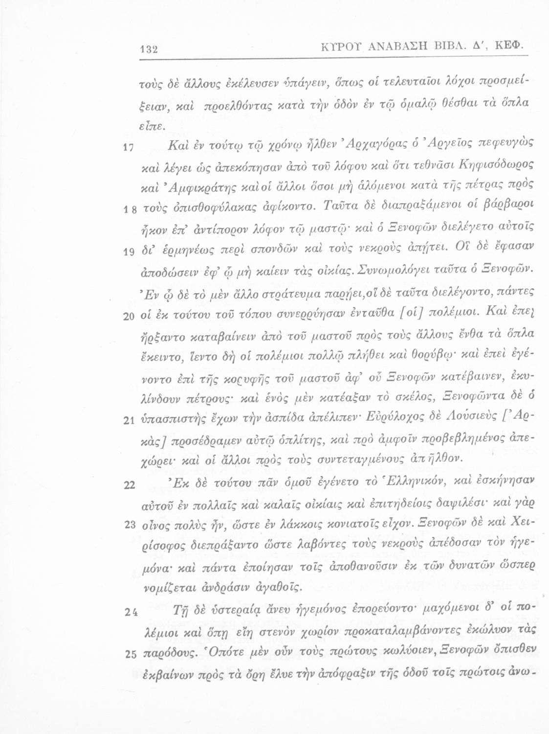 Σχολικό εγχειρίδιο της Γ' Ελληνικού Σχολείου και Αστικών Σχολείων για το μάθημα των Αρχαίων Ελληνικών. Το σύγγραμμα περιλαμβάνει κείμενα κατ΄ επιλογή από τα τέσσερα τελευταία βιβλία του έργου Κύρου Ανάβασις. ...