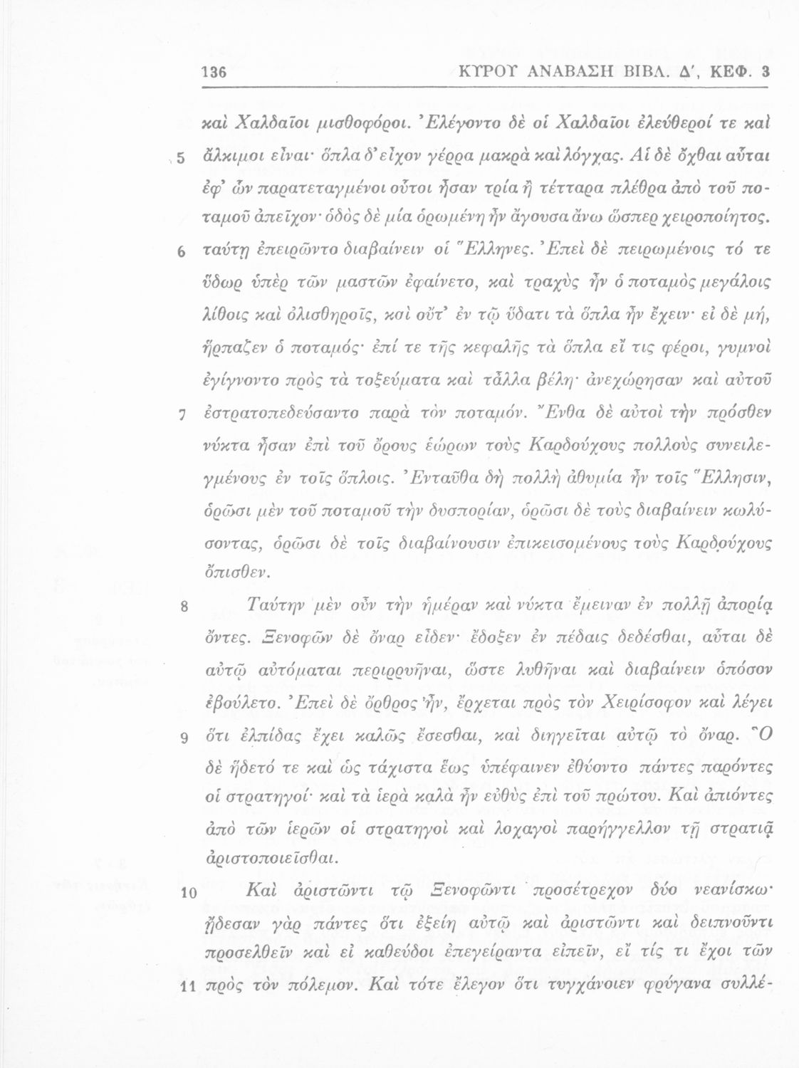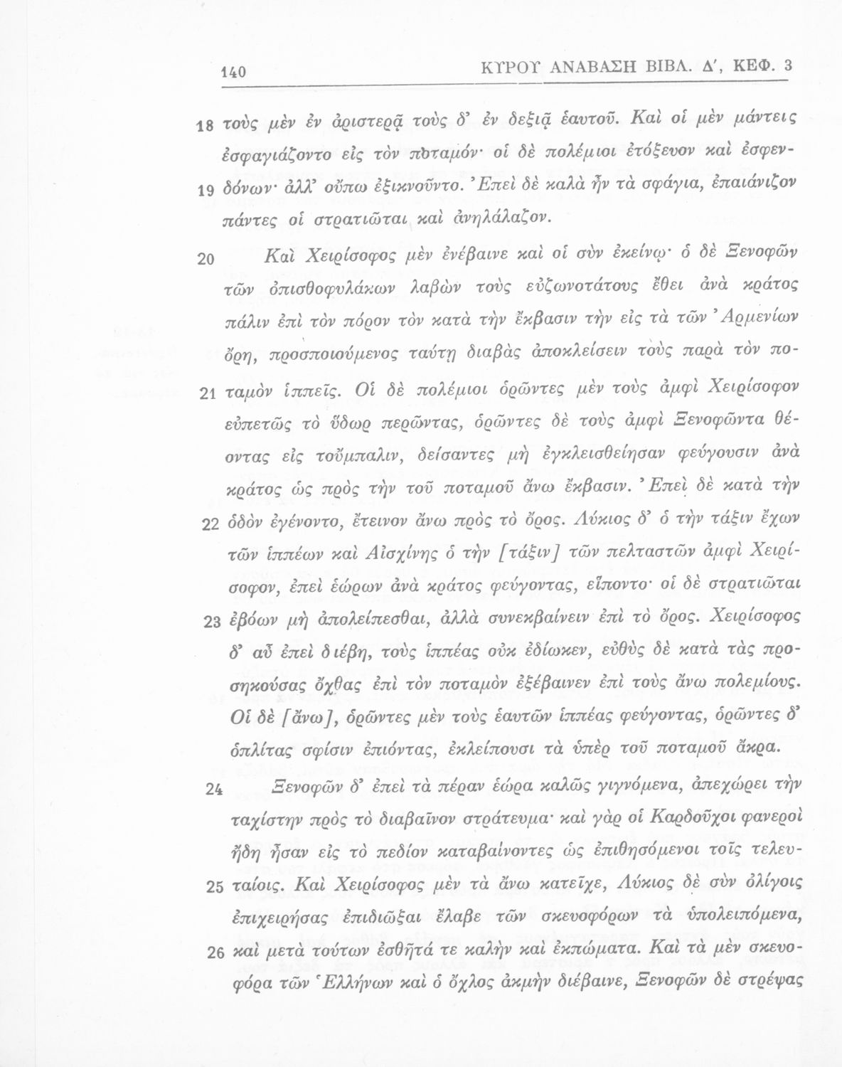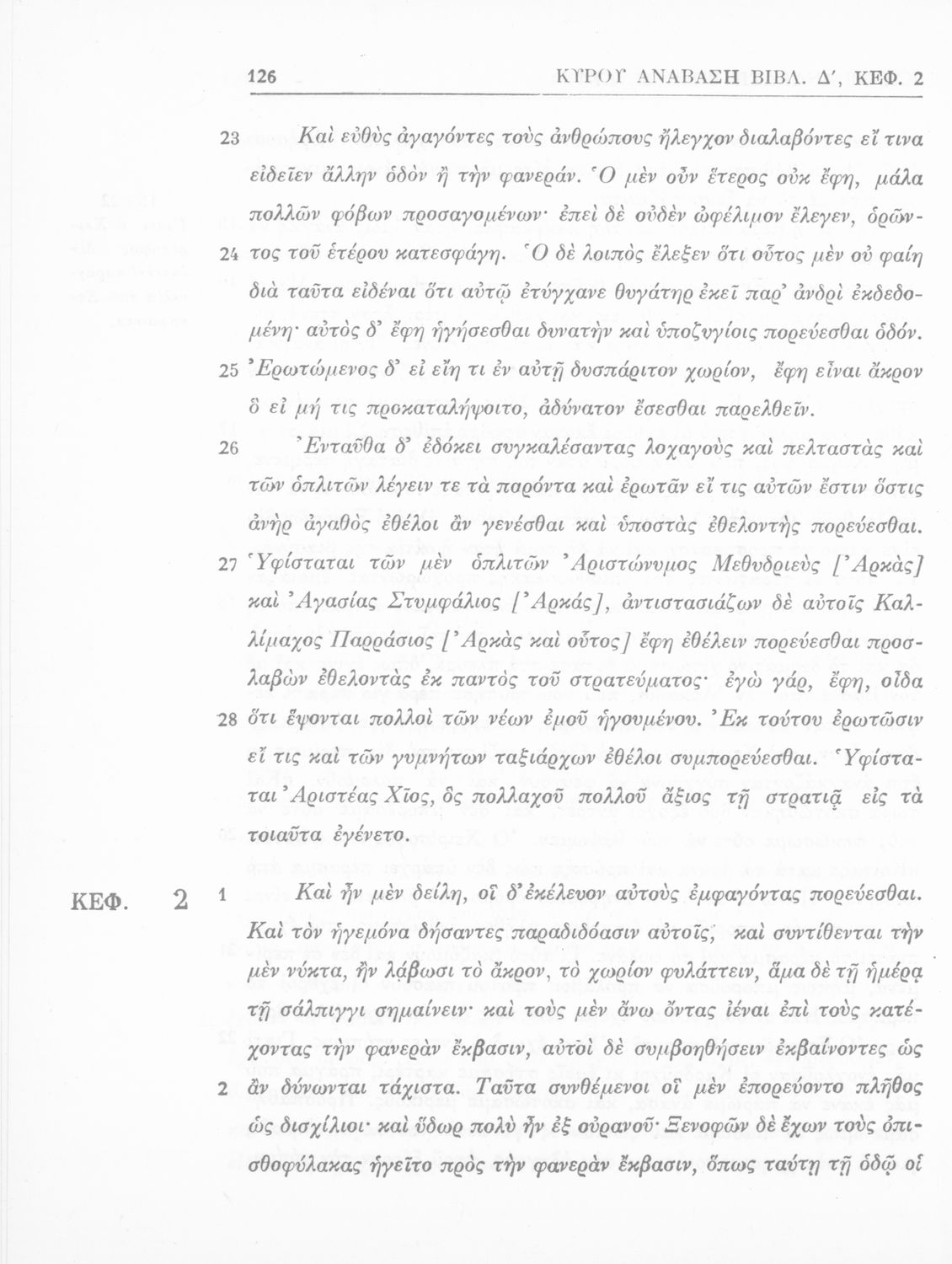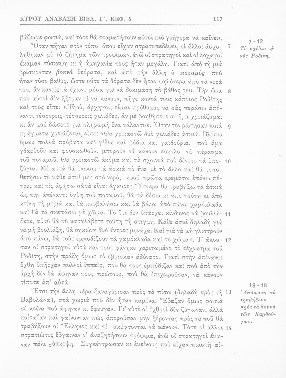 Σχολικό εγχειρίδιο της Γ' Ελληνικού Σχολείου και Αστικών Σχολείων για το μάθημα των Αρχαίων Ελληνικών. Το σύγγραμμα περιλαμβάνει κείμενα κατ΄ επιλογή από τα τέσσερα τελευταία βιβλία του έργου Κύρου Ανάβασις. ...