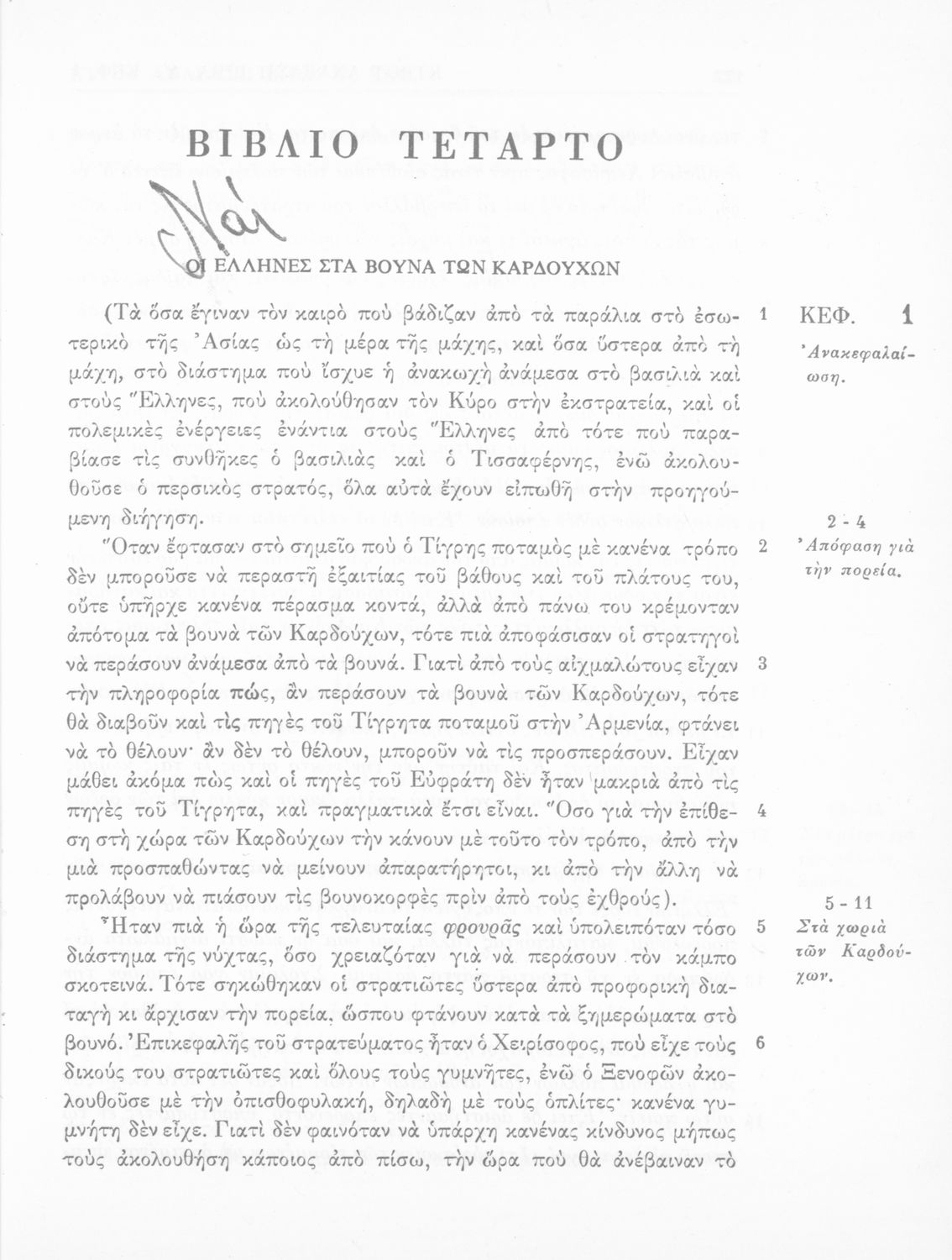 Σχολικό Εγχειρίδιο Αρχαίων Ελληνικών της Β' Γυμνασίου. Το βιβλίο αναφέρεται στο σύγγραμμα του Ξενοφώντα για την εκστρατεία του Κύρου κατά του Αρταξέρξη και κυρίως την κάθοδο ( επιστροφή) των Μυρίων. Στο ...