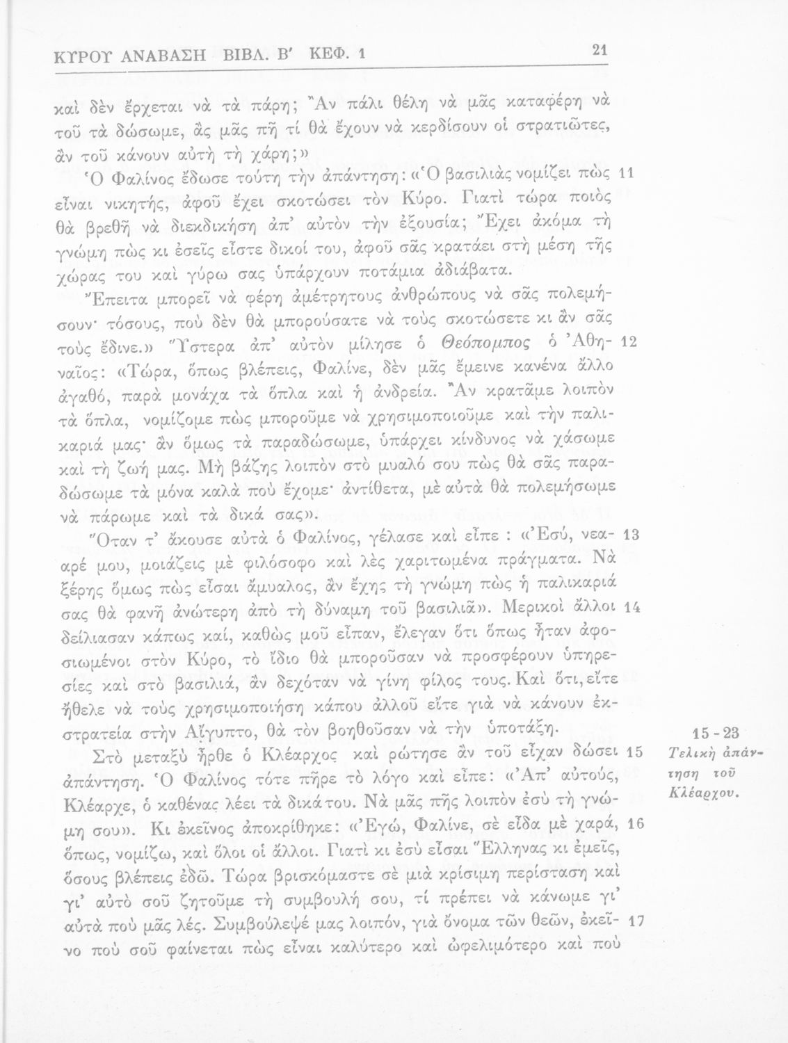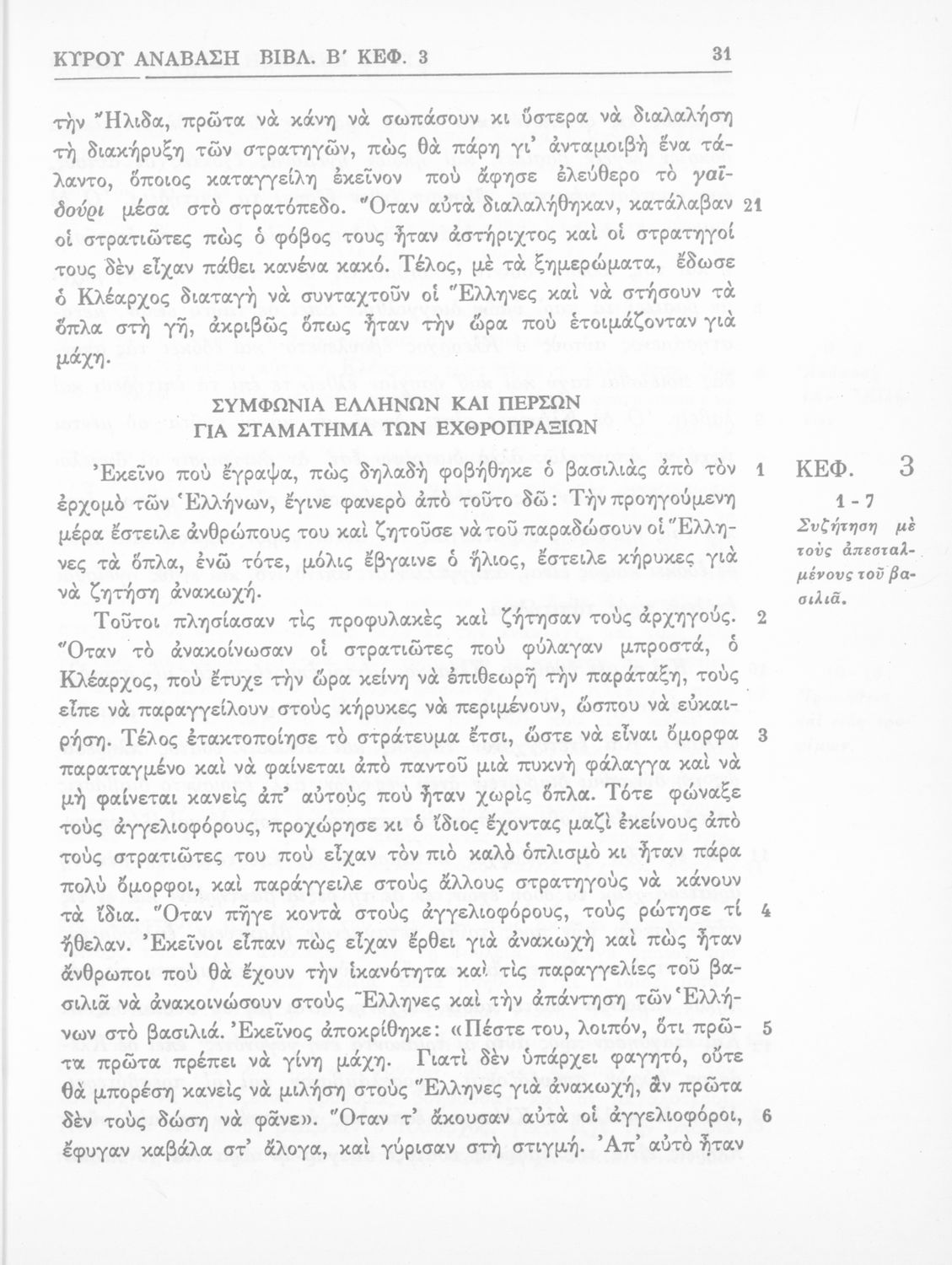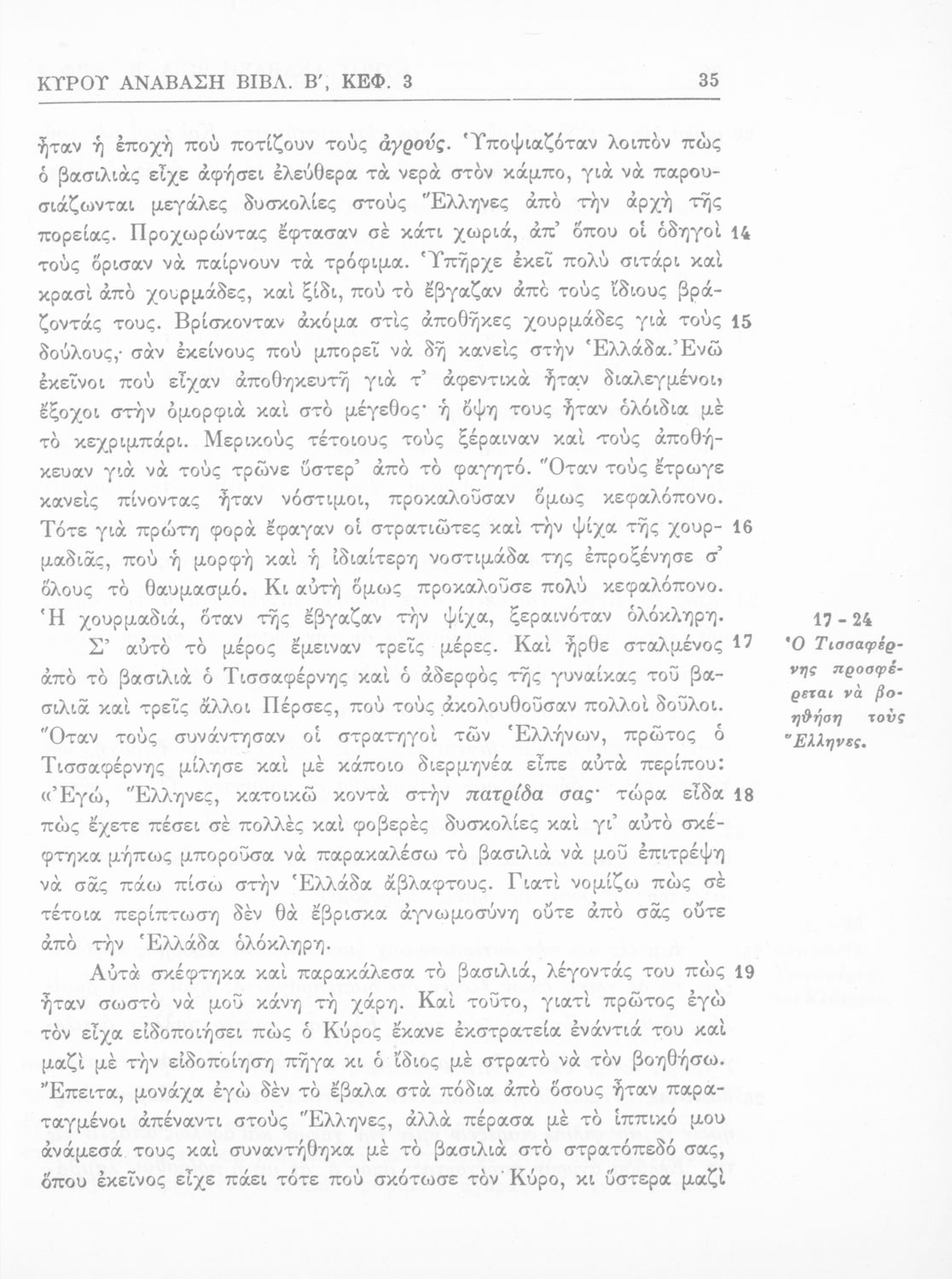Σχολικό εγχειρίδιο της Γ' Ελληνικού Σχολείου και Αστικών Σχολείων για το μάθημα των Αρχαίων Ελληνικών. Το σύγγραμμα περιλαμβάνει κείμενα κατ΄ επιλογή από τα τέσσερα τελευταία βιβλία του έργου Κύρου Ανάβασις. ...