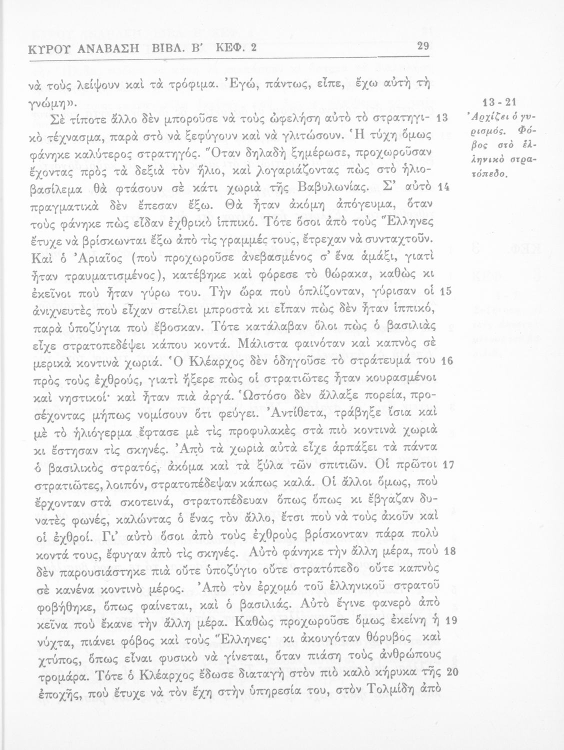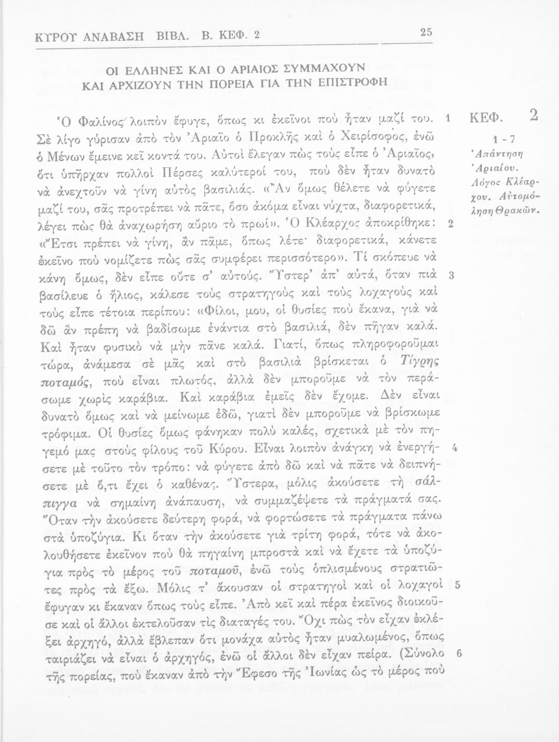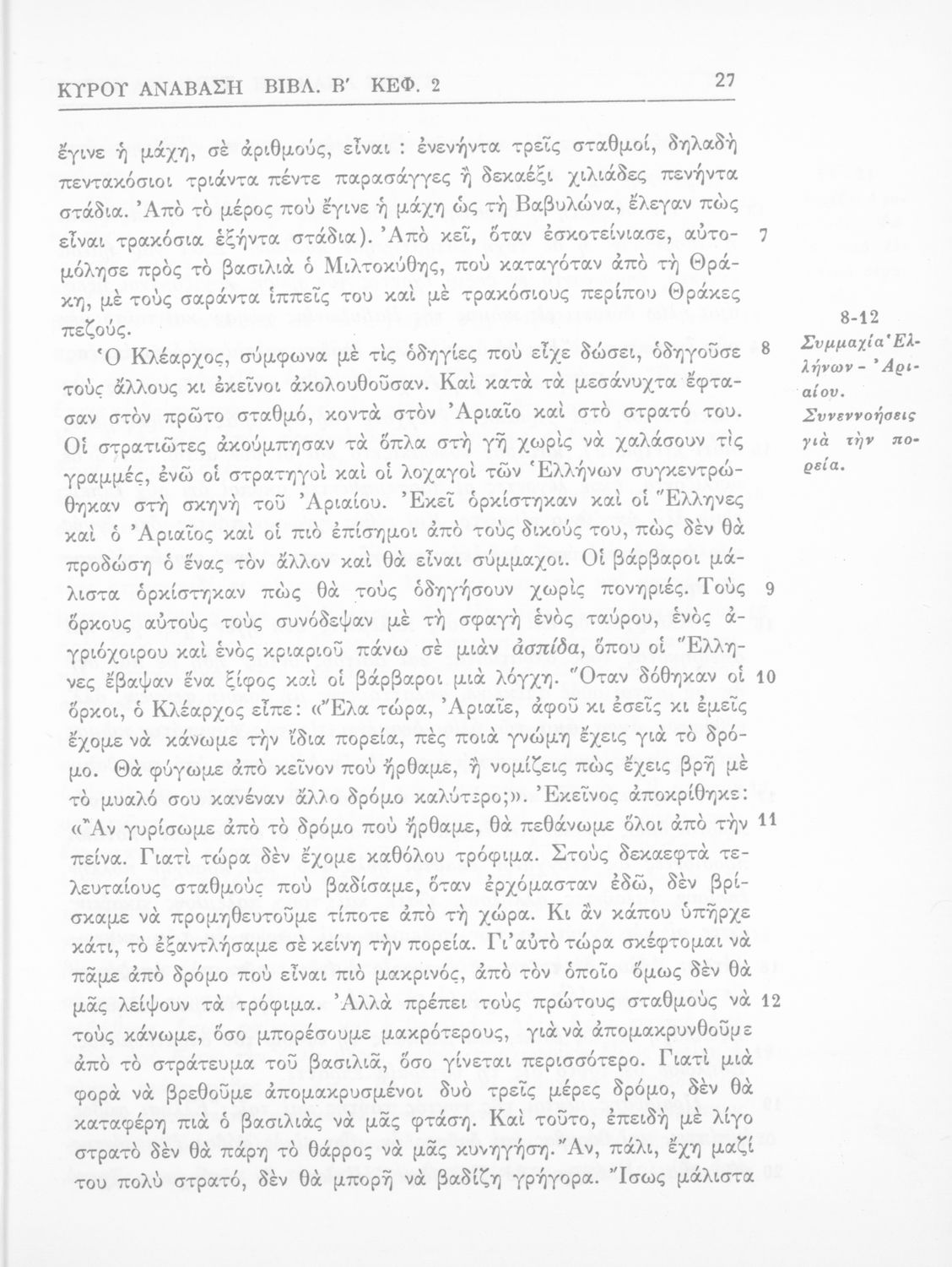Σχολικό εγχειρίδιο Αρχαίων Ελληνικών Β΄ Γυμνασίου που περιλαμβάνει αποσπάσματα από το έργο του Ξενοφώντα Κύρου Ανάβασις, ερμηνευτικές σημειώσεις και πραγματολογικά σχόλια.