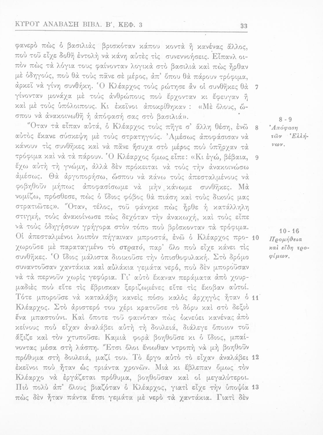 Σχολικό εγχειρίδιο Αρχαίων Ελληνικών Γ΄ Γυμνασίου που περιλαμβάνει το έργο του Ξενοφώντα Κύρου Ανάβασις, εισαγωγικά σχόλια για τη ζωή και το έργο του, ερμηνευτικές και γραμματικές παρατηρήσεις.