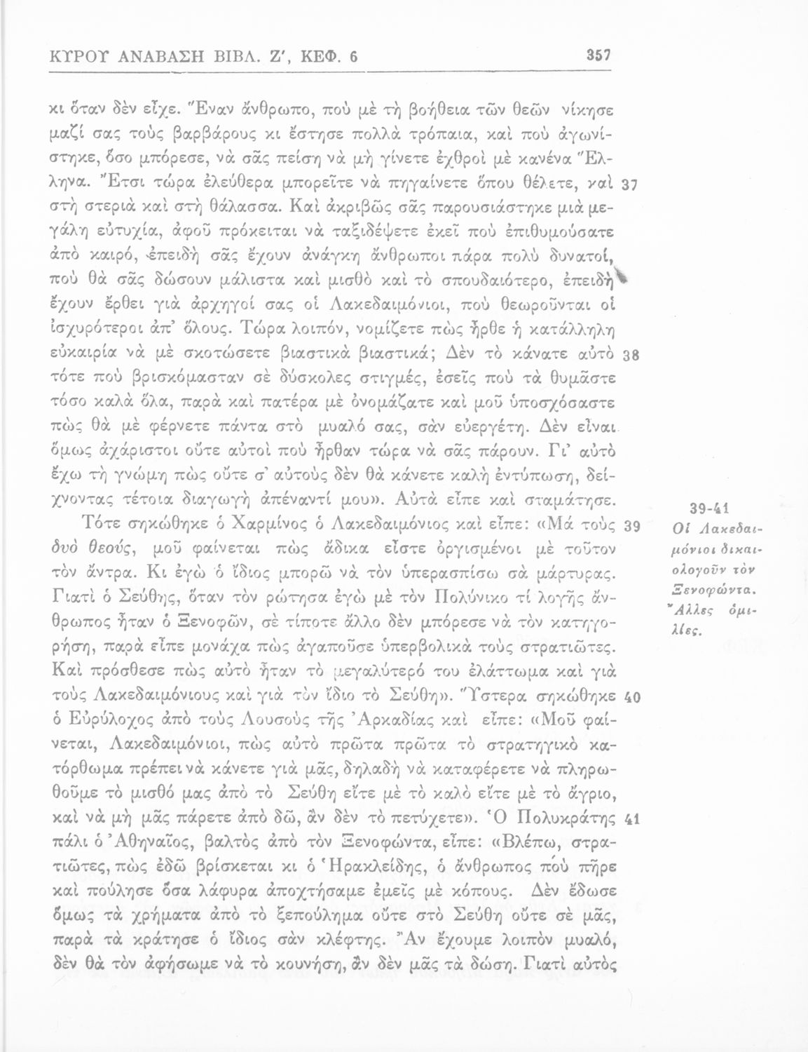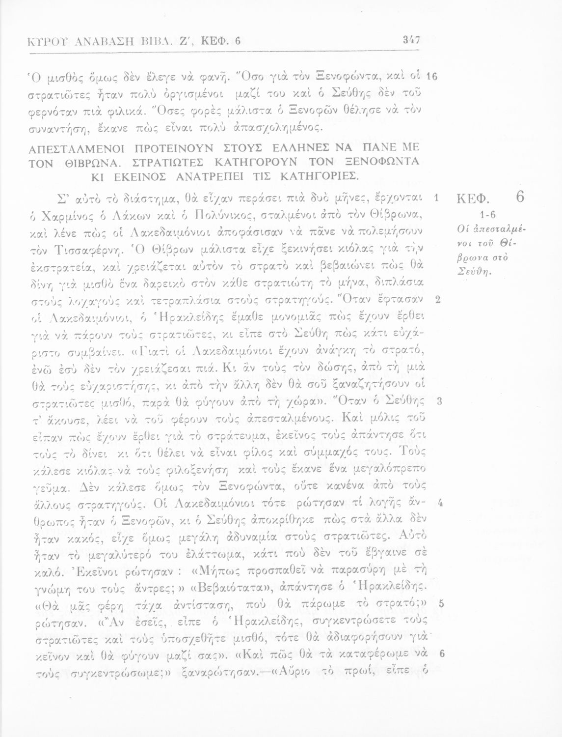 Ξενοφών, Δ. Η. Κυριακόπουλος (σχόλια)