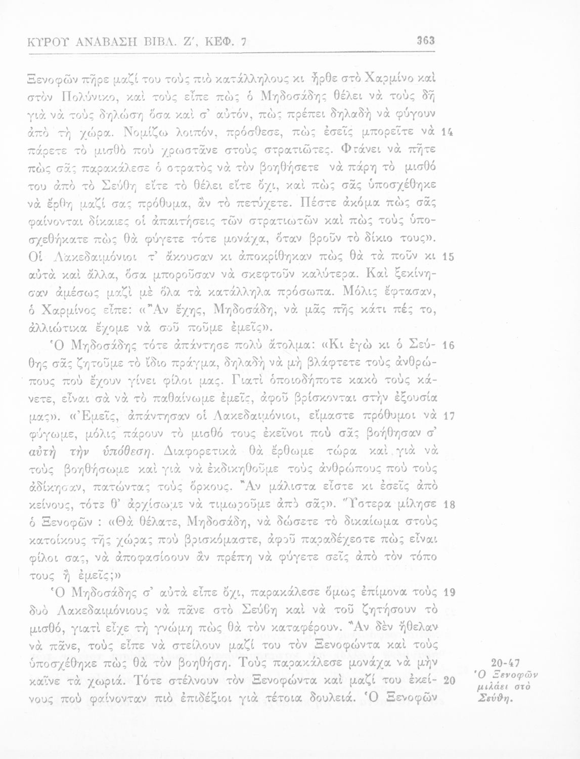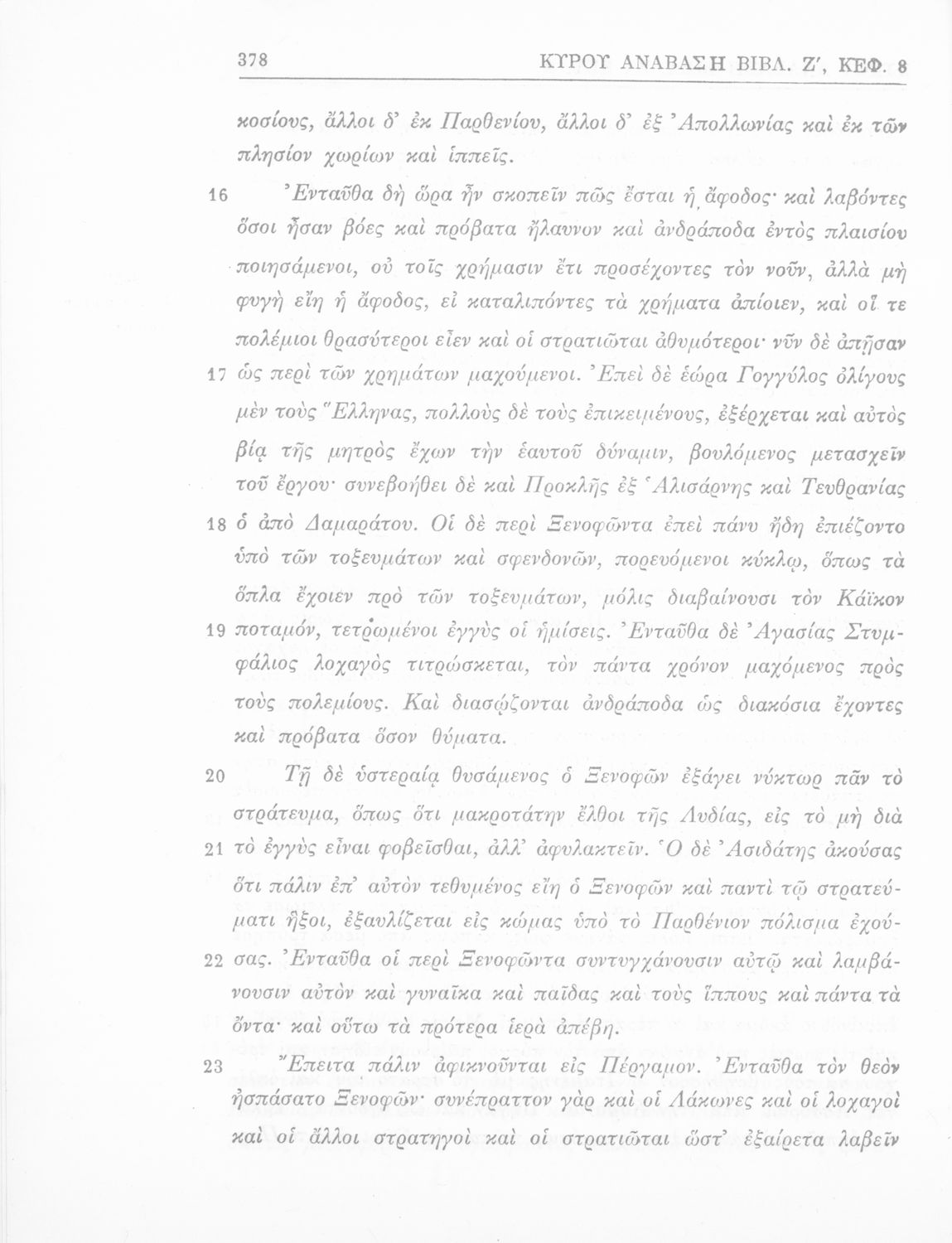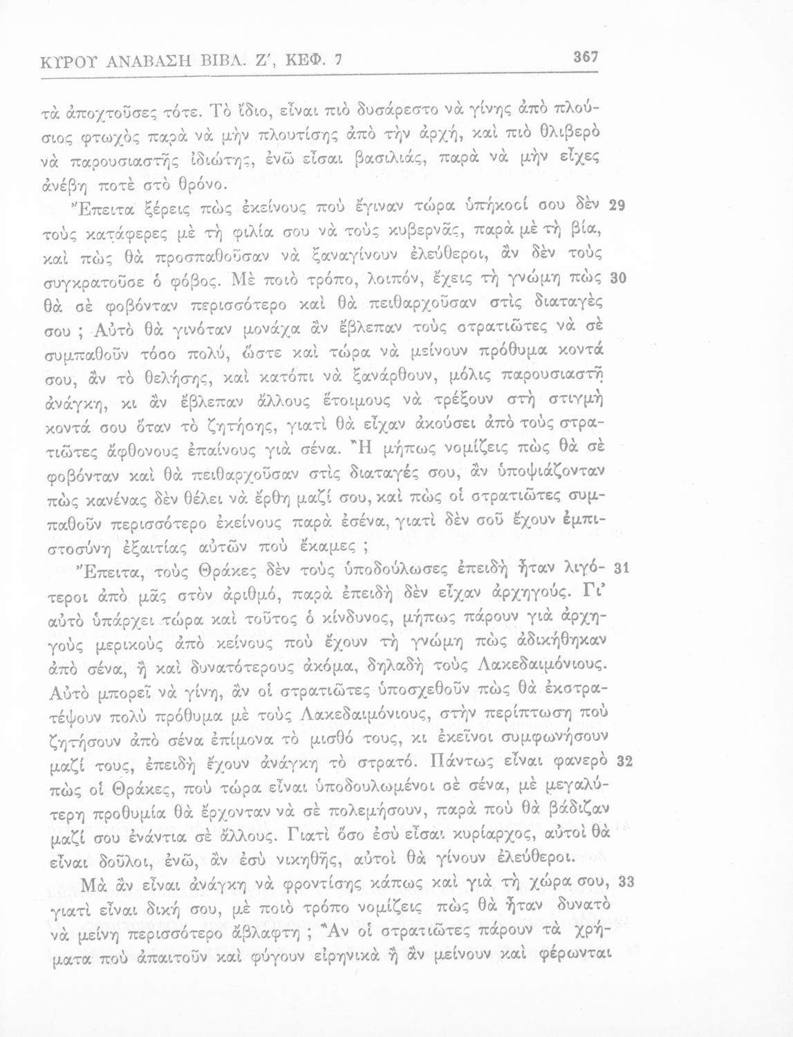 Ξενοφών, Νικόλαος Ζαφειρίου (σχόλια)