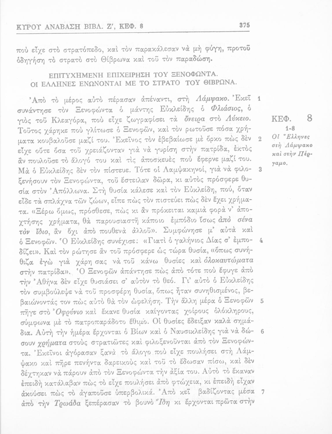 Ξενοφών, Δ. Η. Κυριακόπουλος (σχόλια)