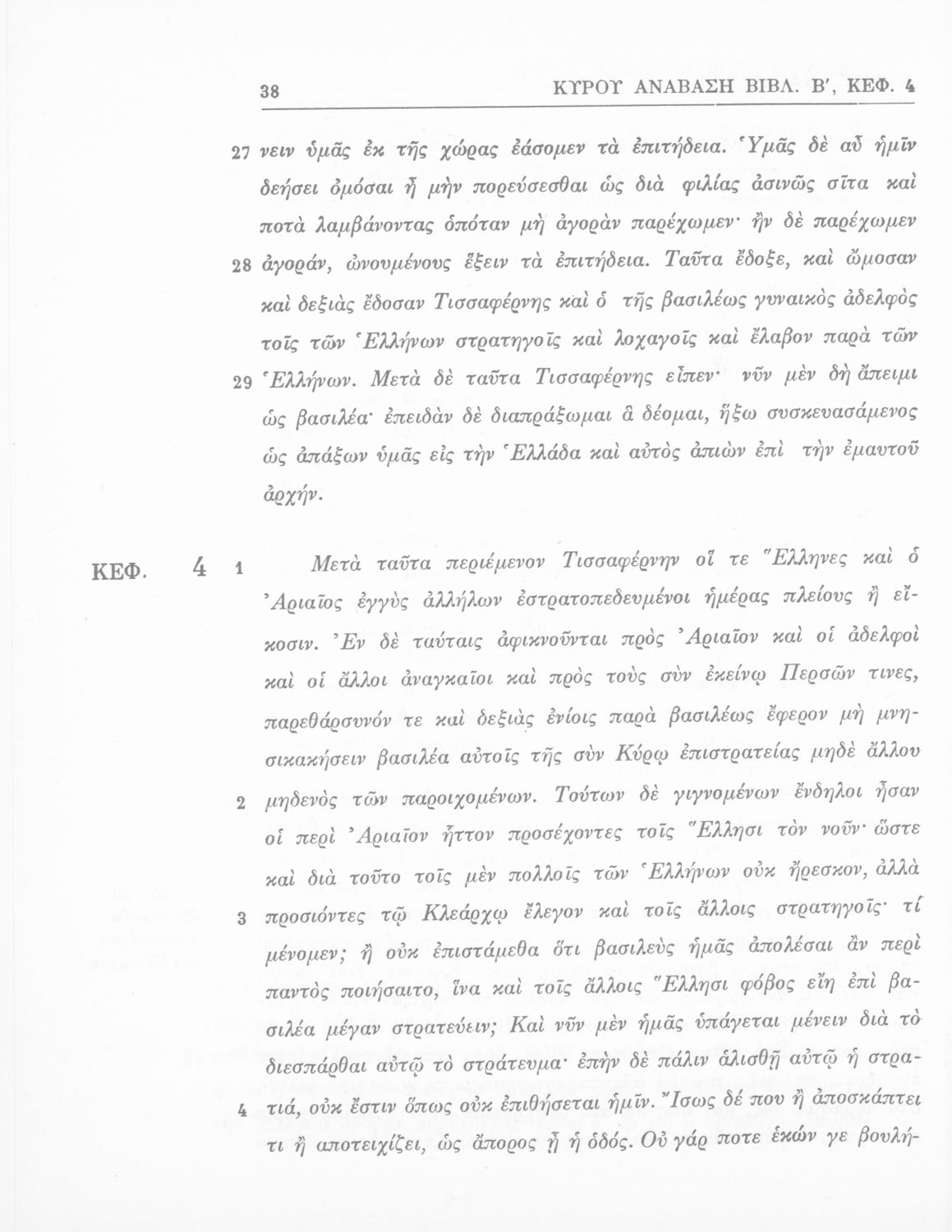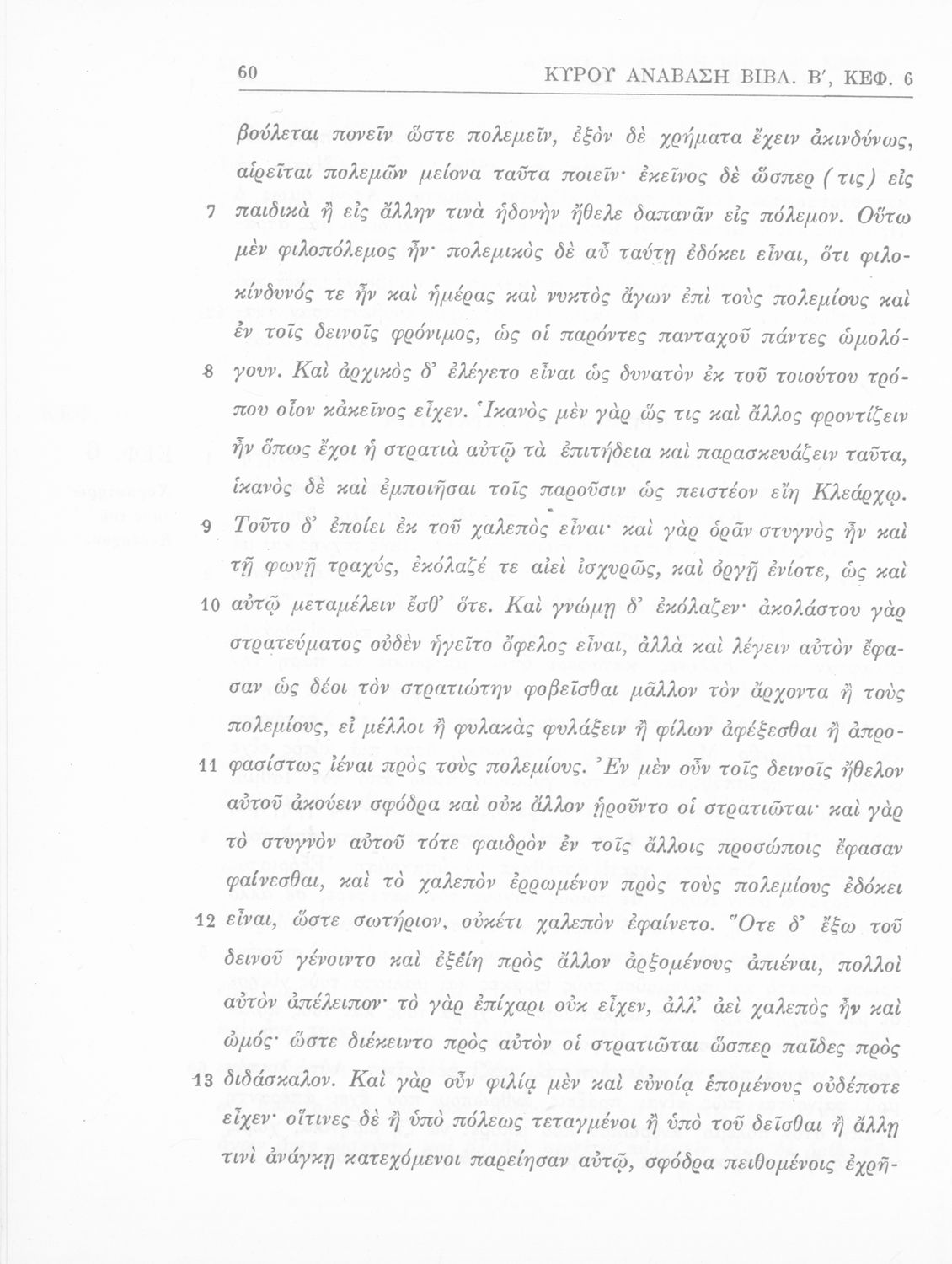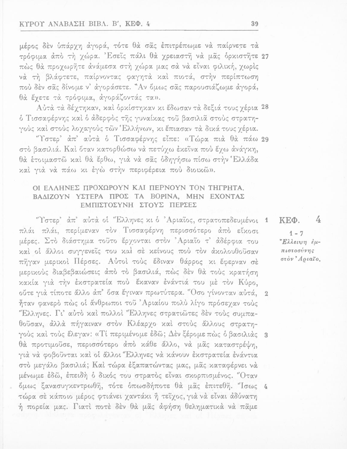 Σχολικό εγχειρίδιο της Γ' Ελληνικού Σχολείου και Αστικών Σχολείων για το μάθημα των Αρχαίων Ελληνικών. Το σύγγραμμα περιλαμβάνει κείμενα κατ΄ επιλογή από τα τέσσερα τελευταία βιβλία του έργου Κύρου Ανάβασις. ...