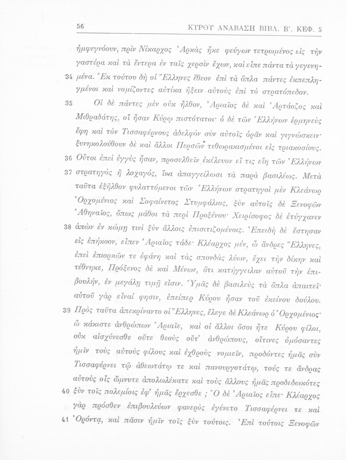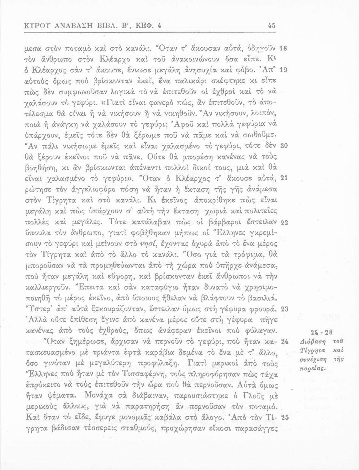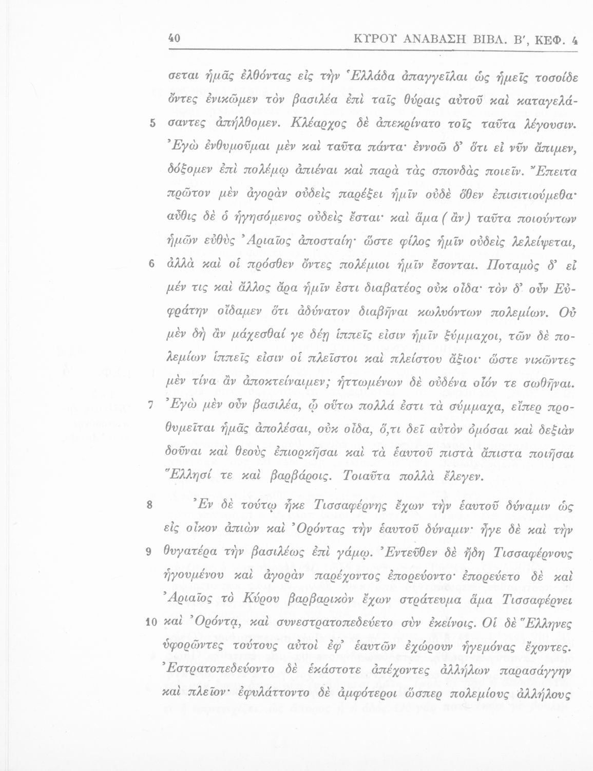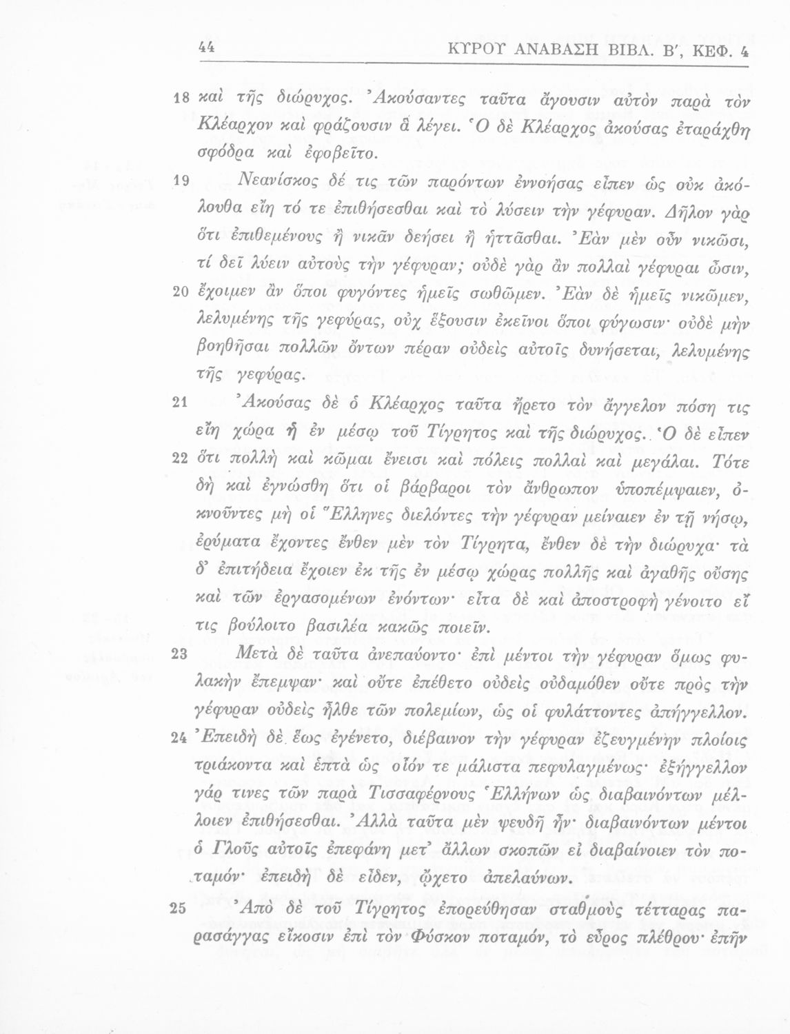 Σχολικό εγχειρίδιο της Γ' Ελληνικού Σχολείου και Αστικών Σχολείων για το μάθημα των Αρχαίων Ελληνικών. Το σύγγραμμα περιλαμβάνει κείμενα κατ΄ επιλογή από τα τέσσερα τελευταία βιβλία του έργου Κύρου Ανάβασις. ...