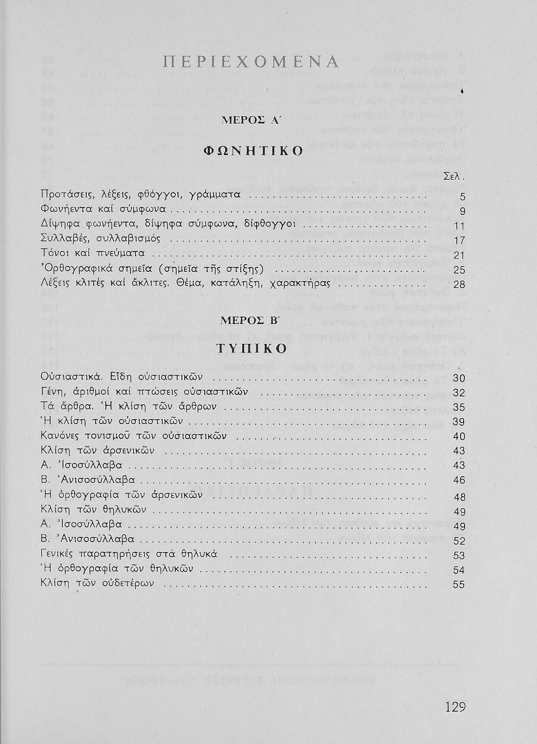 Σχολικό εγχειρίδιο Γ΄ και Δ΄ Δημοτικού που περιλαμβάνει τους κανόνες γραμματικής και τη δομή της νέας ελληνικής και είναι χωρισμένο στο φωνητικό, τυπικό και παραγωγικό μέρος.