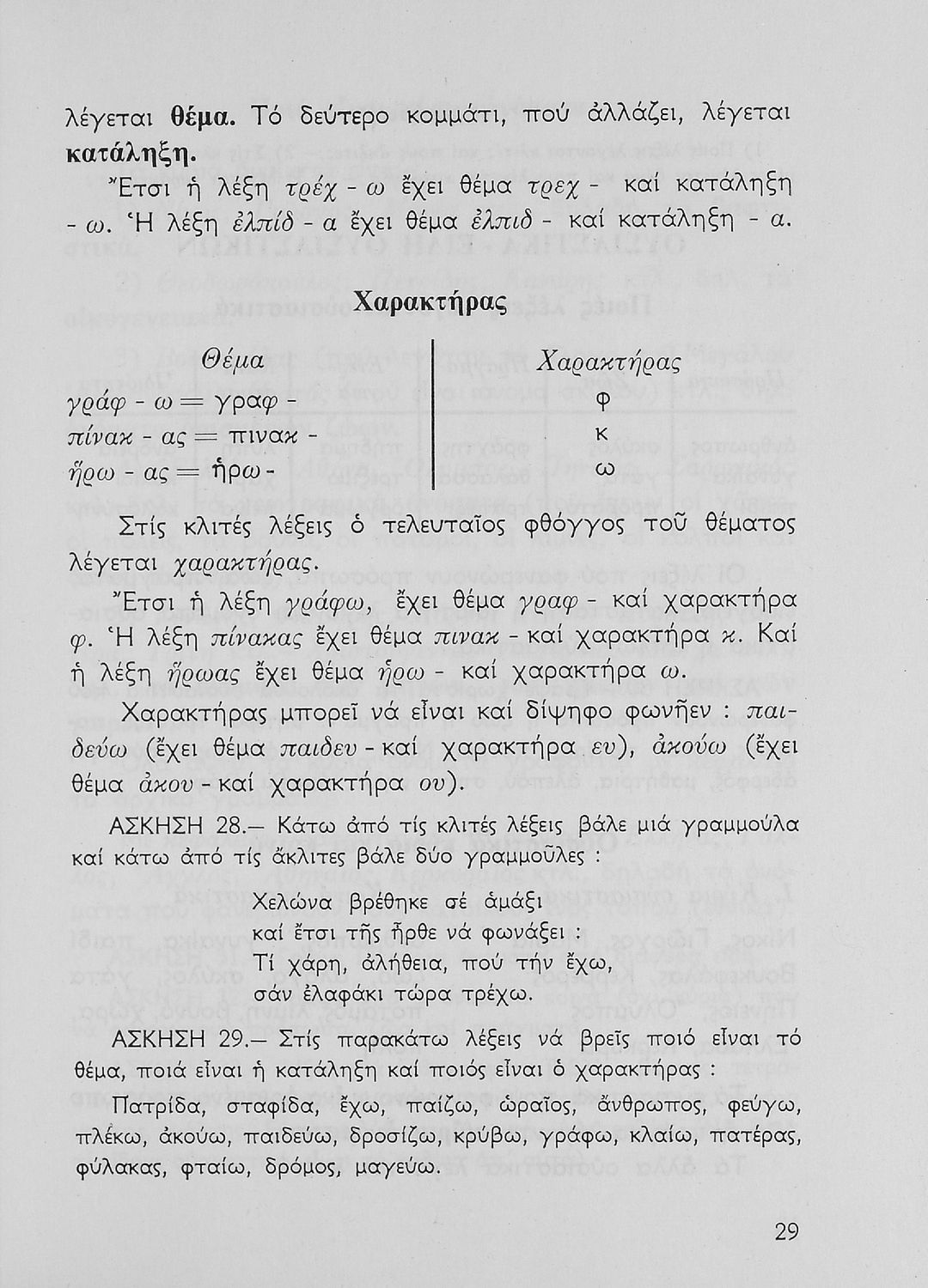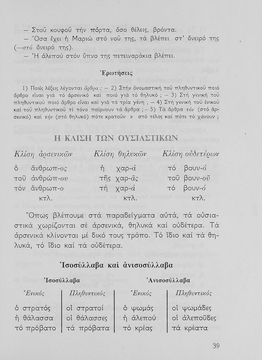Σχολικό εγχειρίδιο Γλώσσας Δ΄ Δημοτικού που περιλαμβάνει τους κανόνες γραμματικής και τη δομή της νέας ελληνικής και είναι χωρισμένο στο φωνητικό, τυπικό και παραγωγικό μέρος.