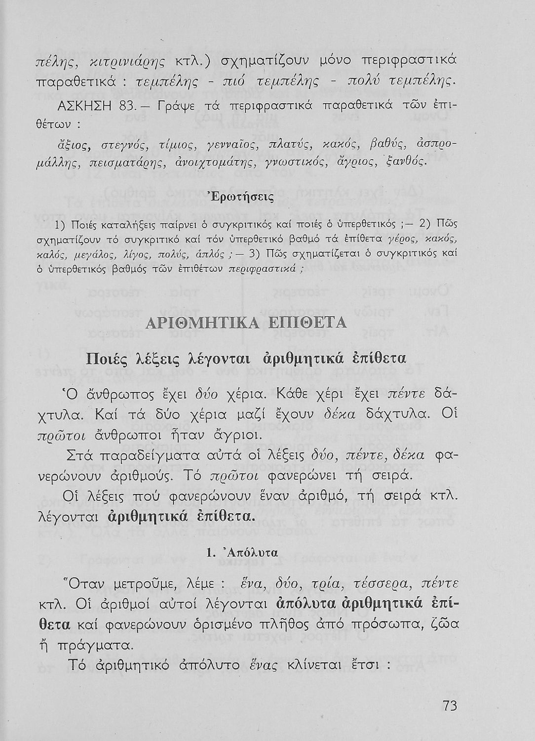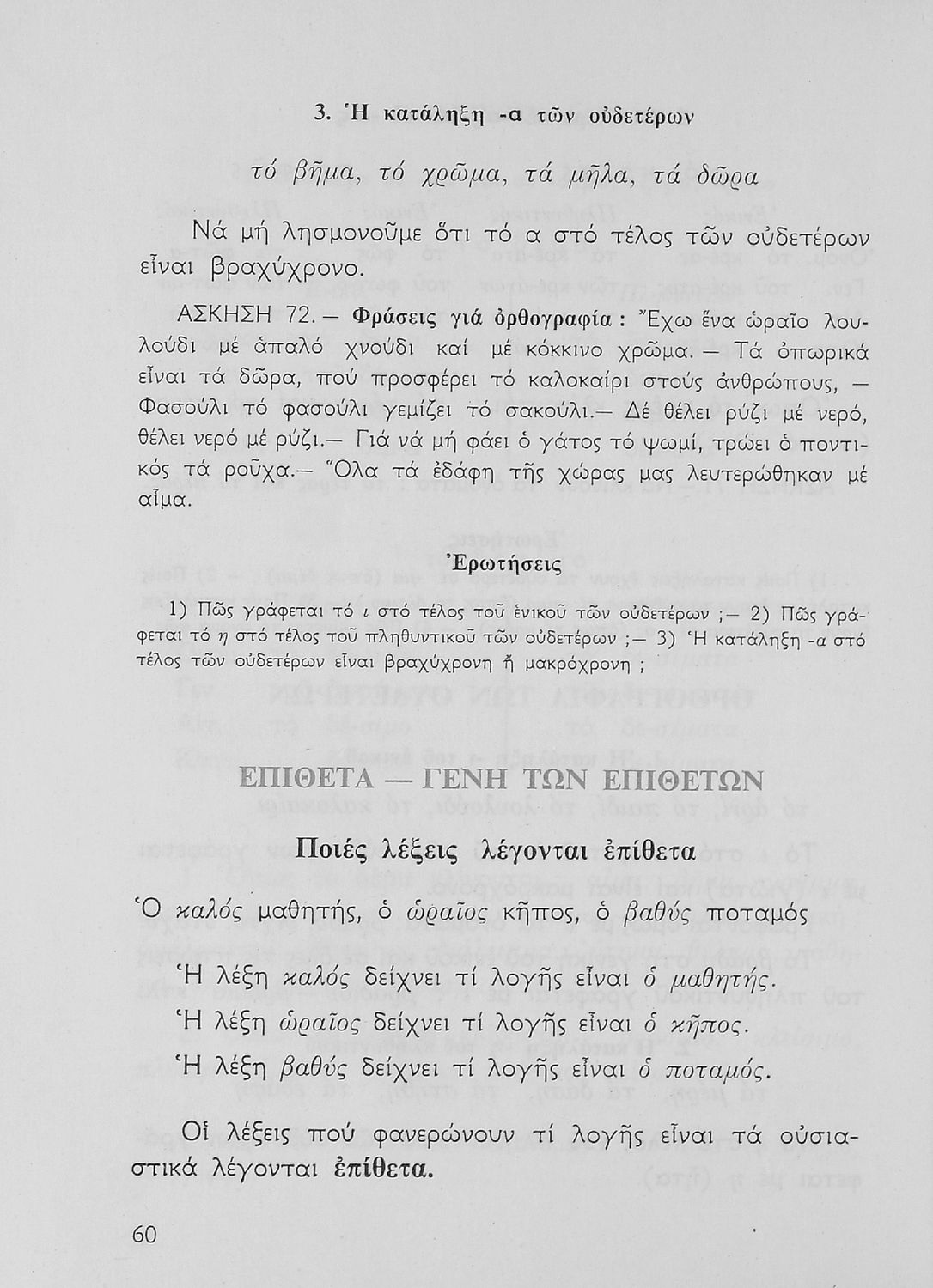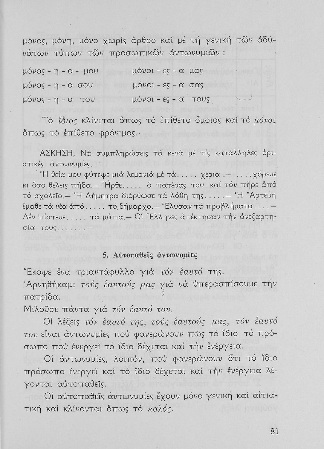 Σχολικό εγχειρίδιο Γλώσσας Δ΄ Δημοτικού που περιλαμβάνει τους κανόνες γραμματικής και τη δομή της νέας ελληνικής και είναι χωρισμένο στο φωνητικό, τυπικό και παραγωγικό μέρος.