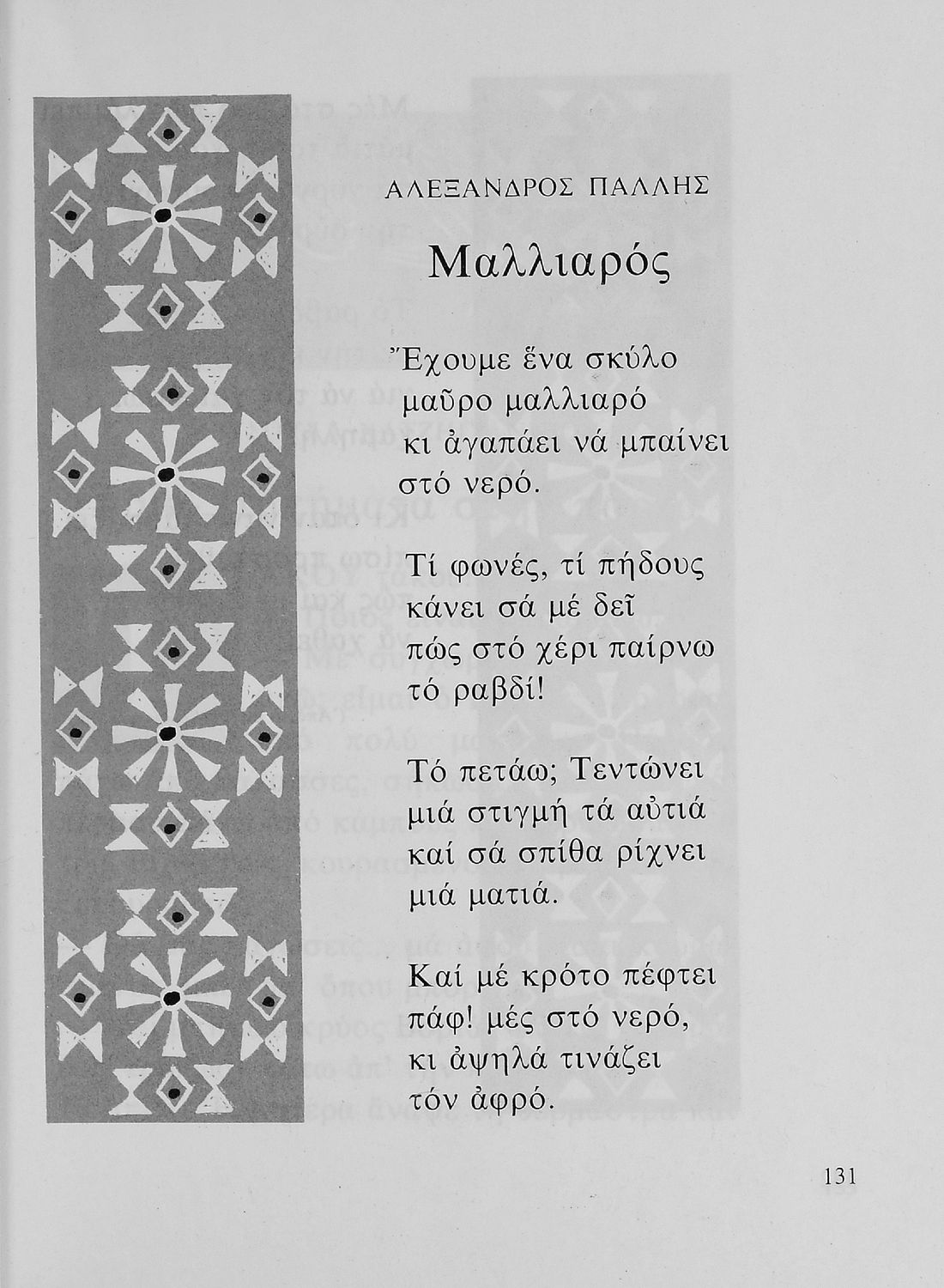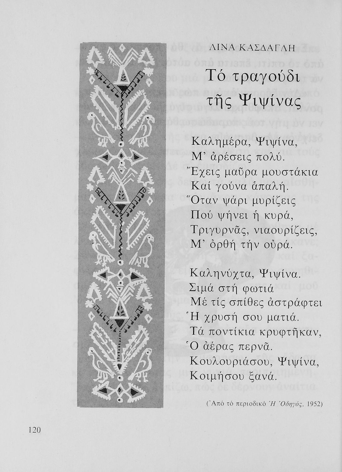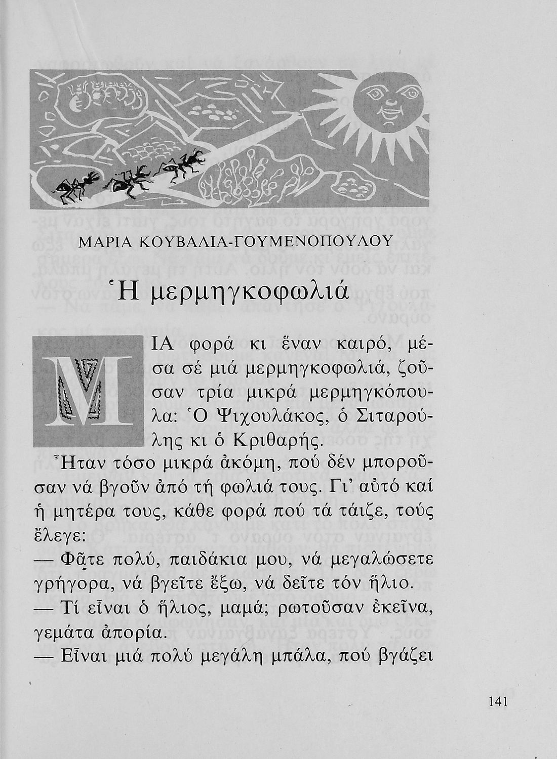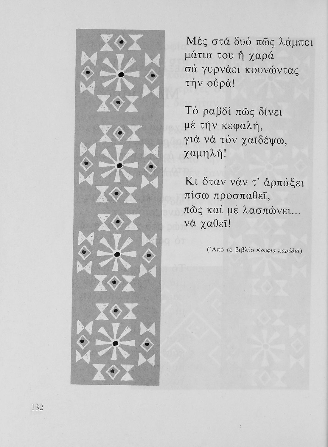 Αναγνωστικό που περιλαμβάνει πεζά και ποιήματα της νέας ελληνικής λογοτεχνίας για τους μαθητές του Δημοτικού. Το βιβλίο είναι αφιερωμένο στη μνήμη του Ζαχαρία Παπαντωνίου και αναδημοσιεύει αρκετά κείμενα από τα αναγνωστικά των εκπαιδευτικών μεταρρυθμίσεων του Ελευθερίου Βενιζέλου.