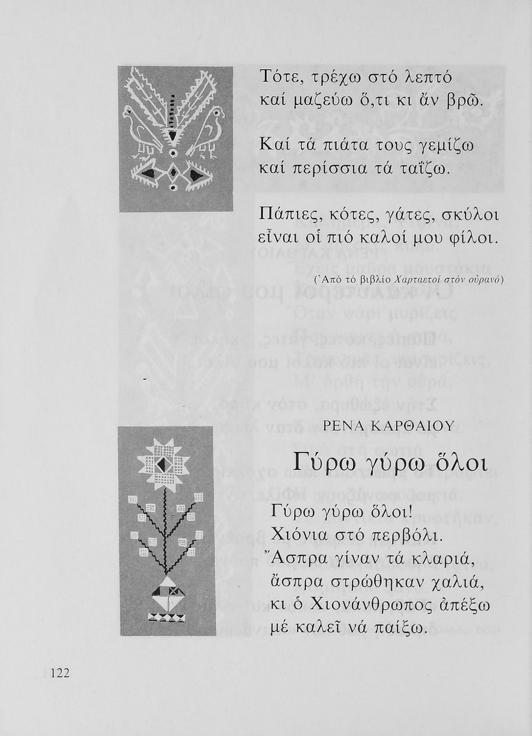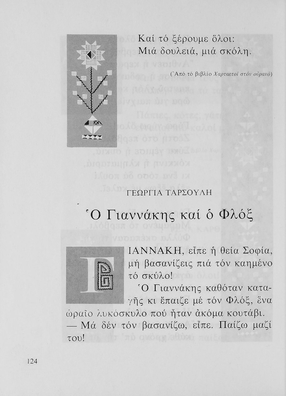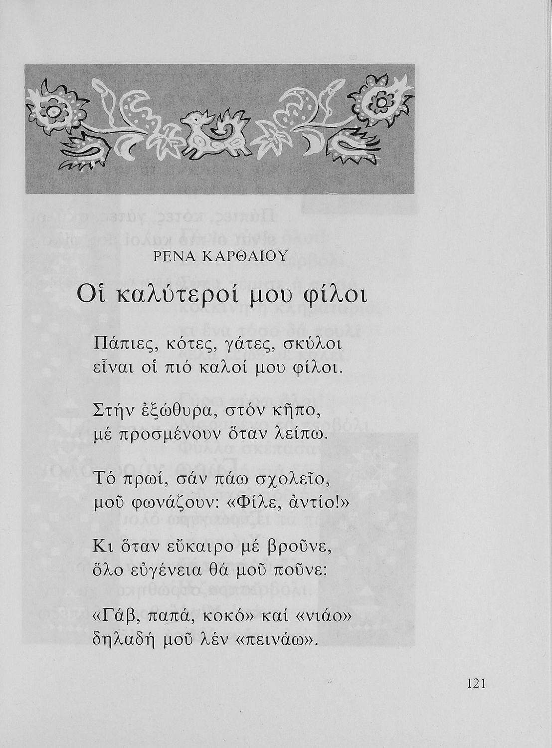 Αναγνωστικό για τους μαθητές της Γ΄ και Δ΄ Δημοτικού που περιλαμβάνει με πεζά και ποιήματα της νέας ελληνικής λογοτεχνίας εμπνευσμένα από την καθημερινότητα των παιδιών και των οικογενειών τους, την ελληνική ...