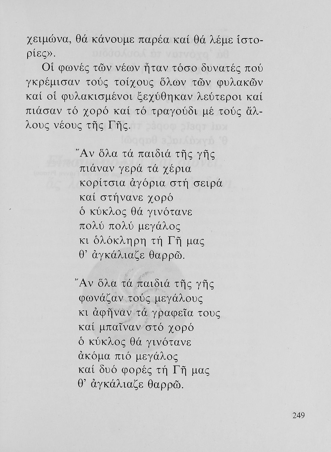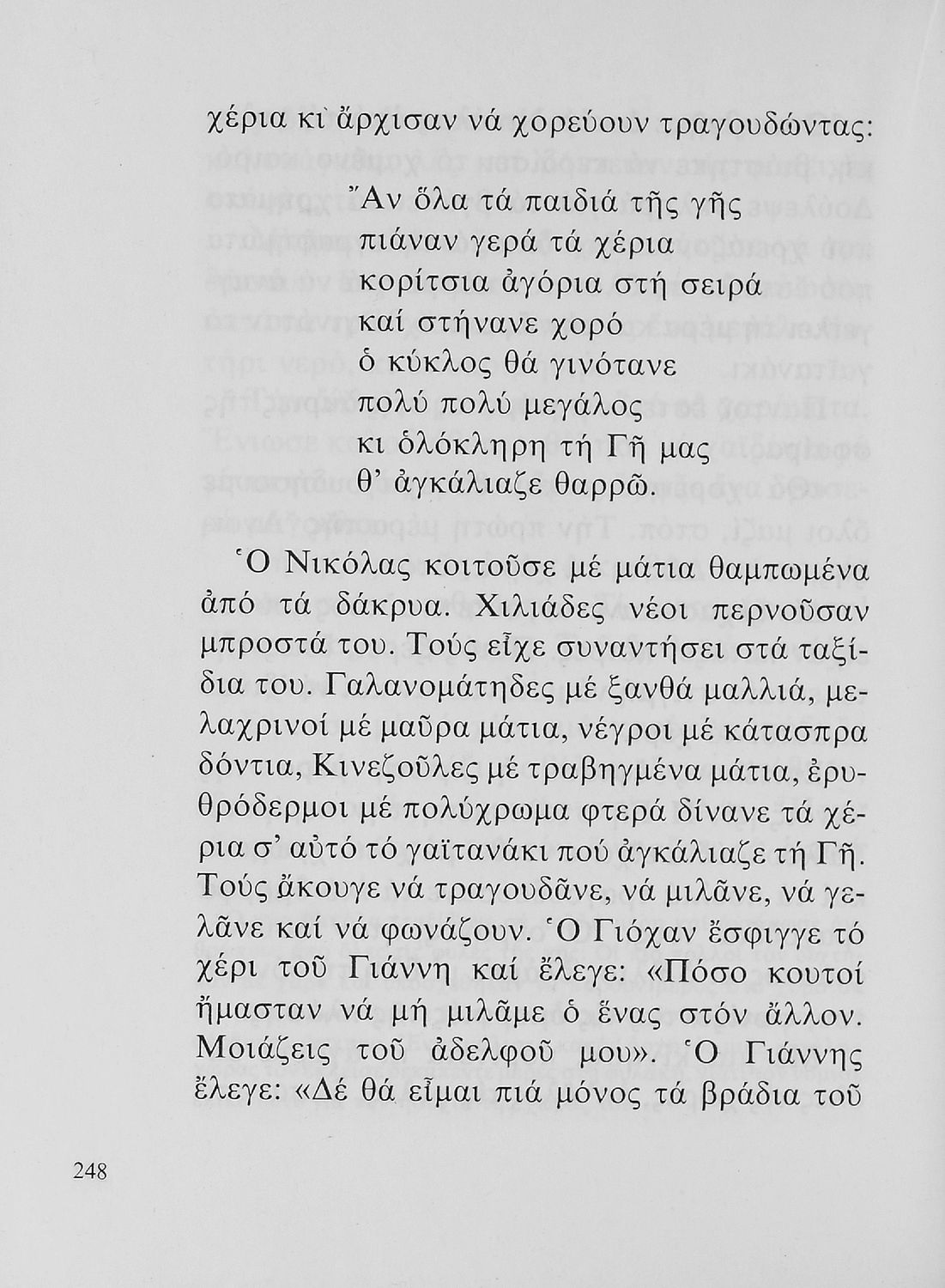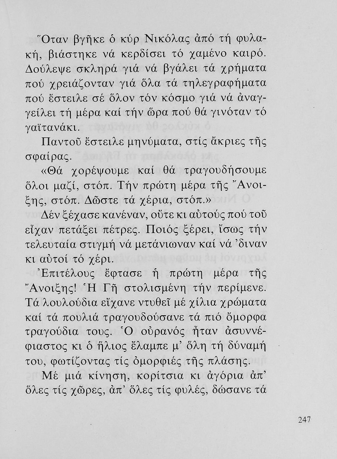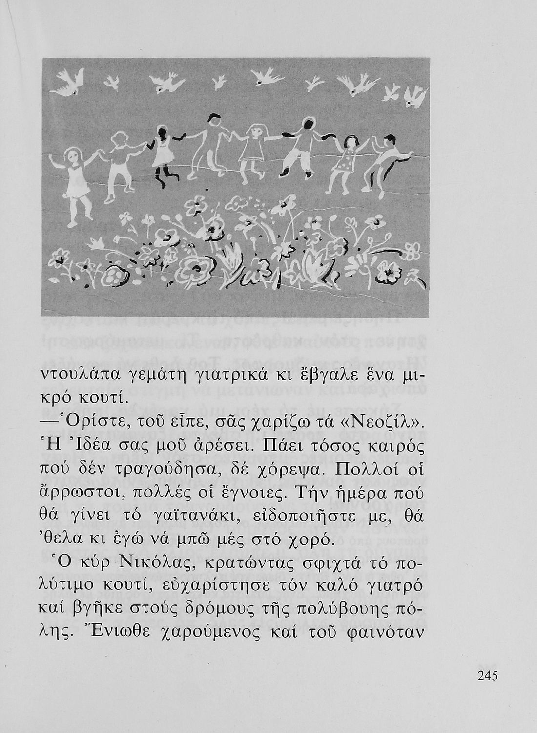 Αναγνωστικό που περιλαμβάνει πεζά και ποιήματα της νέας ελληνικής λογοτεχνίας για τους μαθητές του Δημοτικού. Το βιβλίο είναι αφιερωμένο στη μνήμη του Ζαχαρία Παπαντωνίου και αναδημοσιεύει αρκετά κείμενα από τα αναγνωστικά των εκπαιδευτικών μεταρρυθμίσεων του Ελευθερίου Βενιζέλου.