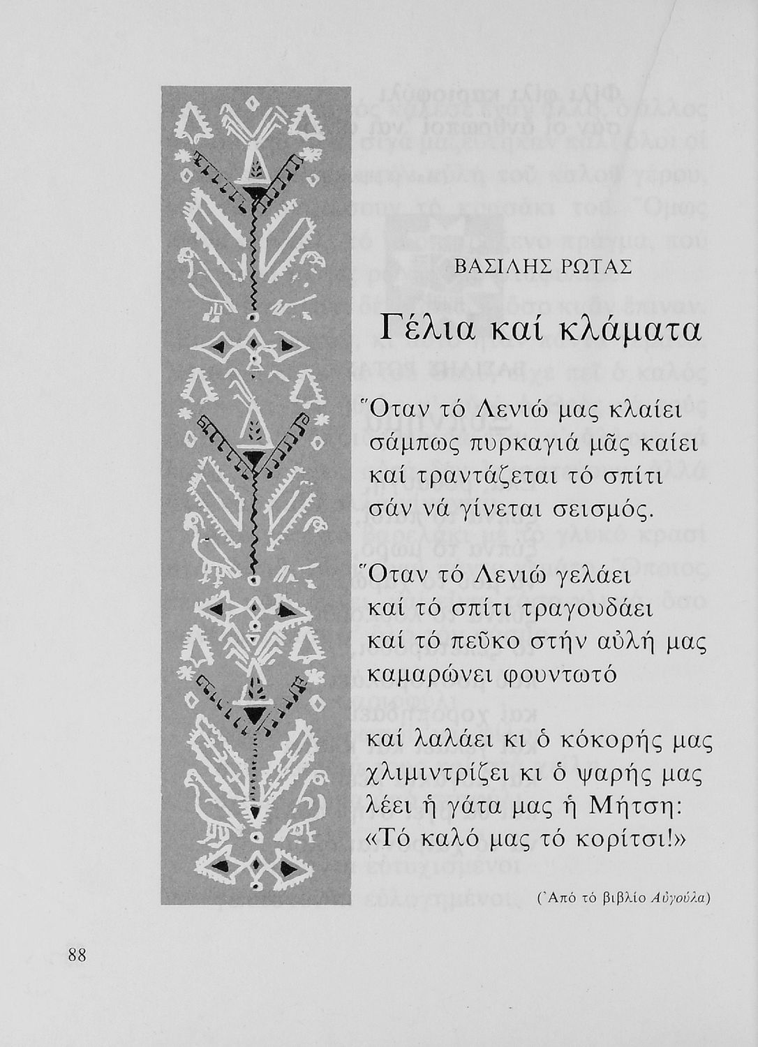Αναγνωστικό για τους μαθητές της Γ΄ και Δ΄ Δημοτικού που περιλαμβάνει με πεζά και ποιήματα της νέας ελληνικής λογοτεχνίας εμπνευσμένα από την καθημερινότητα των παιδιών και των οικογενειών τους, την ελληνική ...