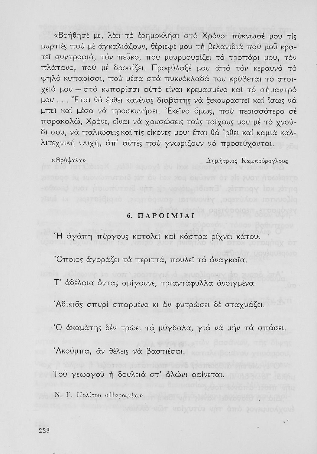 Σχολικό εγχειρίδιο Νέων Ελληνικών ΣΤ΄ Γυμνασίου και Λυκείου που περιλαμβάνει κείμενα Ελλήνων και ξένων συγγραφέων με θέματα από την σύγχρονη ελληνική ιστορία και την οικογενειακή και θρησκευτική ζωή, και ...
