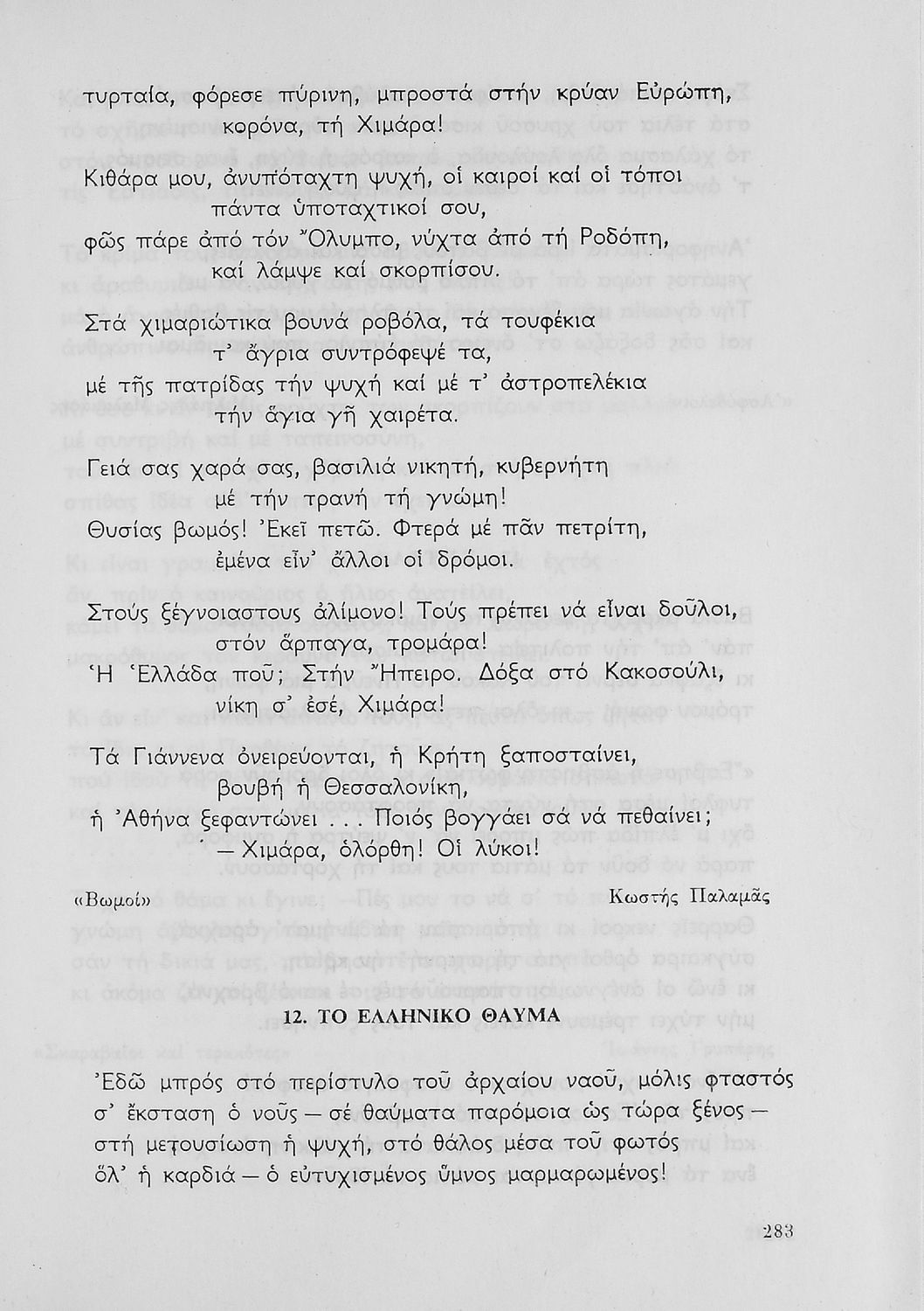 Σχετιζόμενοι όροι:  Παλαμάς, Σεφέρης, Καβάφης, Σικελιανός