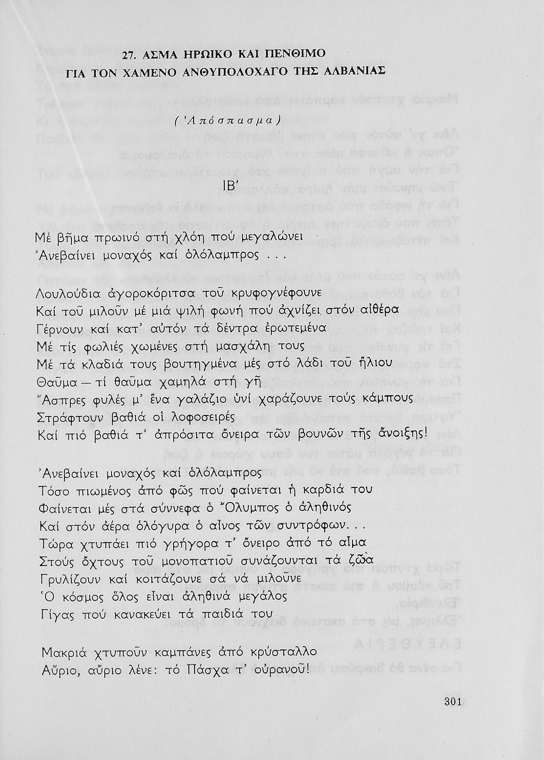 Σχολικό εγχειρίδιο Νέων Ελληνικών για τις Α΄ και Β΄ Λυκείου που περιέχει πεζά και ποιήματα Ελλήνων και ξένων συγγραφέων εμπνευσμένα από την σύγχρονη ελληνική ιστορία, τη θρησκευτική παράδοση και την ελληνική ...