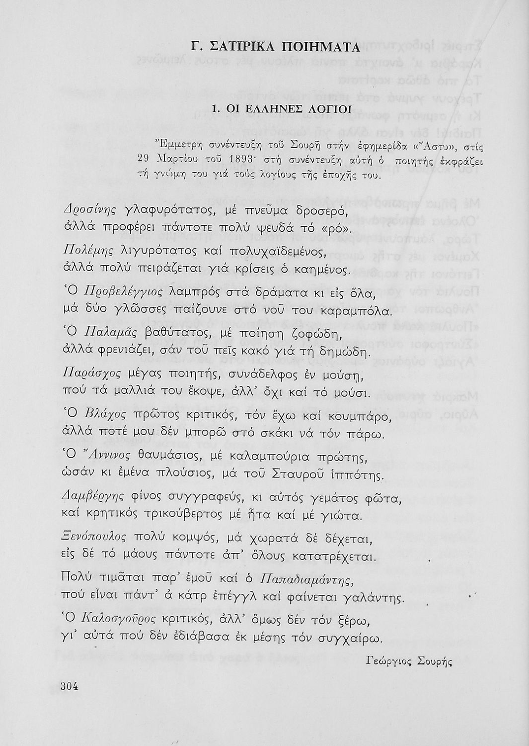 Σχετιζόμενοι όροι:  Λάμπρος, Παπάγος, Σουρής, Έλιοτ, Δάντε