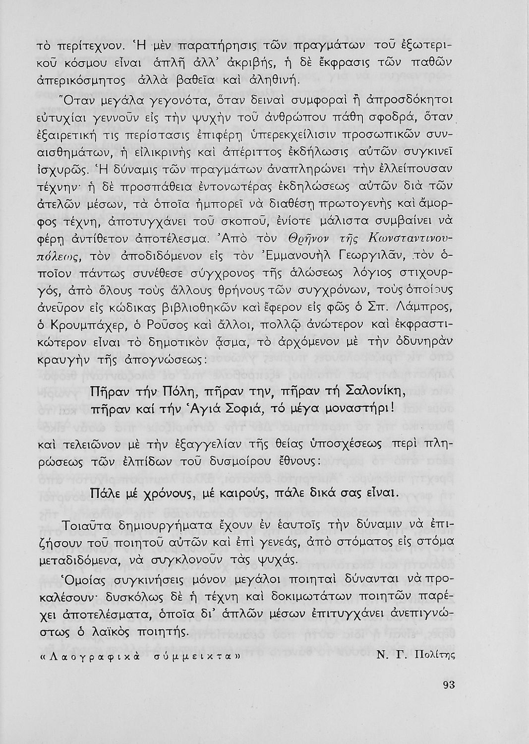 Σχολικό εγχειρίδιο Νέων Ελληνικών Γ' Ελληνικού Σχολείου που περιλαμβάνει ποιήματα και πεζά Ελλήνων συγγραφέων και δημοτικά τραγούδια εμπνευσμένα από την σύγχρονη ελληνική ιστορία, τη βυζαντινή ιστορία, την ...