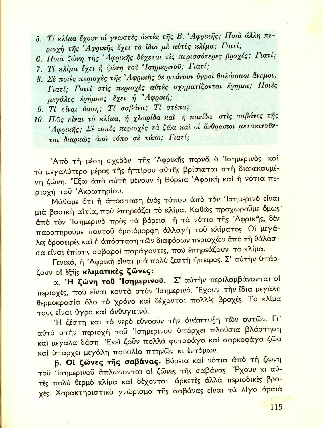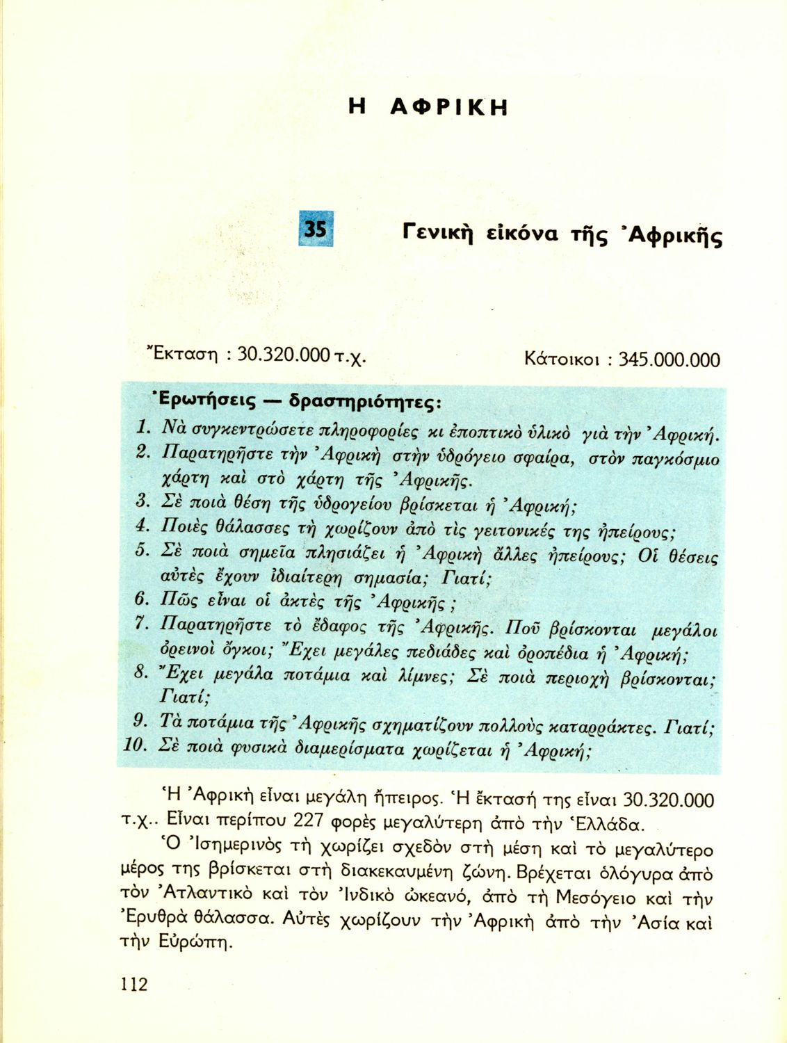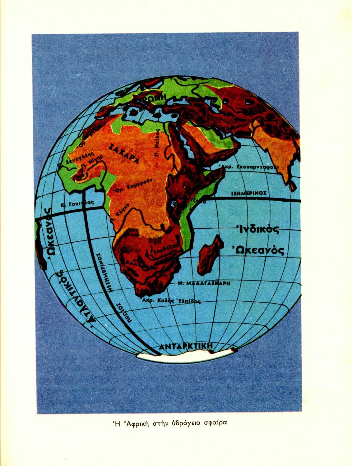 Σχολικό εγχειρίδιο Γεωγραφίας Ε΄ Δημοτικού που περιλαμβάνει στοιχεία φυσικής, μαθηματικής και πολιτικής γεωγραφίας και εστιάζει στη γεωμορφολογική και γεωπολιτική κατάσταση της Ασίας, της Αφρικής, της Αμερικής, Ανταρκτικής και της Ωκεανίας.
