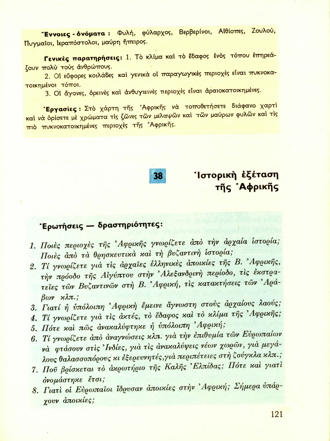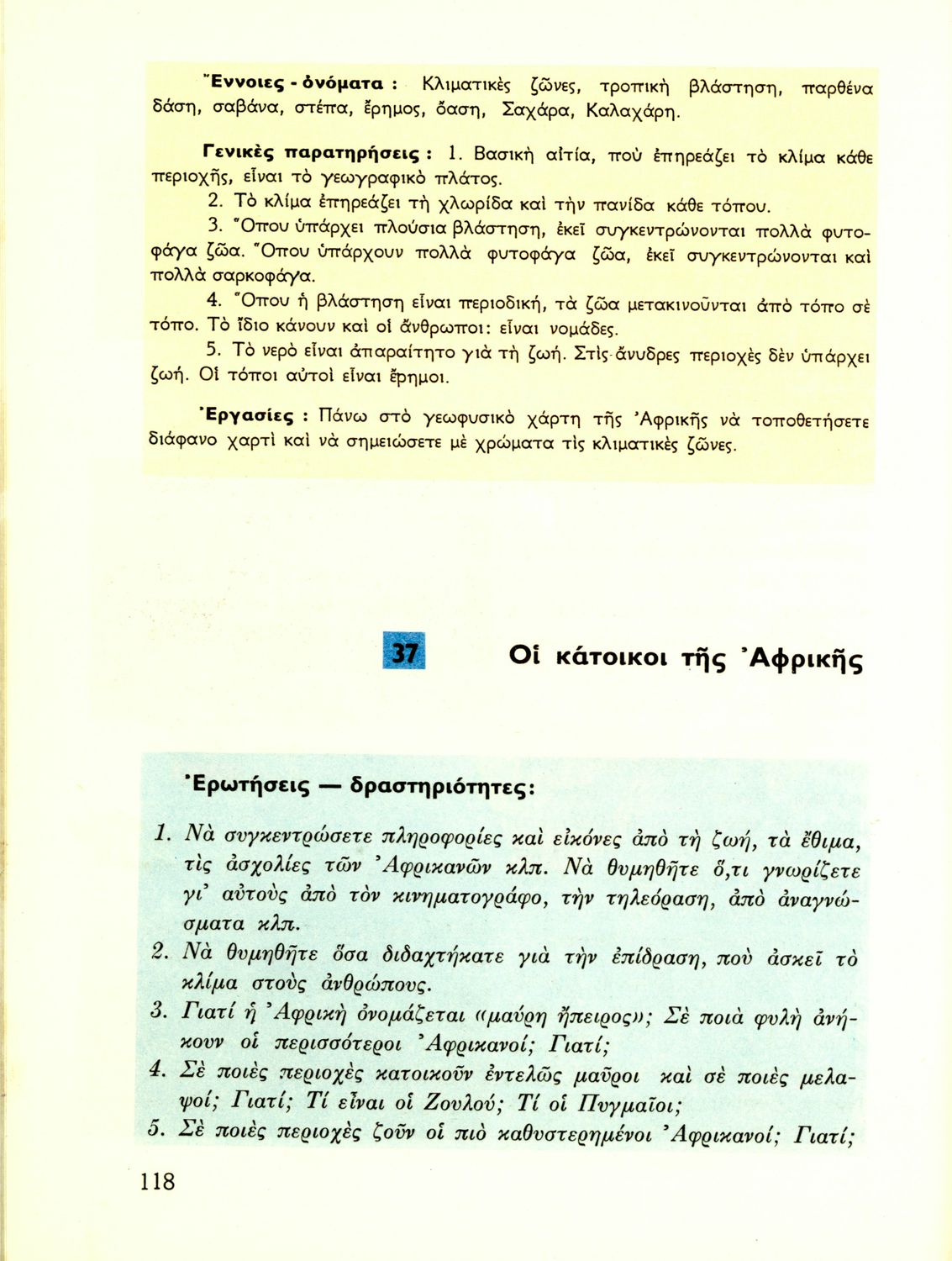 Βαθμίδα εκπαίδευσης: Πρωτοβάθμια Τάξη: Ε' Δημοτικού Μάθημα: Γεωγραφία Γλώσσα: Δημοτική Παρουσίαση περιεχομένου: Σχολικό εγχειρίδιο Γεωγραφίας Ε΄ Δημοτικού που περιλαμβάνει στοιχεία φυσικής, μαθηματικής και πολιτικής γεωγραφίας και εστιάζει στη γεωμορφολογική και γεωπολιτική κατάσταση της Ασίας, της Αφρικής, της Αμερικής, Ανταρκτικής και της Ωκεανίας. |