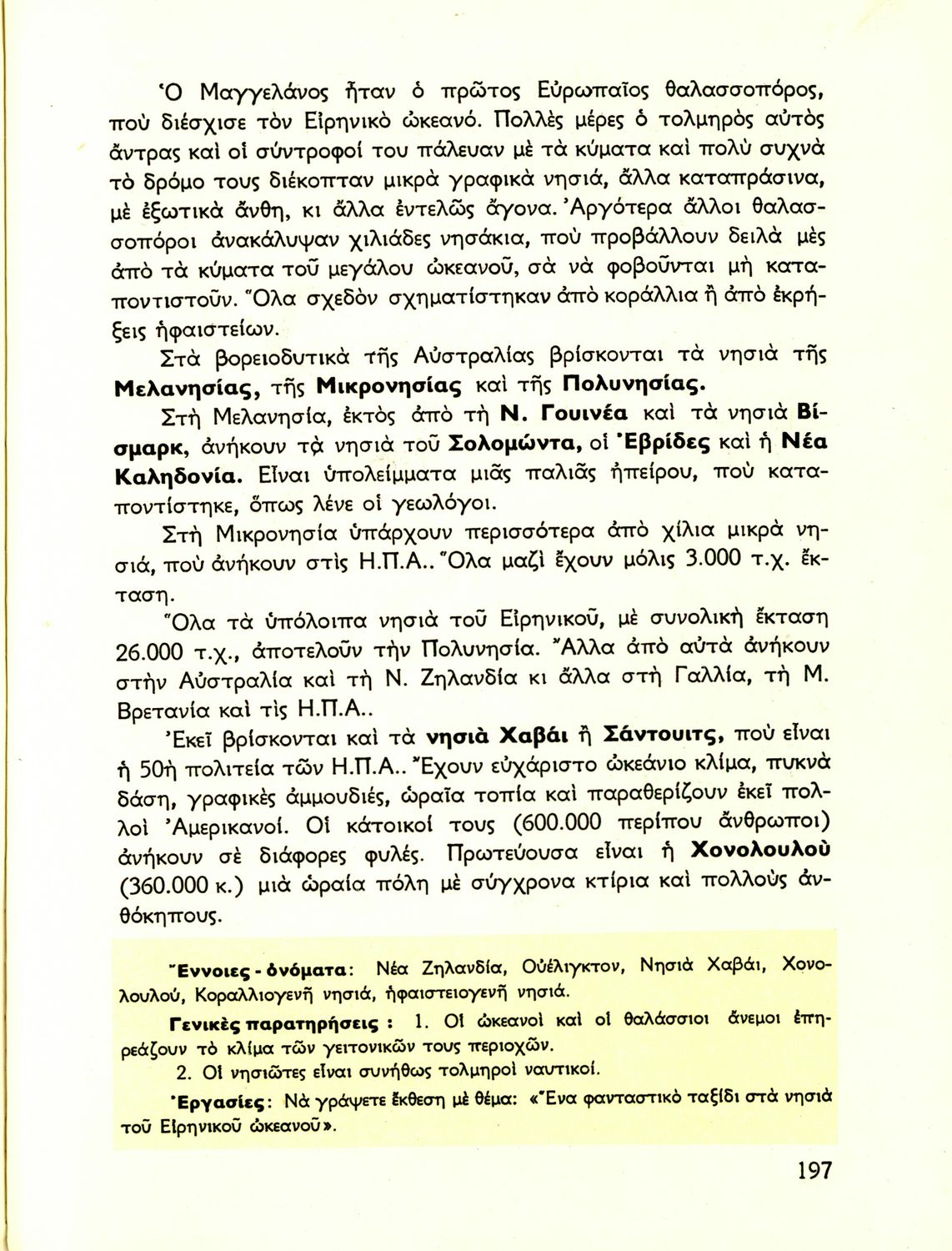 Σχολικό εγχειρίδιο Γεωγραφίας Ε΄ Δημοτικού που περιλαμβάνει στοιχεία φυσικής, μαθηματικής και πολιτικής γεωγραφίας και εστιάζει στη γεωμορφολογική και γεωπολιτική κατάσταση της Ασίας, της Αφρικής, της Αμερικής, Ανταρκτικής και της Ωκεανίας.