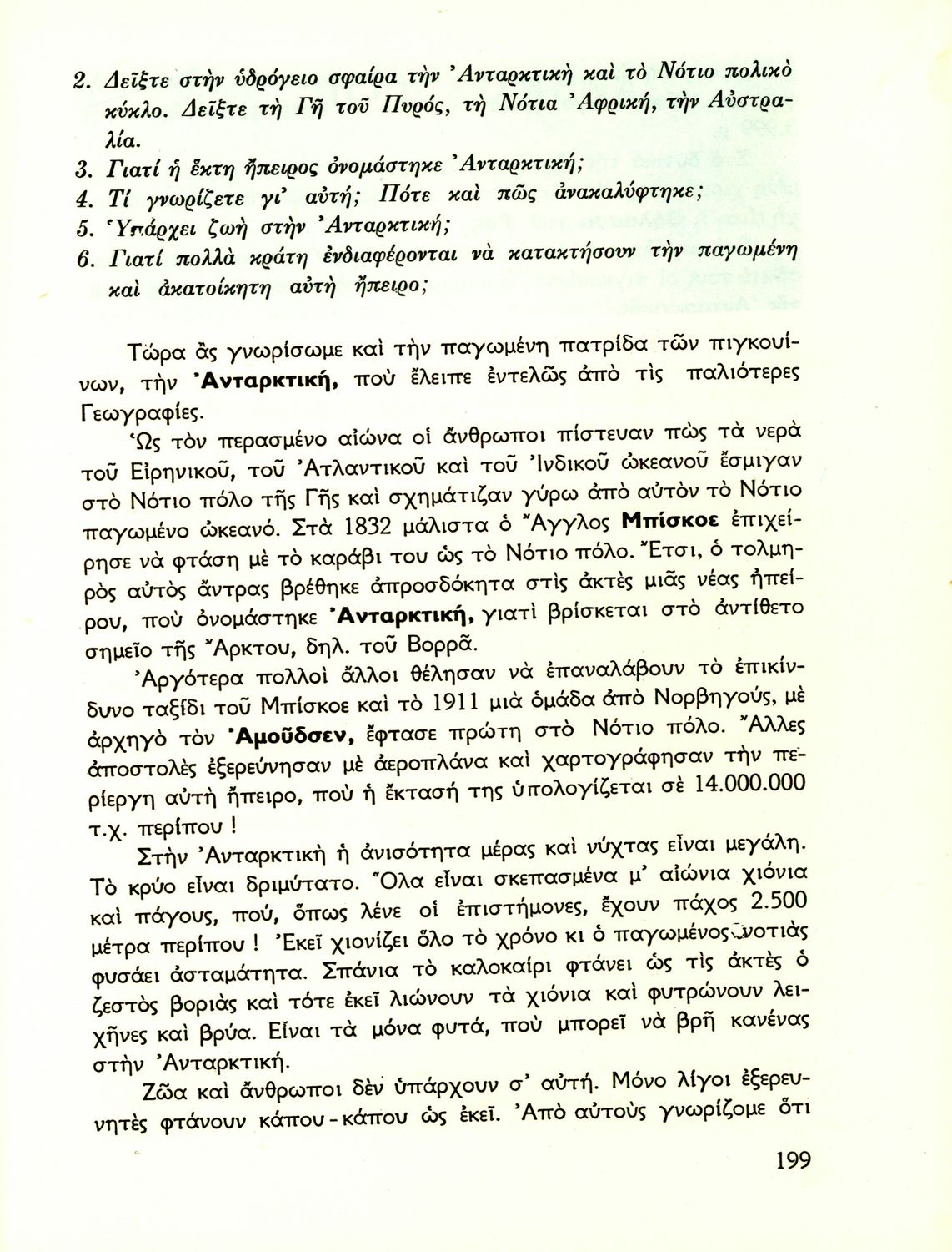 Σχολικό εγχειρίδιο Γεωγραφίας Ε΄ Δημοτικού που περιλαμβάνει στοιχεία φυσικής, μαθηματικής και πολιτικής γεωγραφίας και εστιάζει στη γεωμορφολογική και γεωπολιτική κατάσταση της Ασίας, της Αφρικής, της Αμερικής, Ανταρκτικής και της Ωκεανίας.