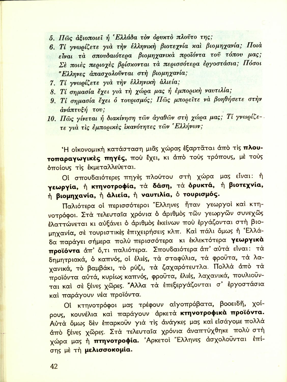 Σχολικό εγχειρίδιο Γεωγραφίας που εξετάζει ενδεικτικές χώρες και περιοχές από τις πέντε ηπείρους εκτός της Ευρώπης από γεωφυσική και οικονομική πλευρά. Φέρει το σύμβολο της δικτατορίας.