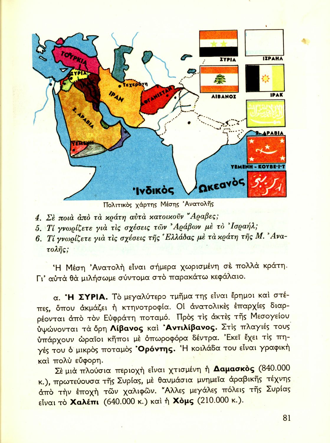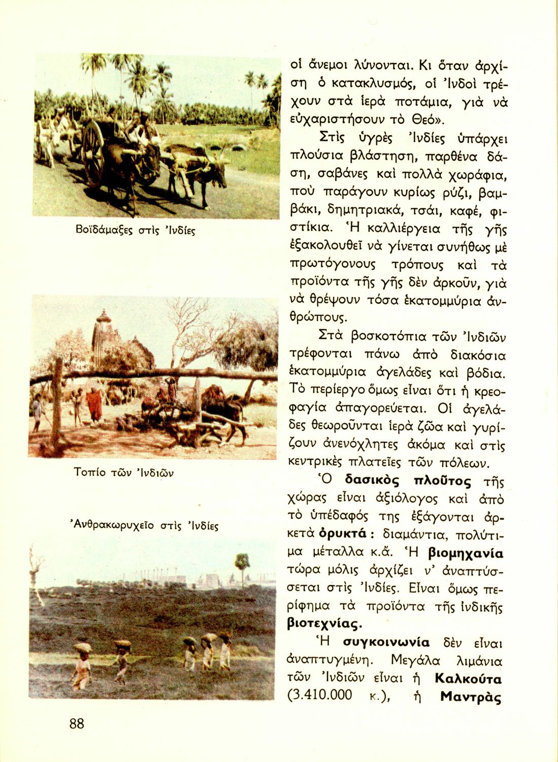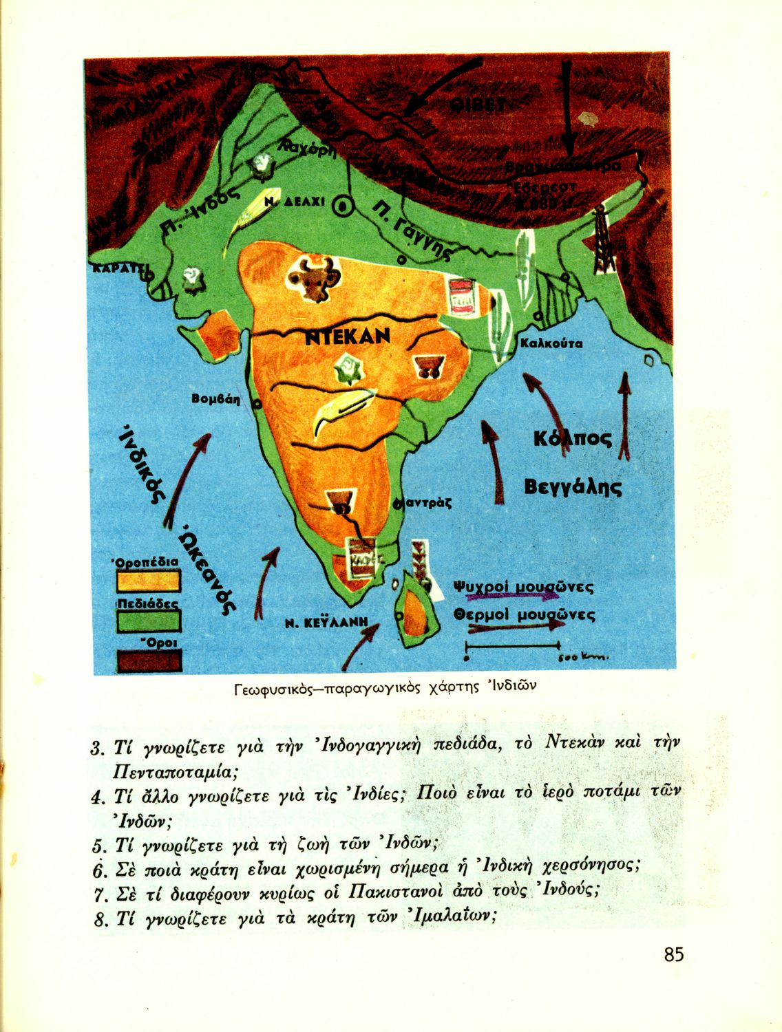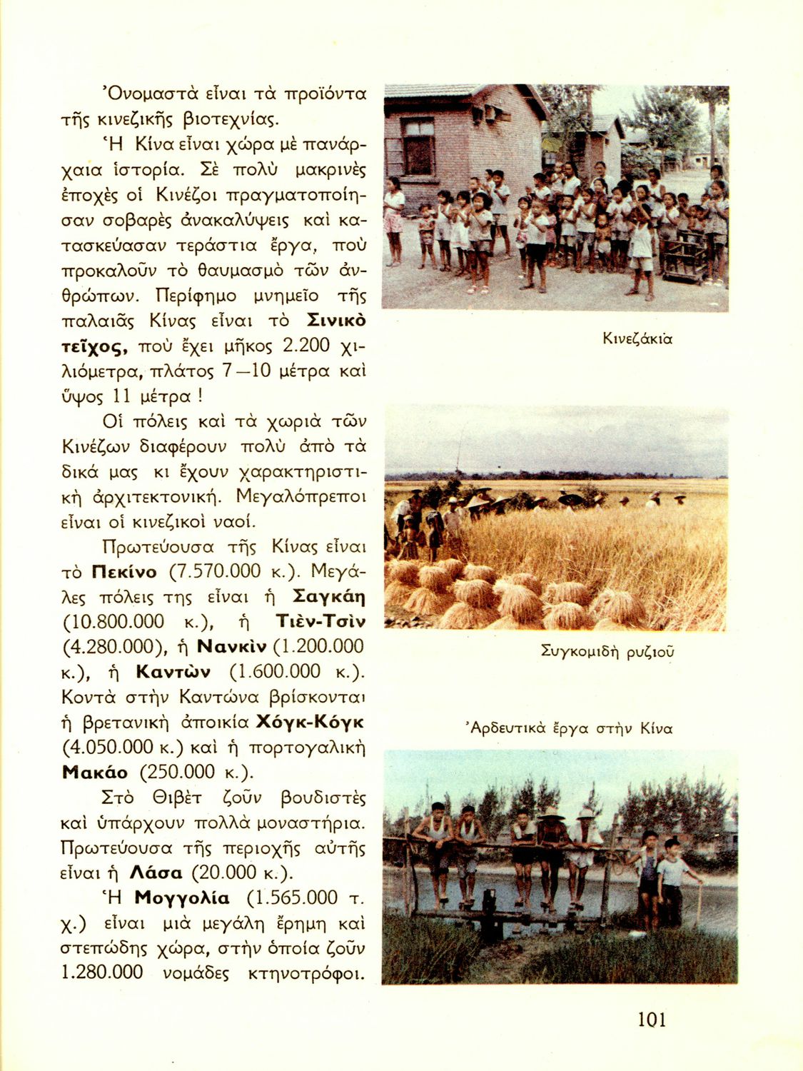 Σχολικό εγχειρίδιο Γεωγραφίας που εξετάζει ενδεικτικές χώρες και περιοχές από τις πέντε ηπείρους εκτός της Ευρώπης από γεωφυσική και οικονομική πλευρά. Φέρει το σύμβολο της δικτατορίας.