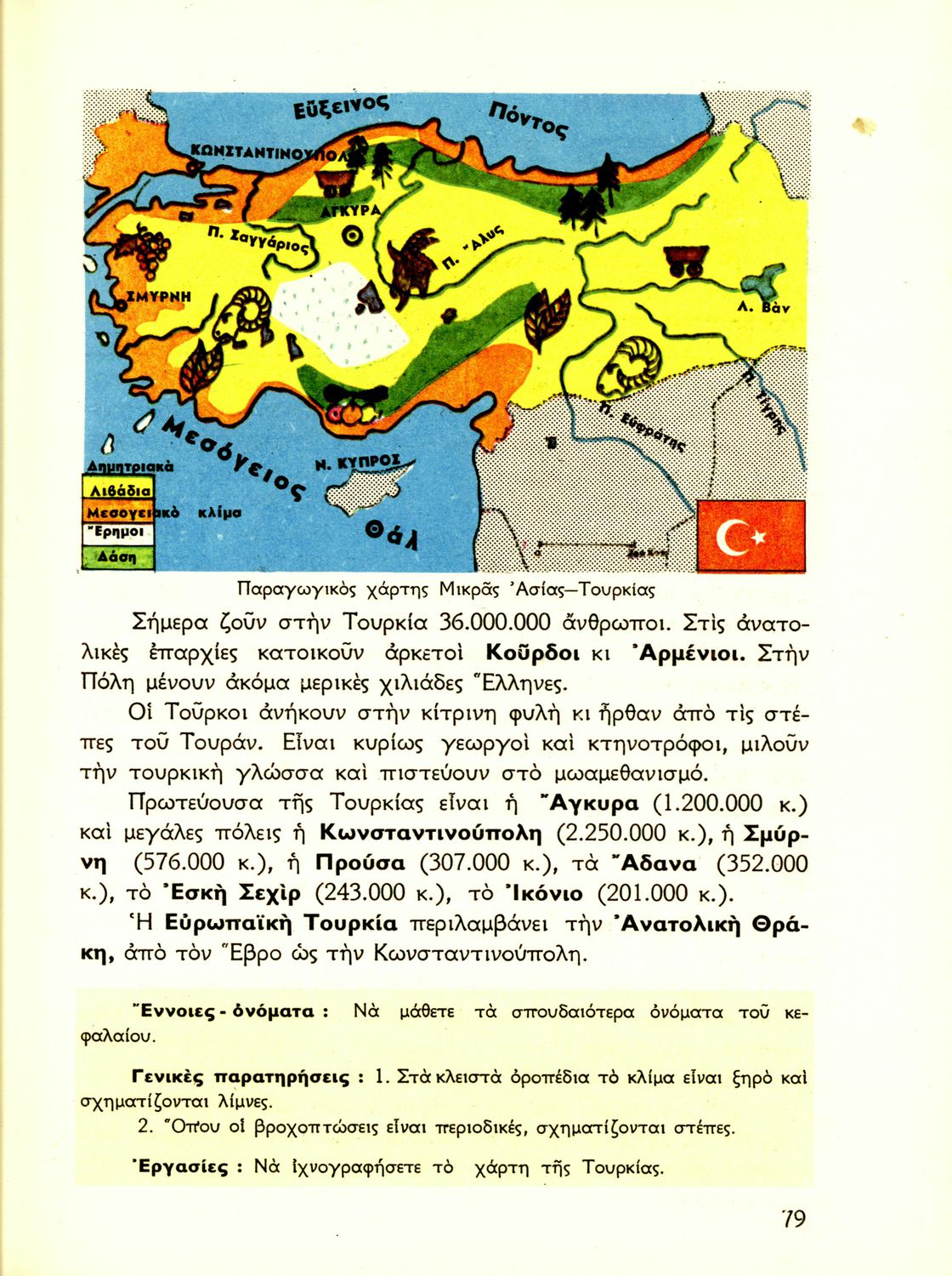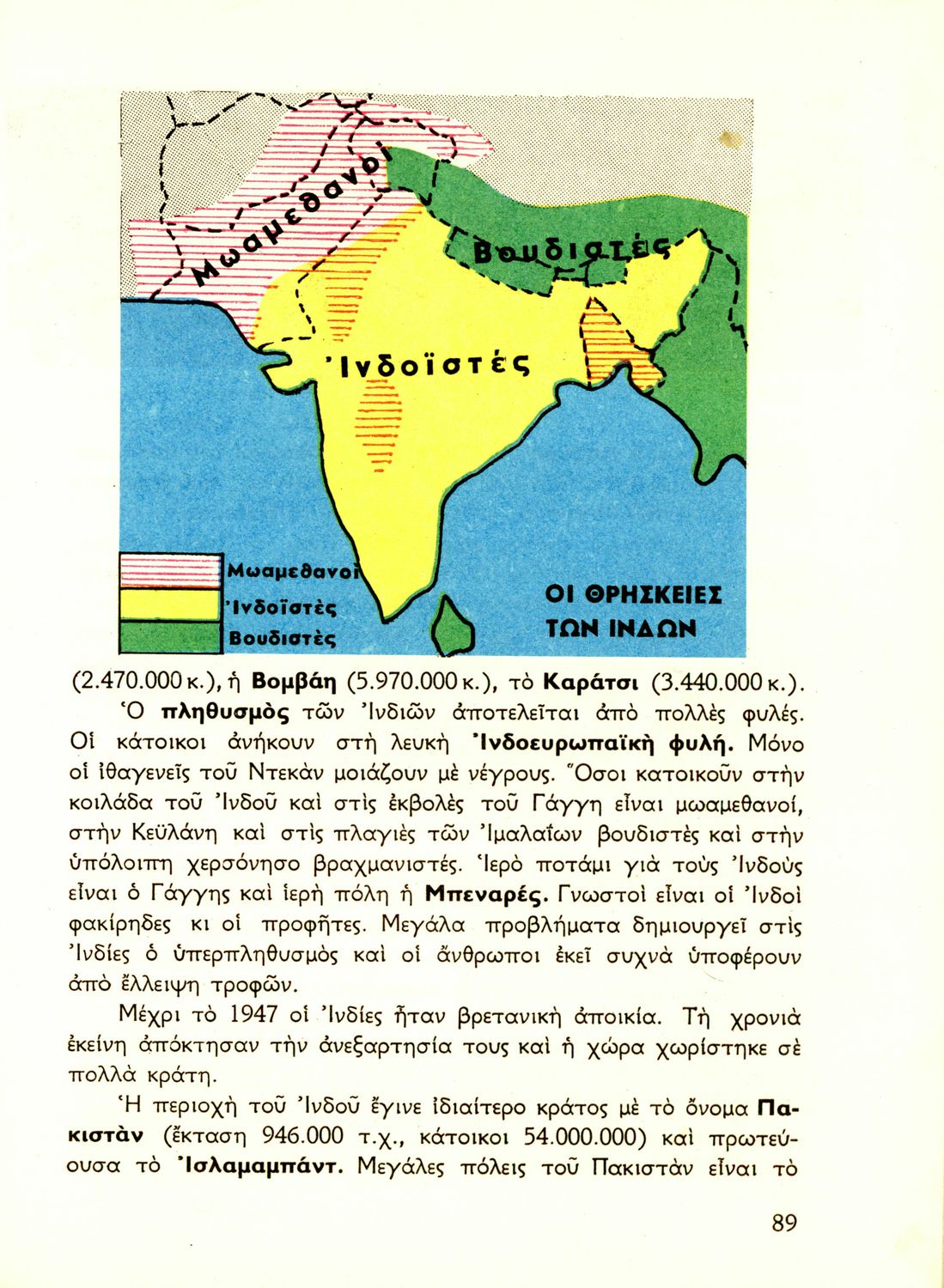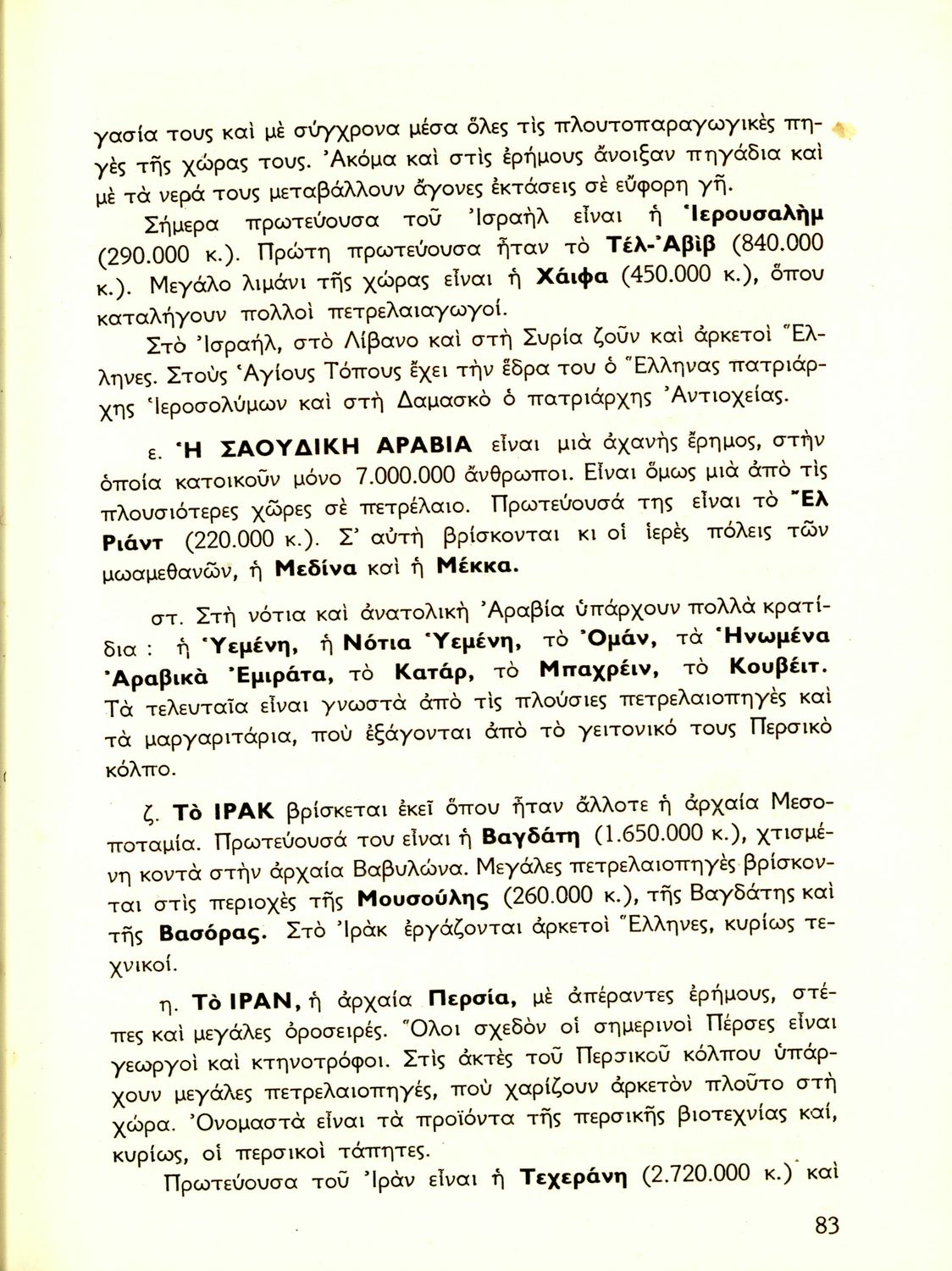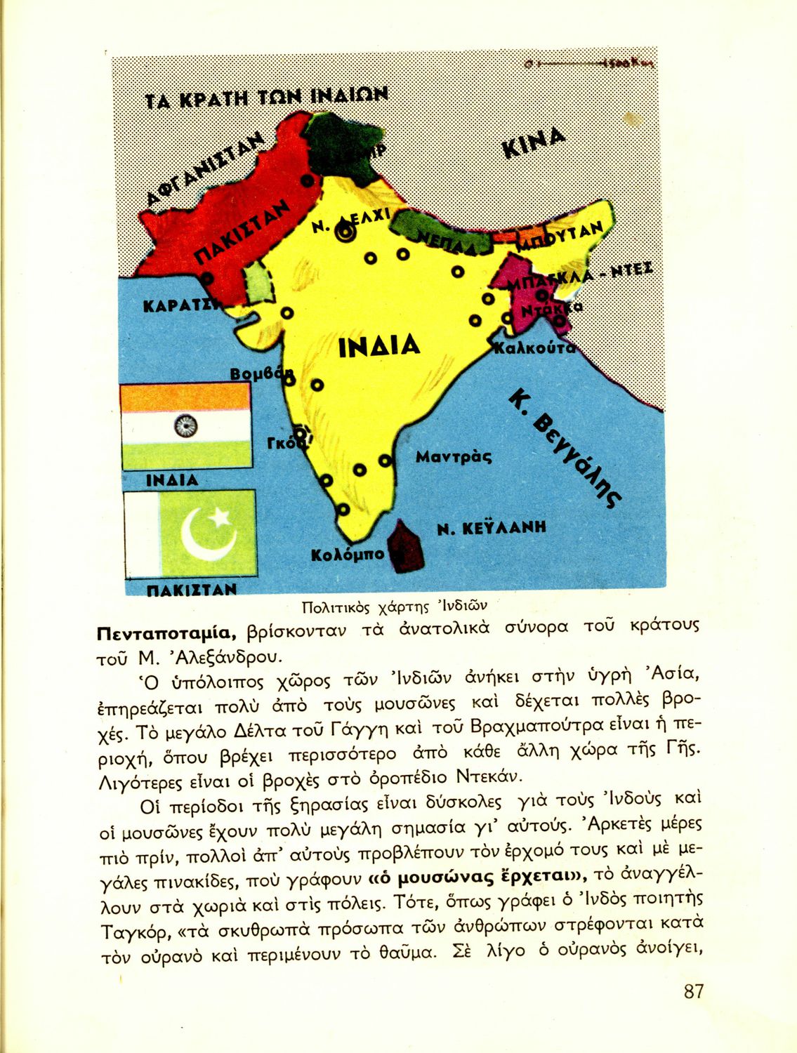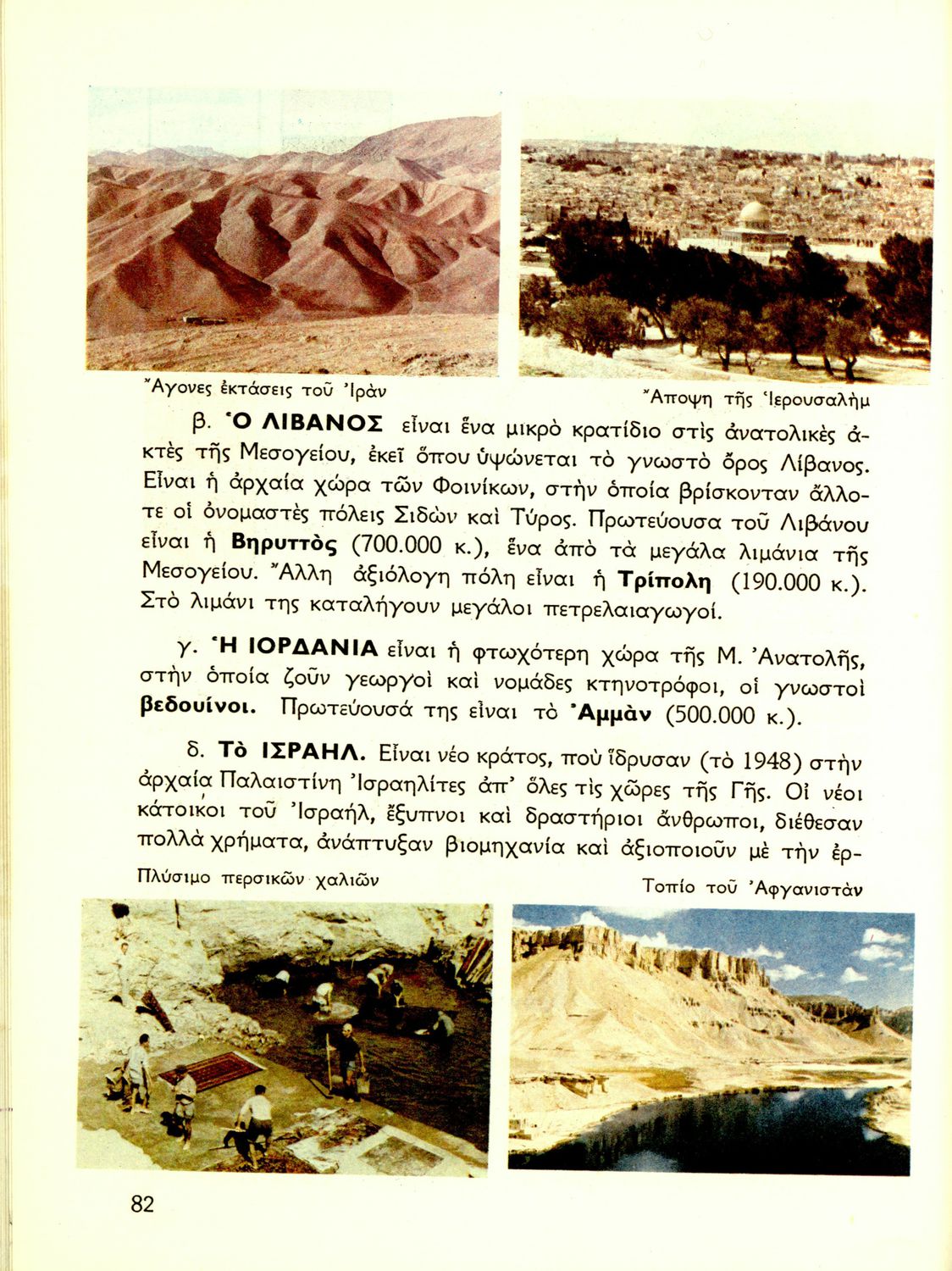 Σχολικό εγχειρίδιο Γεωγραφίας που εξετάζει ενδεικτικές χώρες και περιοχές από τις πέντε ηπείρους εκτός της Ευρώπης από γεωφυσική και οικονομική πλευρά. Φέρει το σύμβολο της δικτατορίας.