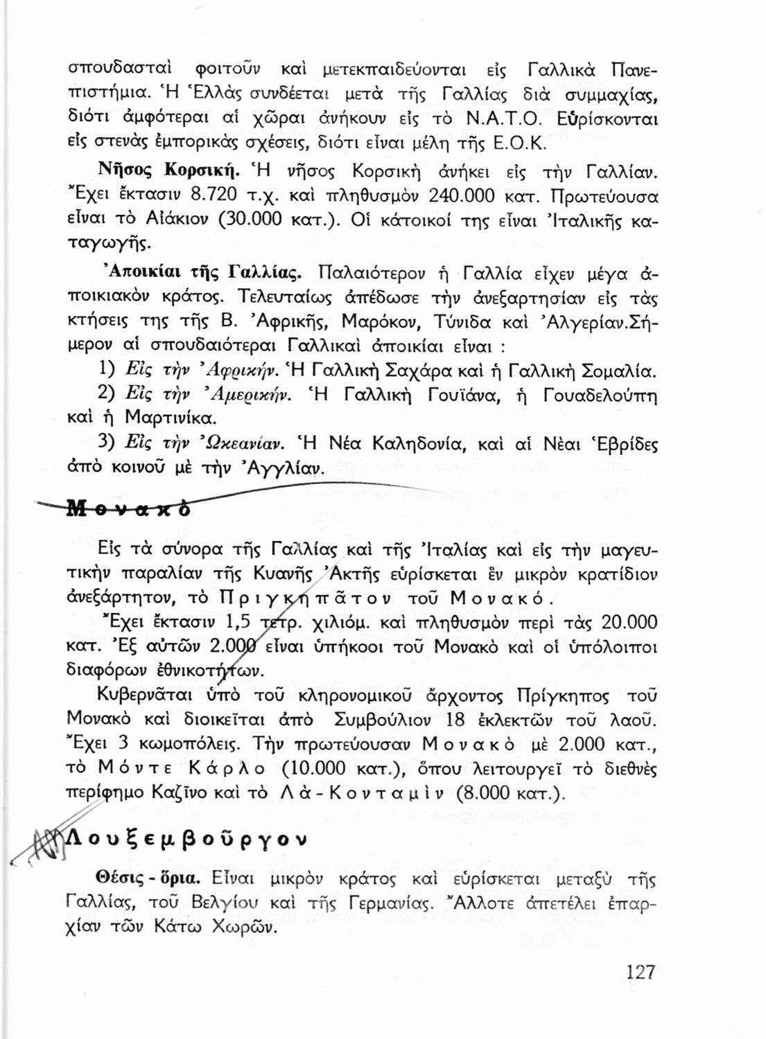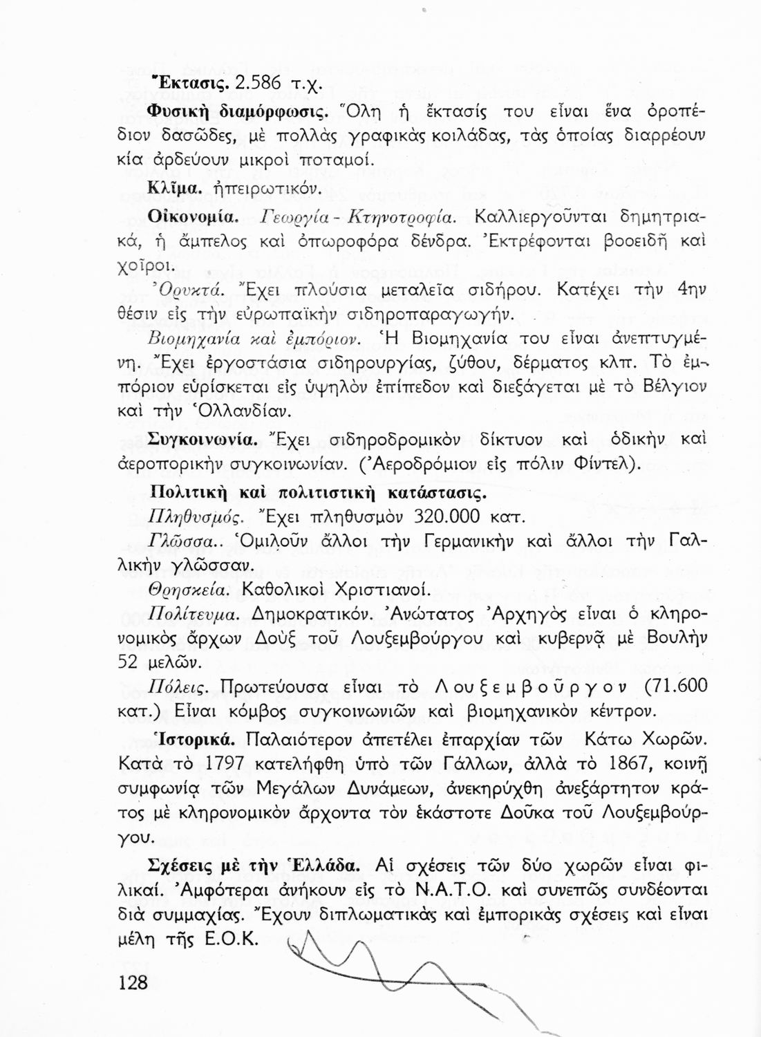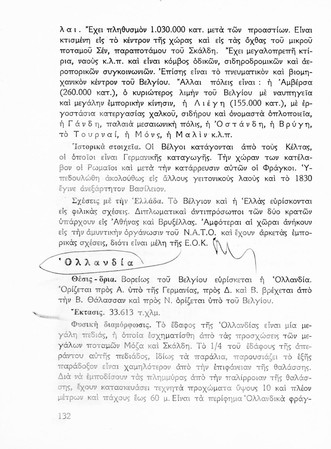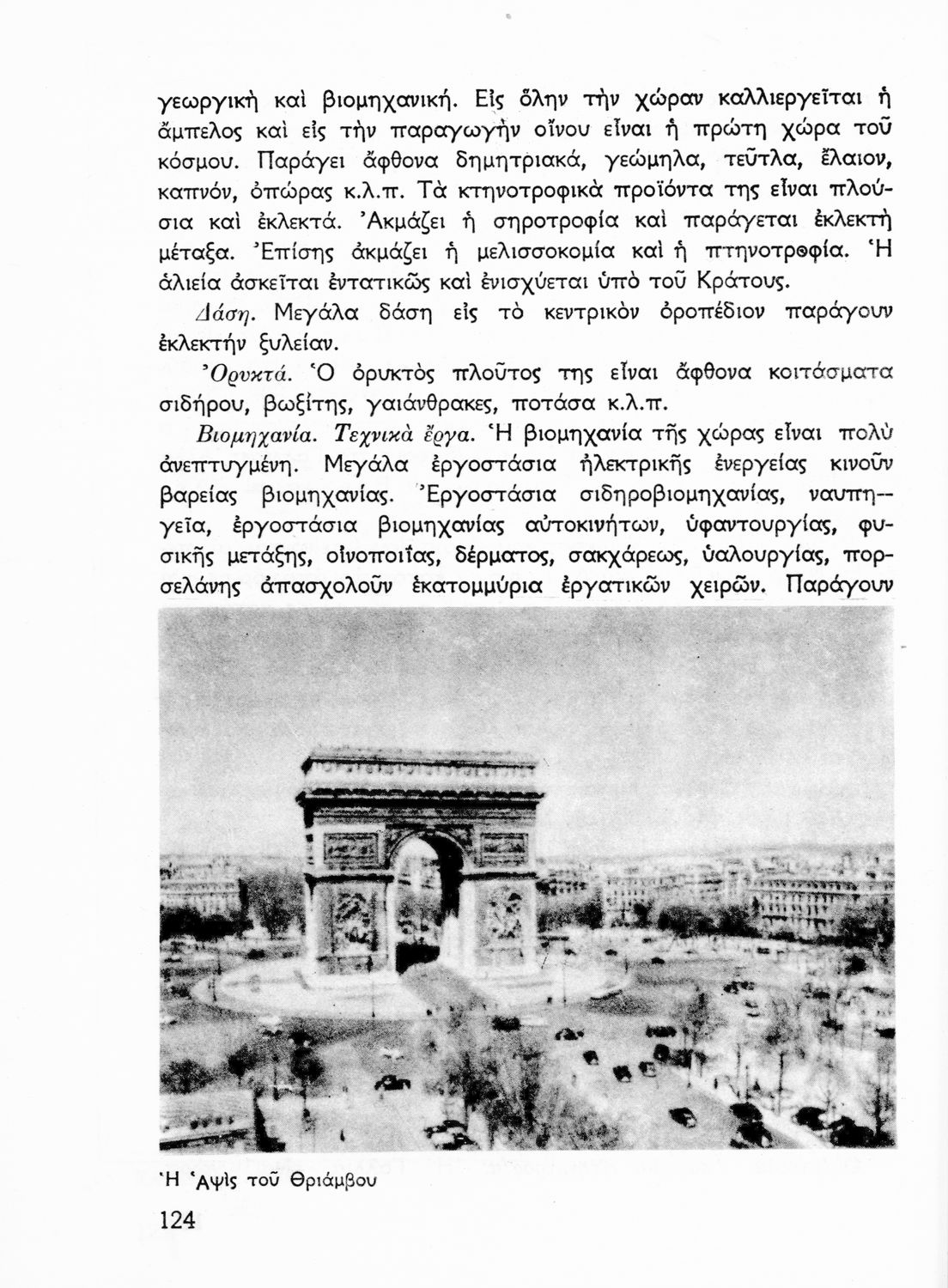 Σχολικό εγχειρίδιο Γεωγραφίας ΣΤ΄ Δημοτικού που περιλαμβάνει στοιχεία γενικής και μαθηματικής γεωγραφίας και εξετάζει από γεωφυσική και πολιτική πλευρά τις χώρες της Ευρώπης. Φέρει το σύμβολο της δικτατορίας.