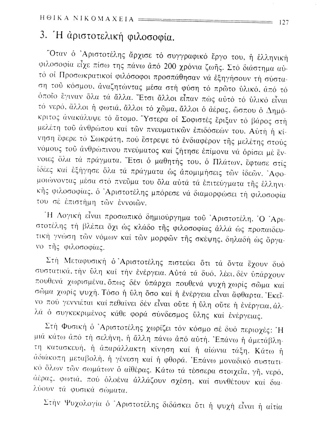 Σχολικό εγχειρίδιο Φιλοσοφίας Γ΄ Γυμνασίου που περιλαμβάνει τα κείμενα Απολογία του Σωκράτη, Κρίτων, Φαίδων και Ηθικά Νικομάχεια. Περιέχει εισαγωγικά και ερμηνευτικά σχόλια και παρατηρήσεις για μελέτη.