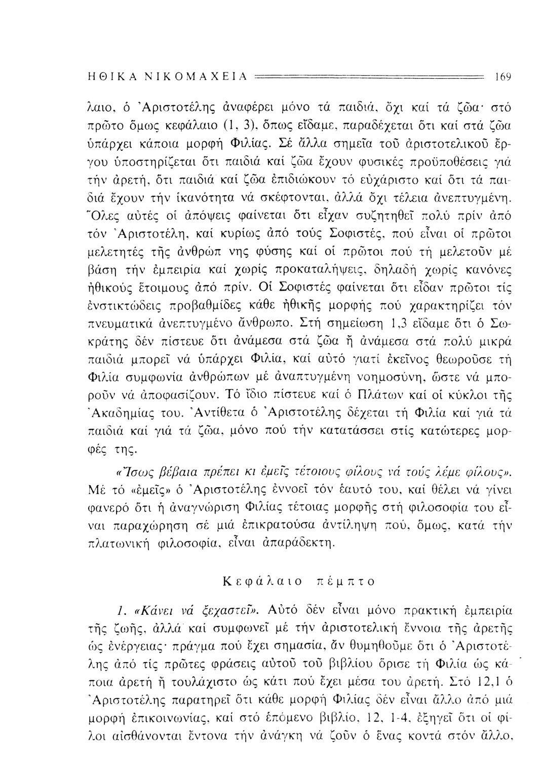 Σχολικό εγχειρίδιο της Γ΄ Γυμνασίου για το μάθημα των Αρχαίων Ελληνικών στο Γυμνάσιο. Πρόκειται για φιλοσοφικά κείμενα. Περιέχει ερμηνευτικές και πραγματολογικές παρατηρήσεις του συγγραφέα.