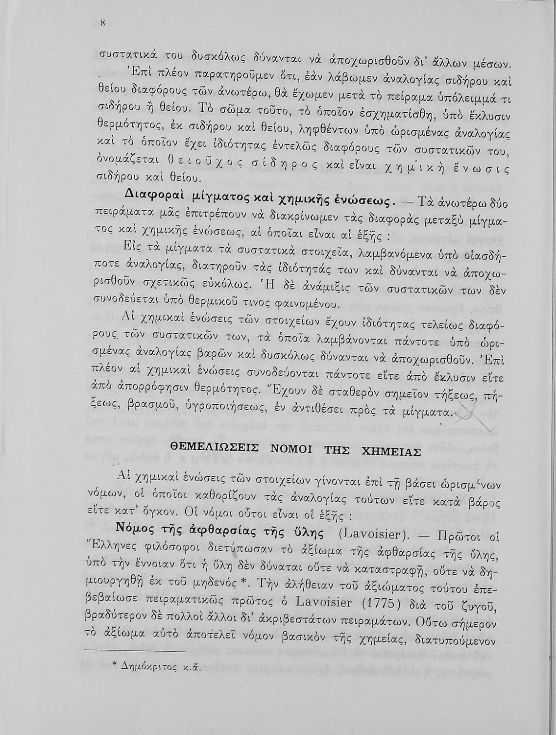 Σχολικό εγχειρίδιο Χημείας που απευθύνεται σε μαθητές Γυμνασίου με σκοπό τη περιγραφή εισαγωγικών εννοιών χημείας (ύλη, νόμοι χημείας, χημικές αντιδράσεις-εξισώσεις-ενώσεις) καθώς γίνεται αναλυτική περιγραφή στοιχείων μετάλλων και αμέταλλων περιγράφοντας τις ιδιότητες και τις ενώσεις τους.