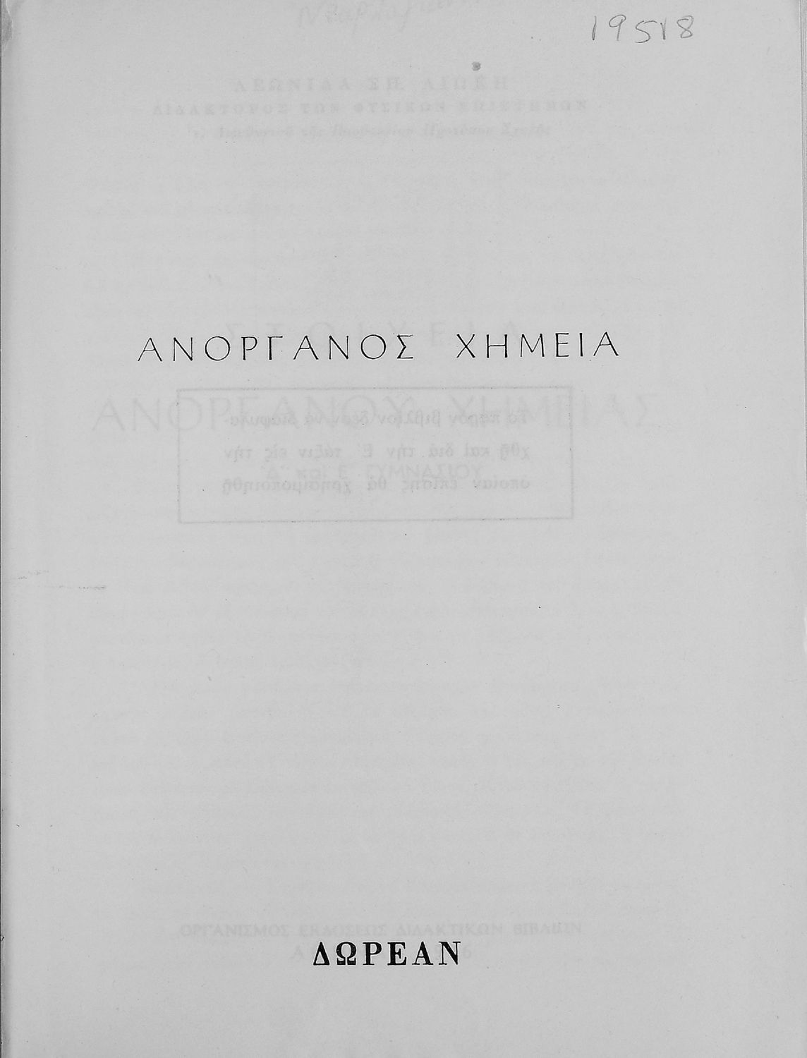 Κωδικός αναγνώρισης: 01-19518 Τίτλος: Στοιχεία Ανοργάνου Χημείας Δ΄ και Ε΄ Γυμνασίου Συγγραφέας: Λεωνίδας Σπ. Λιώκης Μέγεθος και υπόστρωμα: Σχολικό εγχειρίδιο, μαλακό εξώφυλλο, 182 σελίδες. Σχέδια και σχήματα (ασπρόμαυρα). |